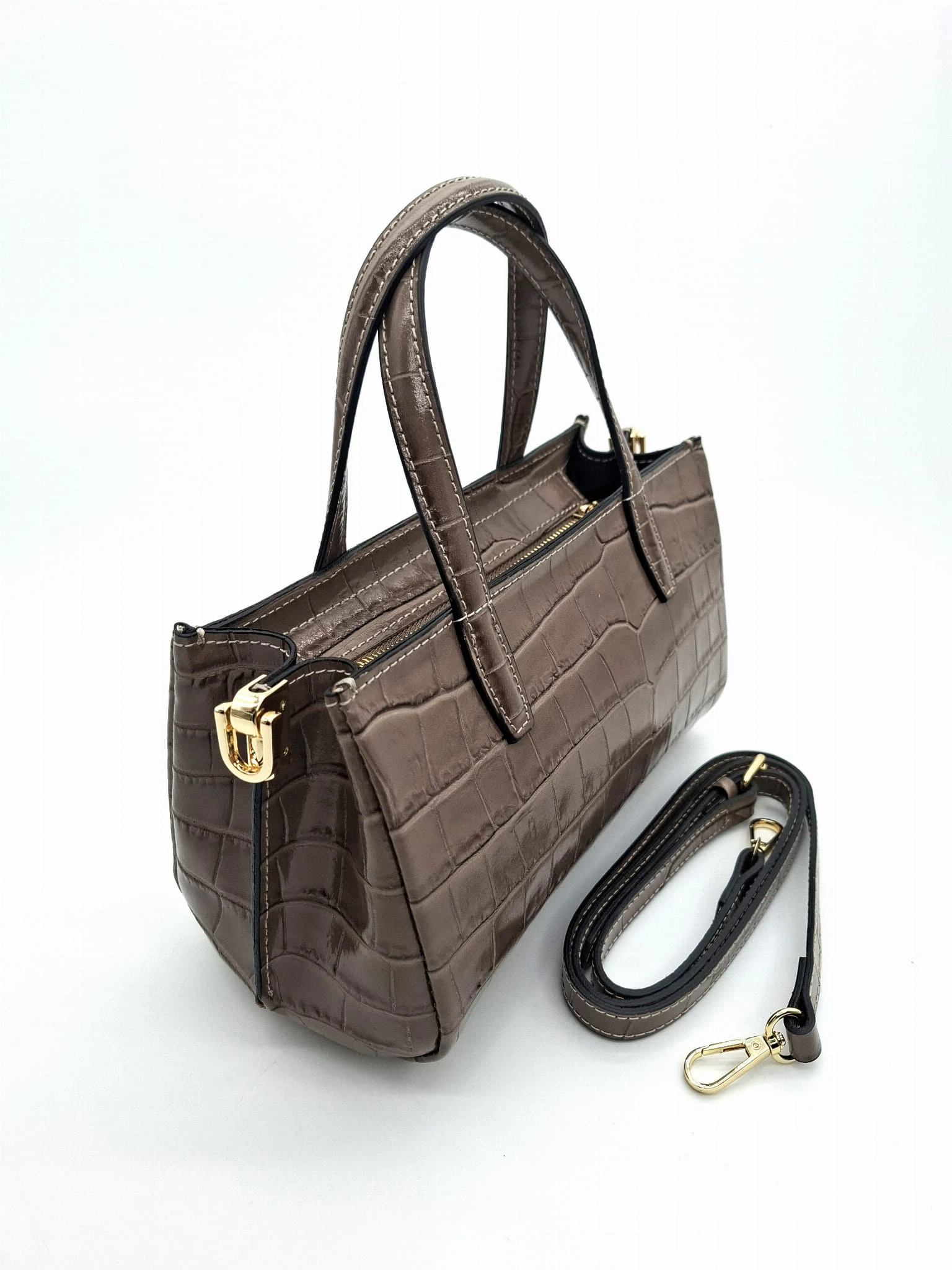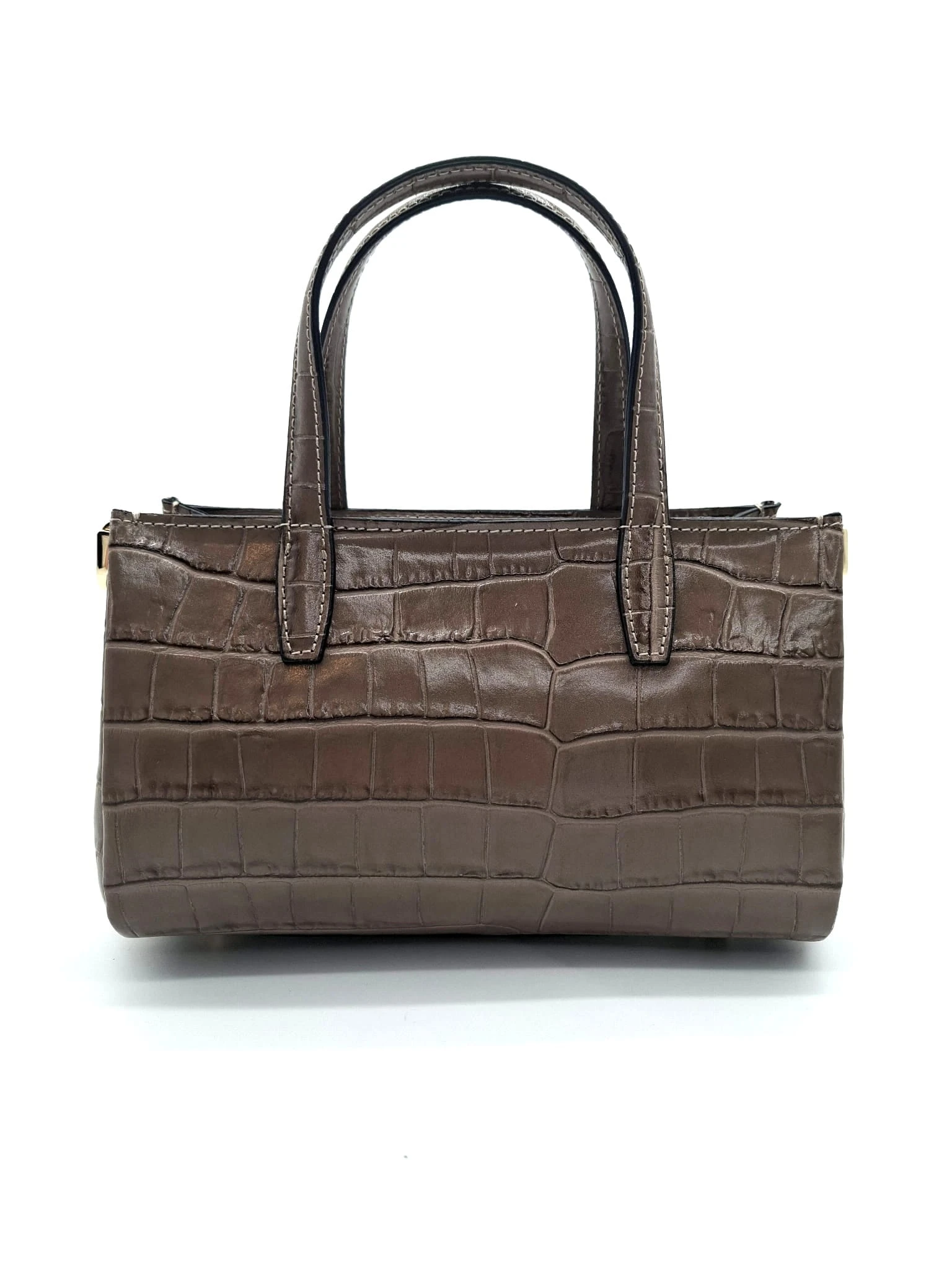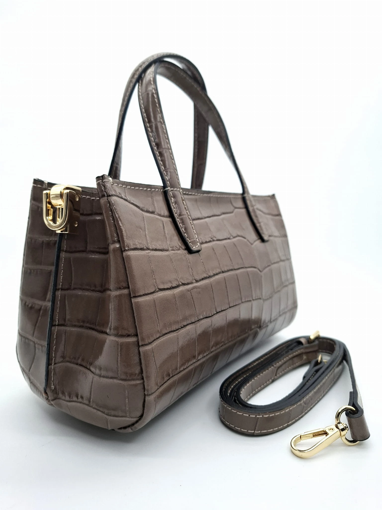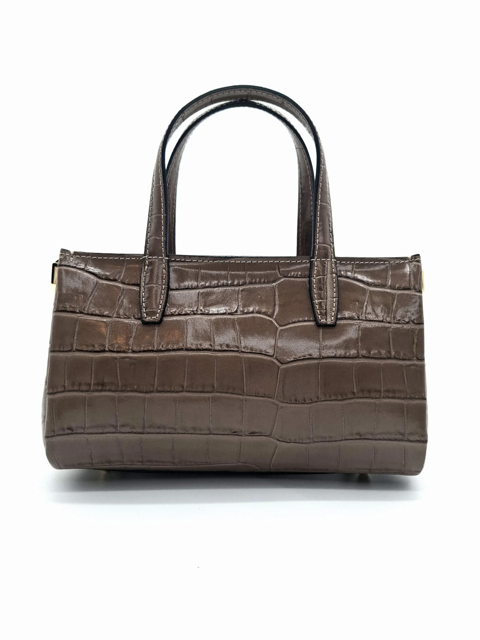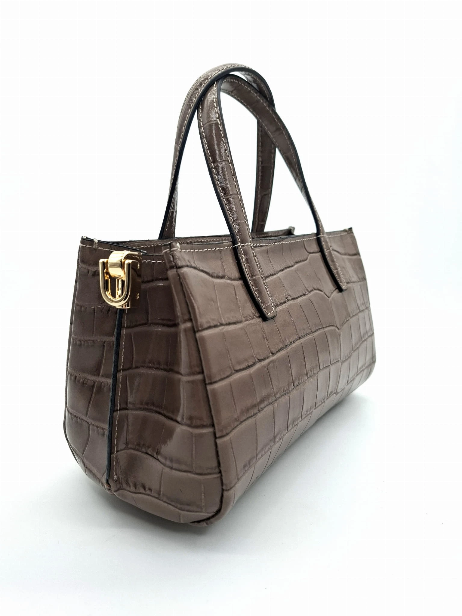 BORSE IN PELLE Torebka skórzana kuferek taupe croco ELIN krokodylek