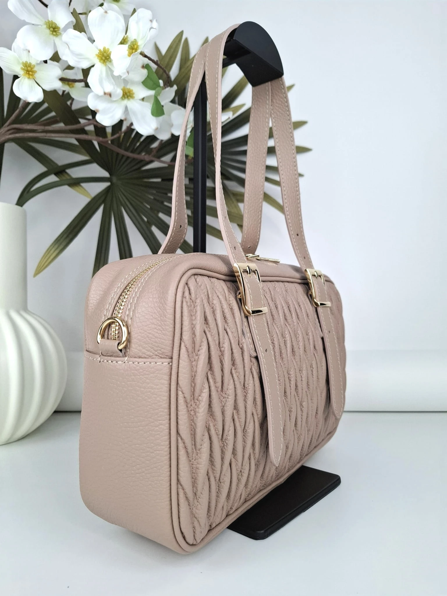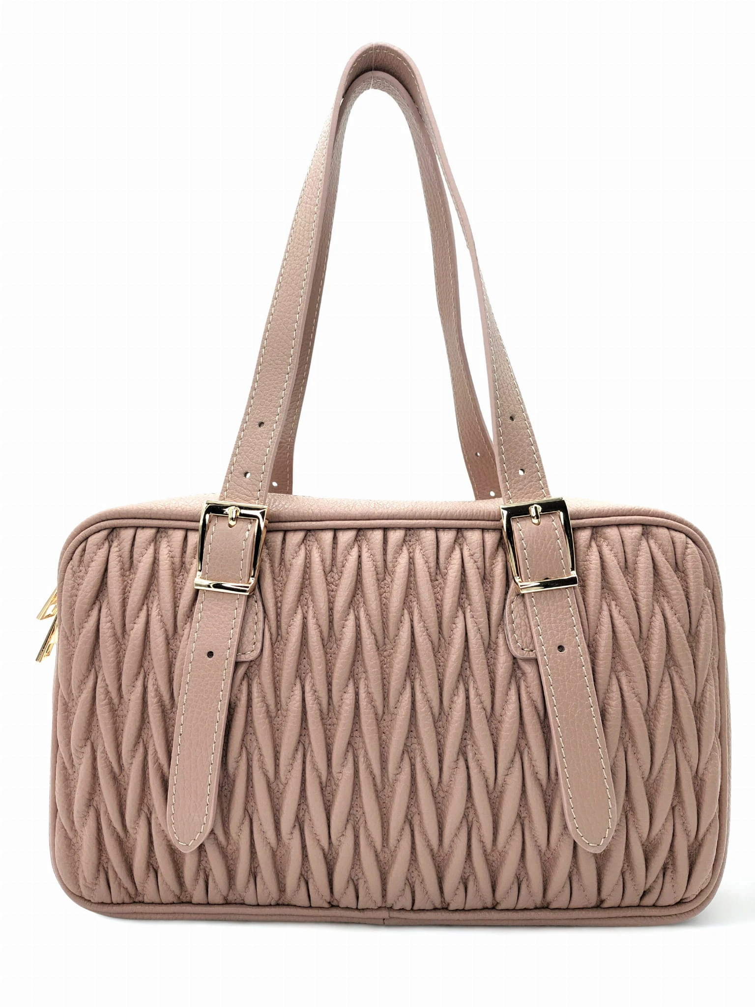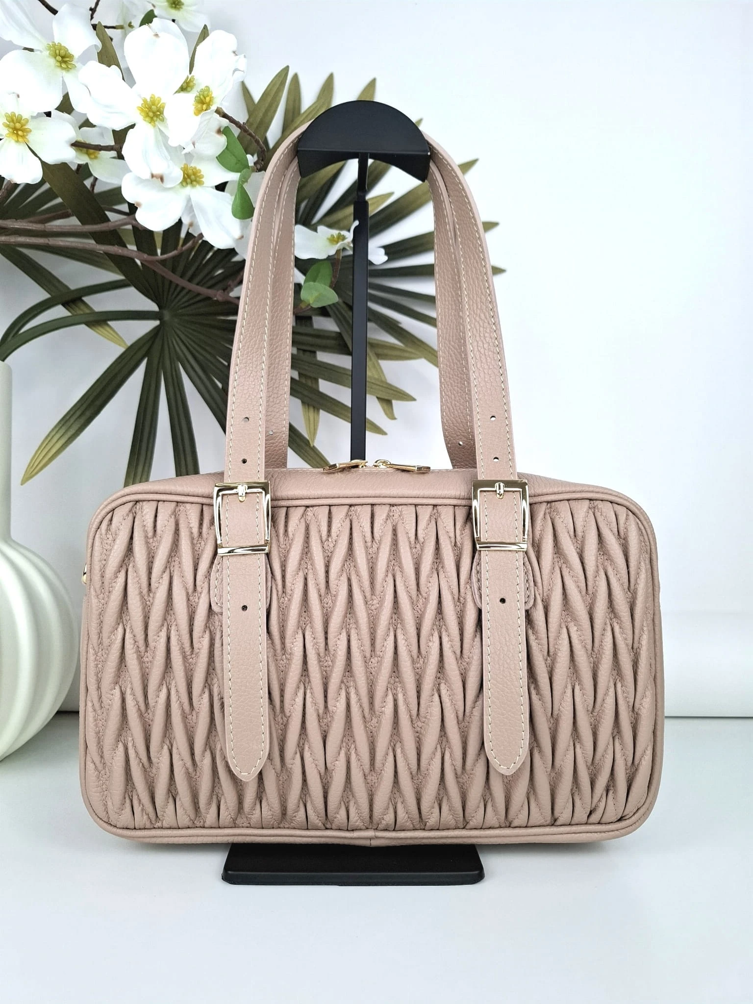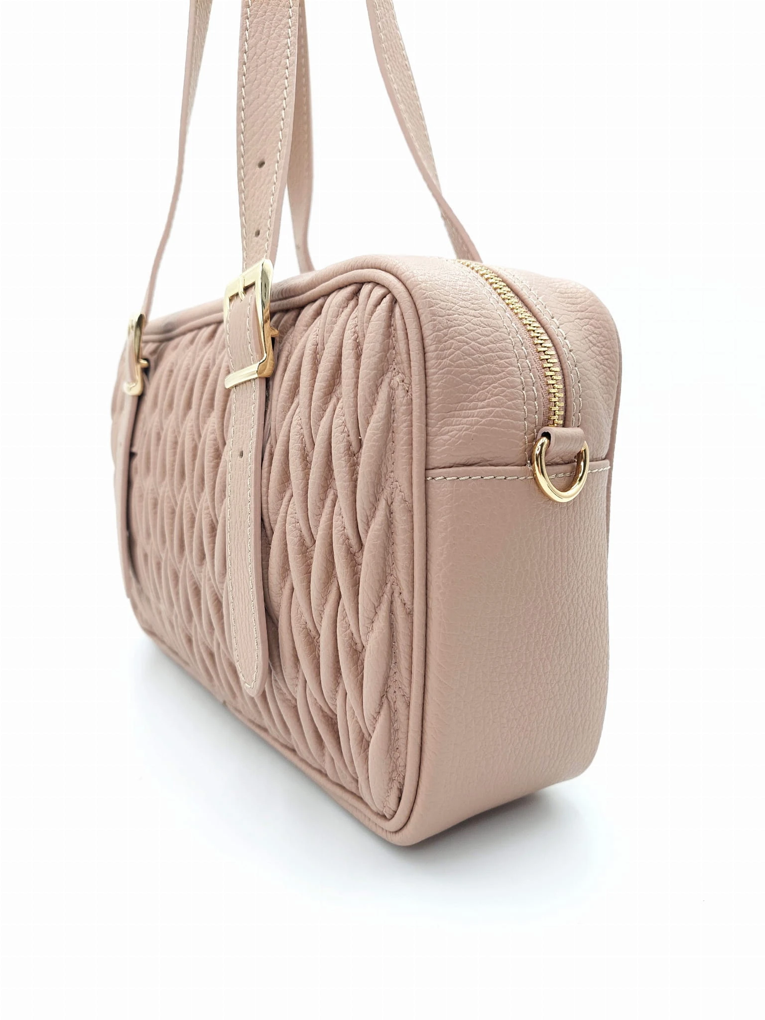 BORSE IN PELLE torebka jamnik kuferek różowa pastelowa na lato SOFIA pikowana
