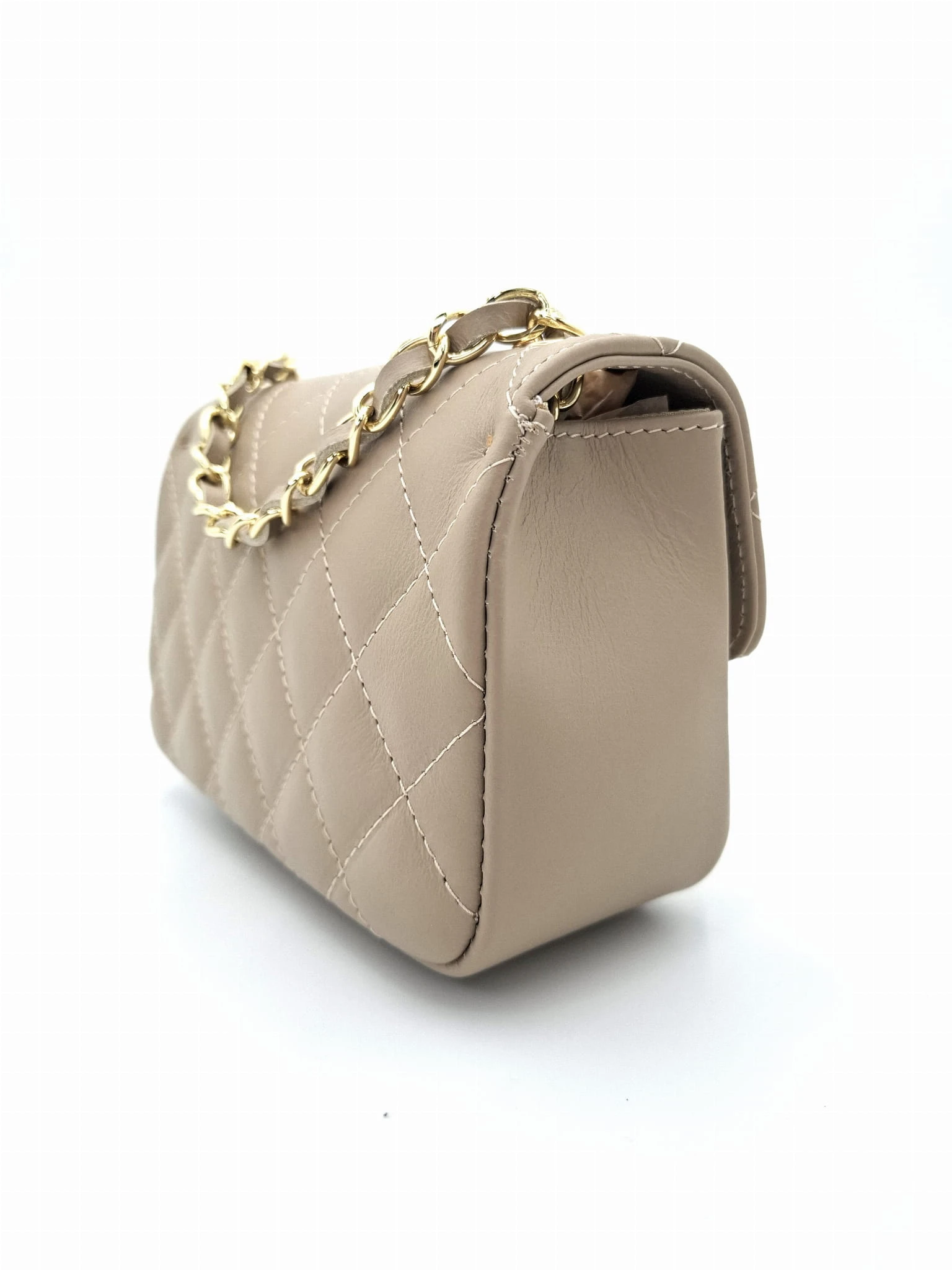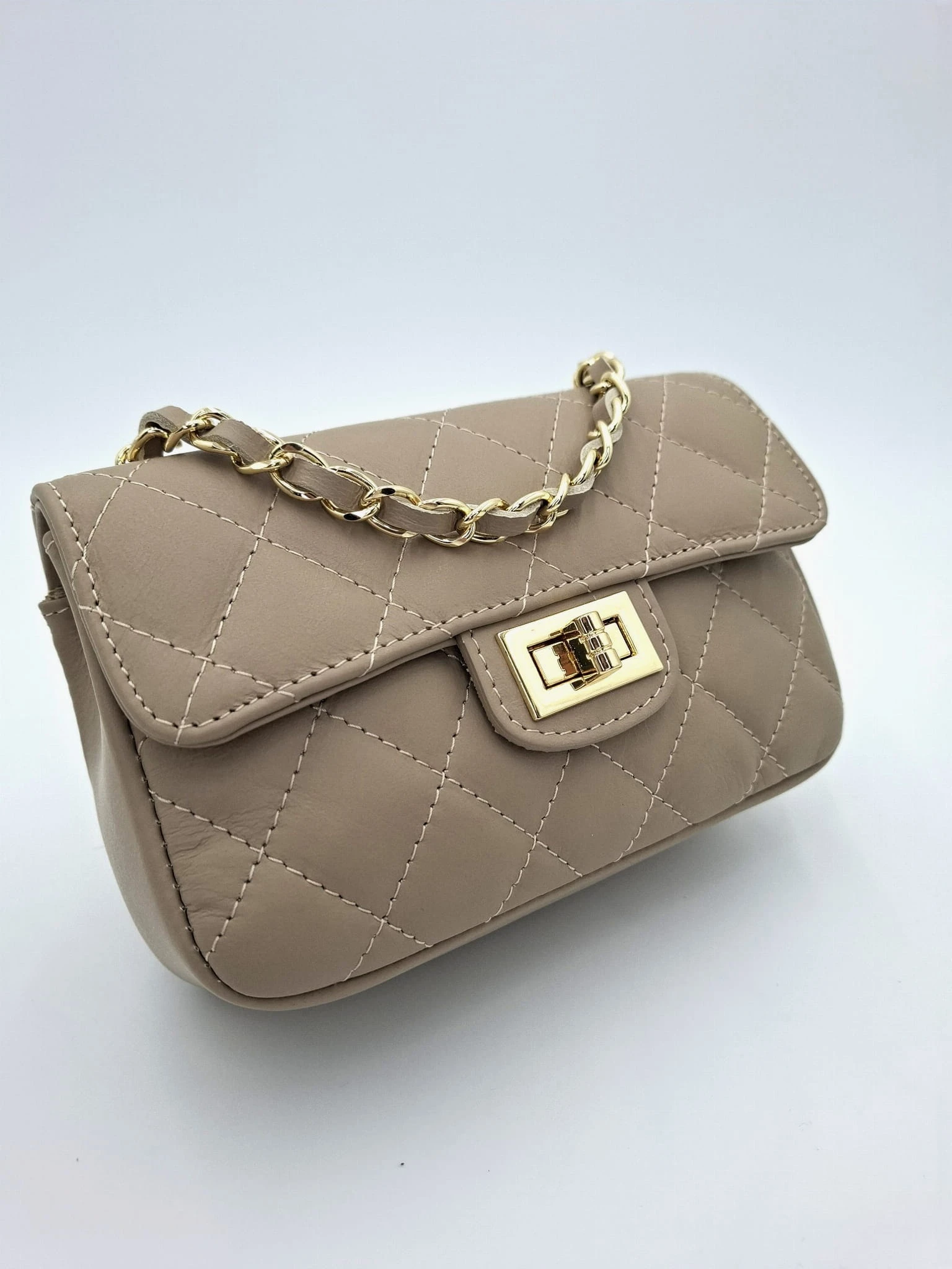 Klasyczna pikowana włoska torebka w małym formacie. Uniwersalny fason - wspaniale komponuje się jako uzupełnienie codziennych jak i bardziej eleganckich kreacji. Dzięki długiemu , łańcuszkowemu paskowi możesz ją nosić na kilka sposobów :