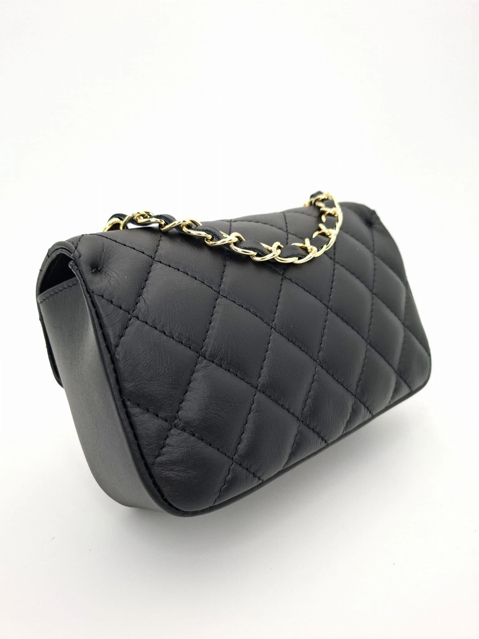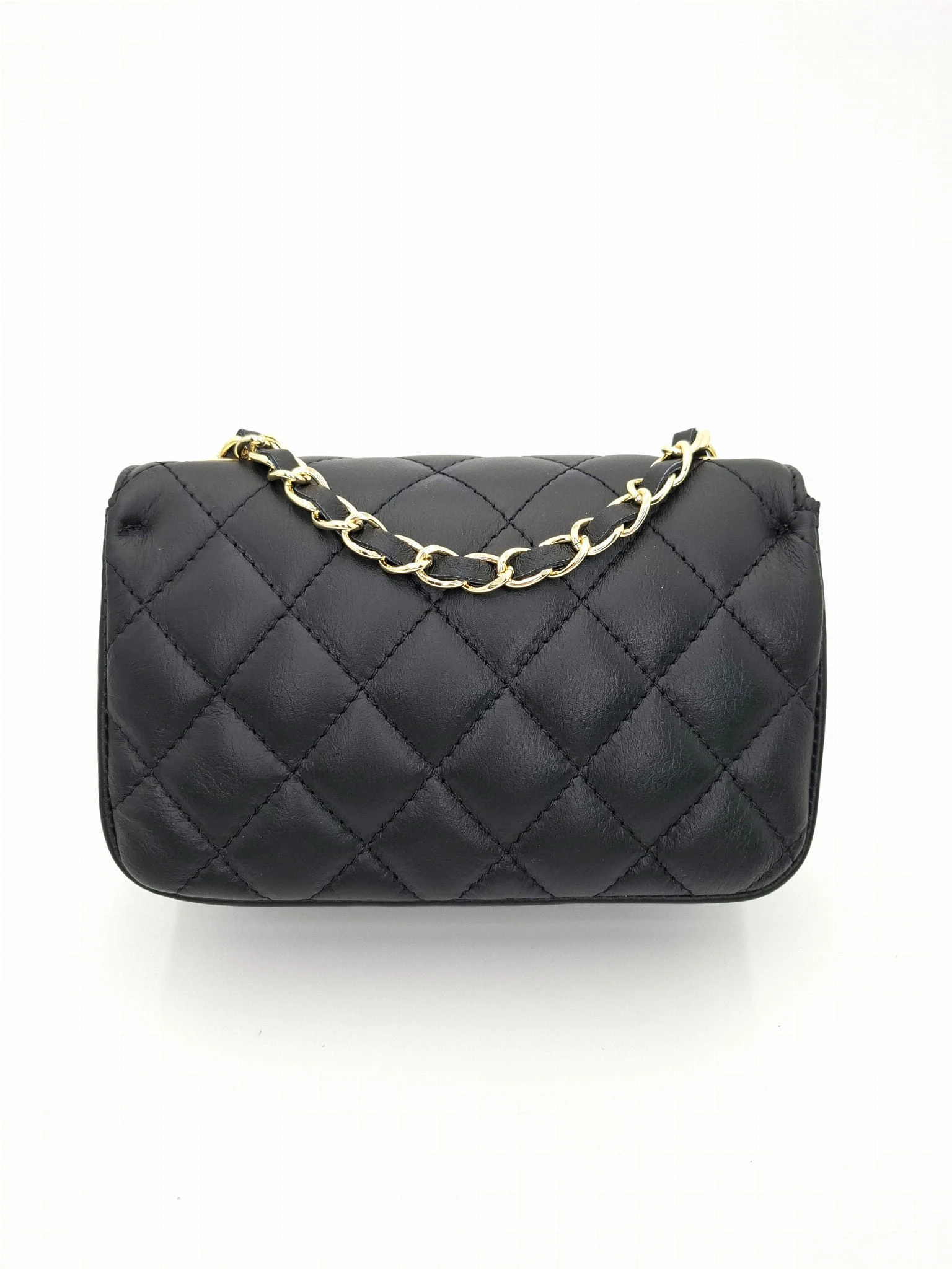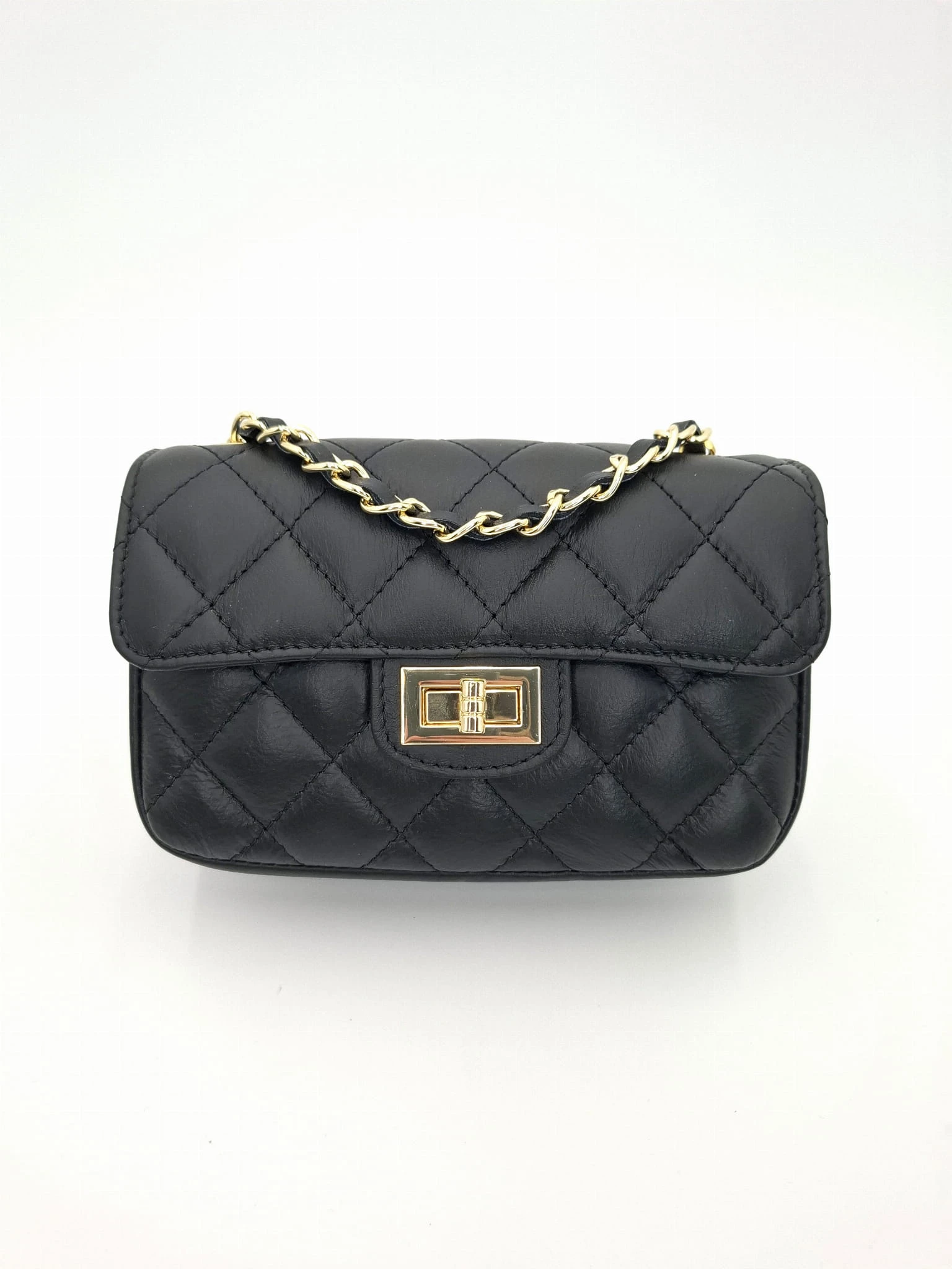 Klasyczna pikowana włoska torebka w małym formacie. Uniwersalny fason - wspaniale komponuje się jako uzupełnienie codziennych jak i bardziej eleganckich kreacji. Dzięki długiemu, łańcuszkowemu paskowi możesz ją nosić na kilka sposobów :