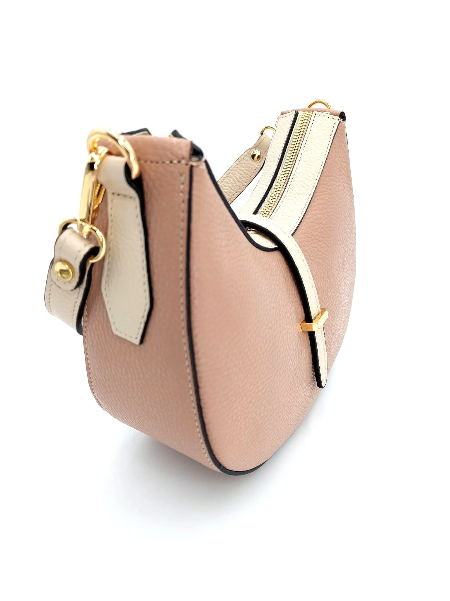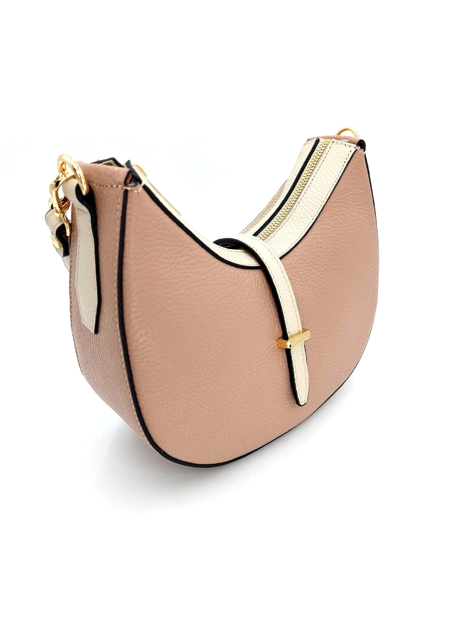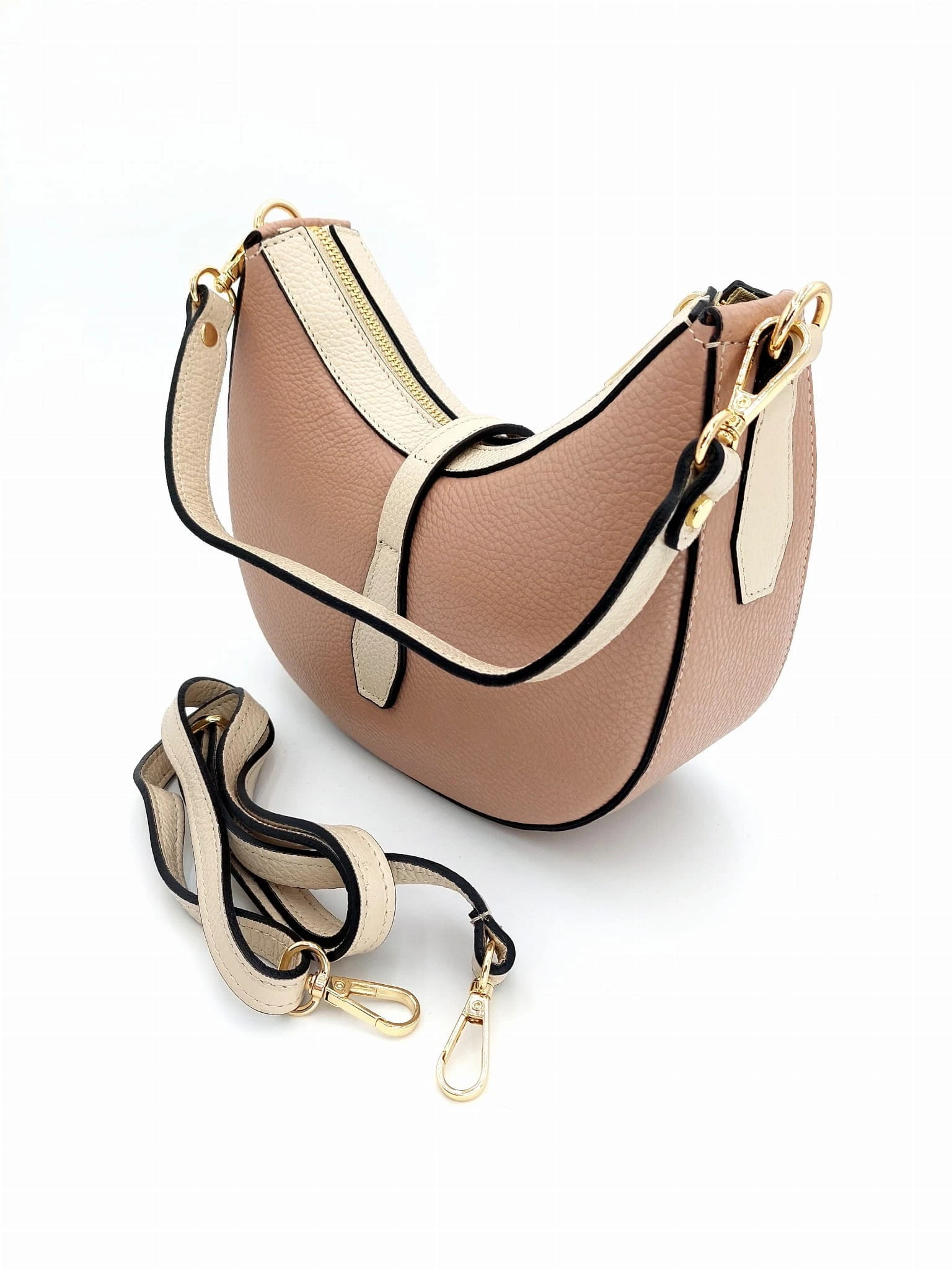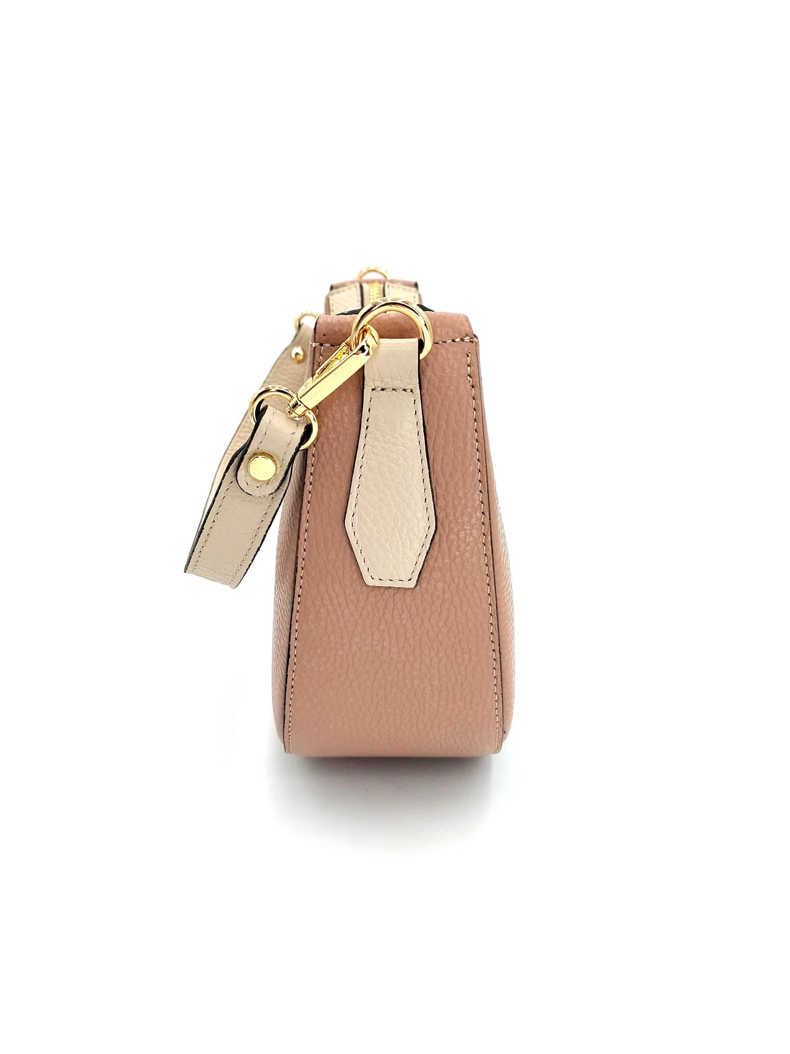 Mała włoska beżowo-różowa torebka skórzana na dwóch paskach - model Emma