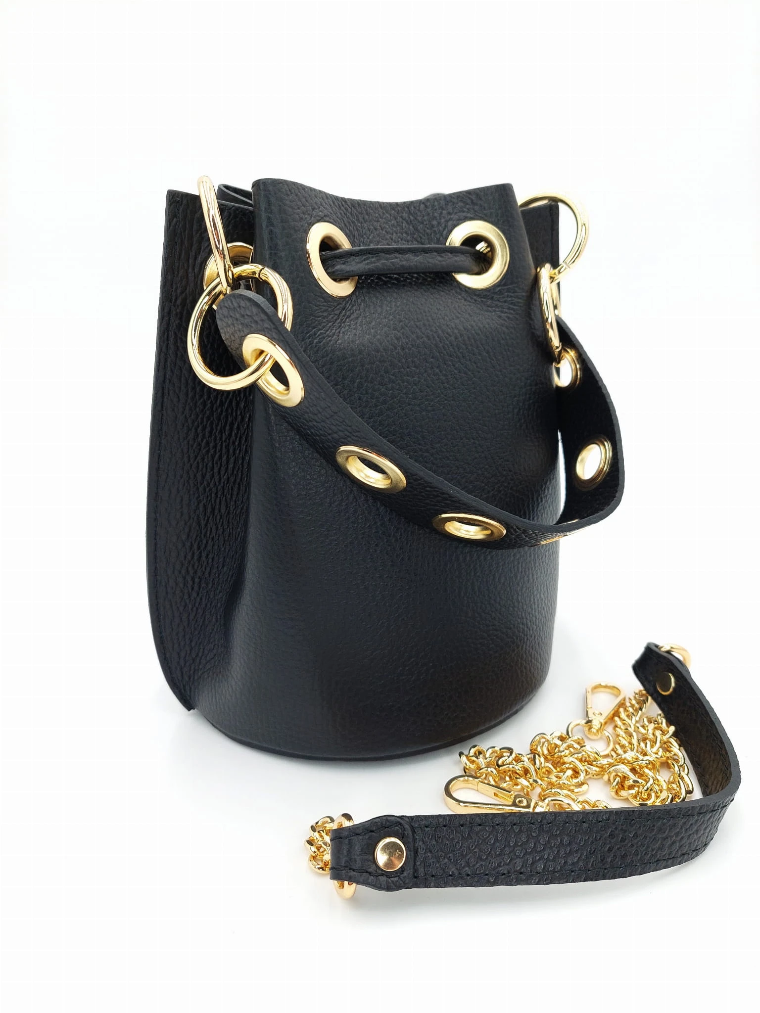 Borse In Pelle torebka worek skórzany czarny Ti Amo