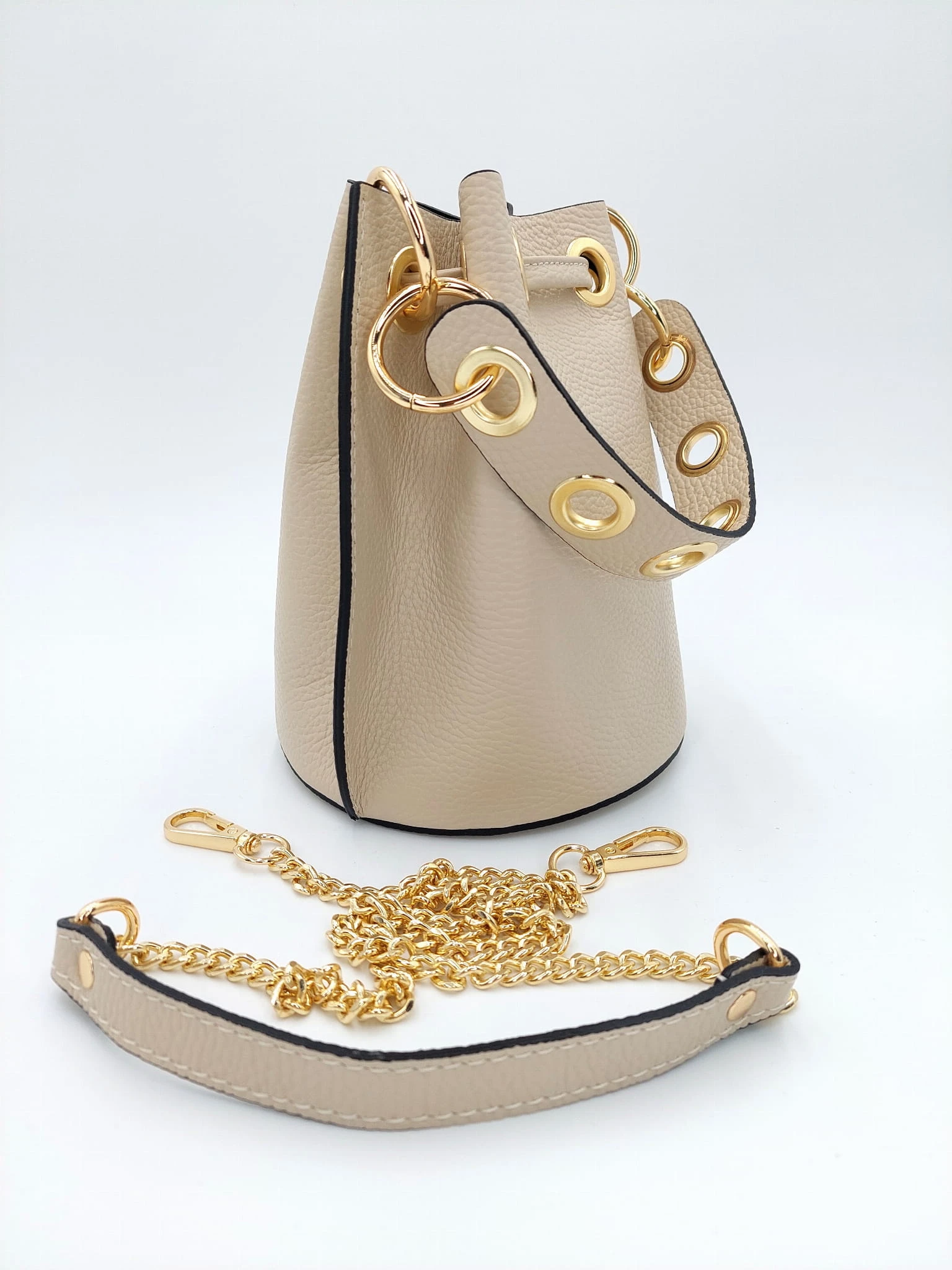 Borse In Pelle torebka worek skórzany jasny beż ecru Ti Amo