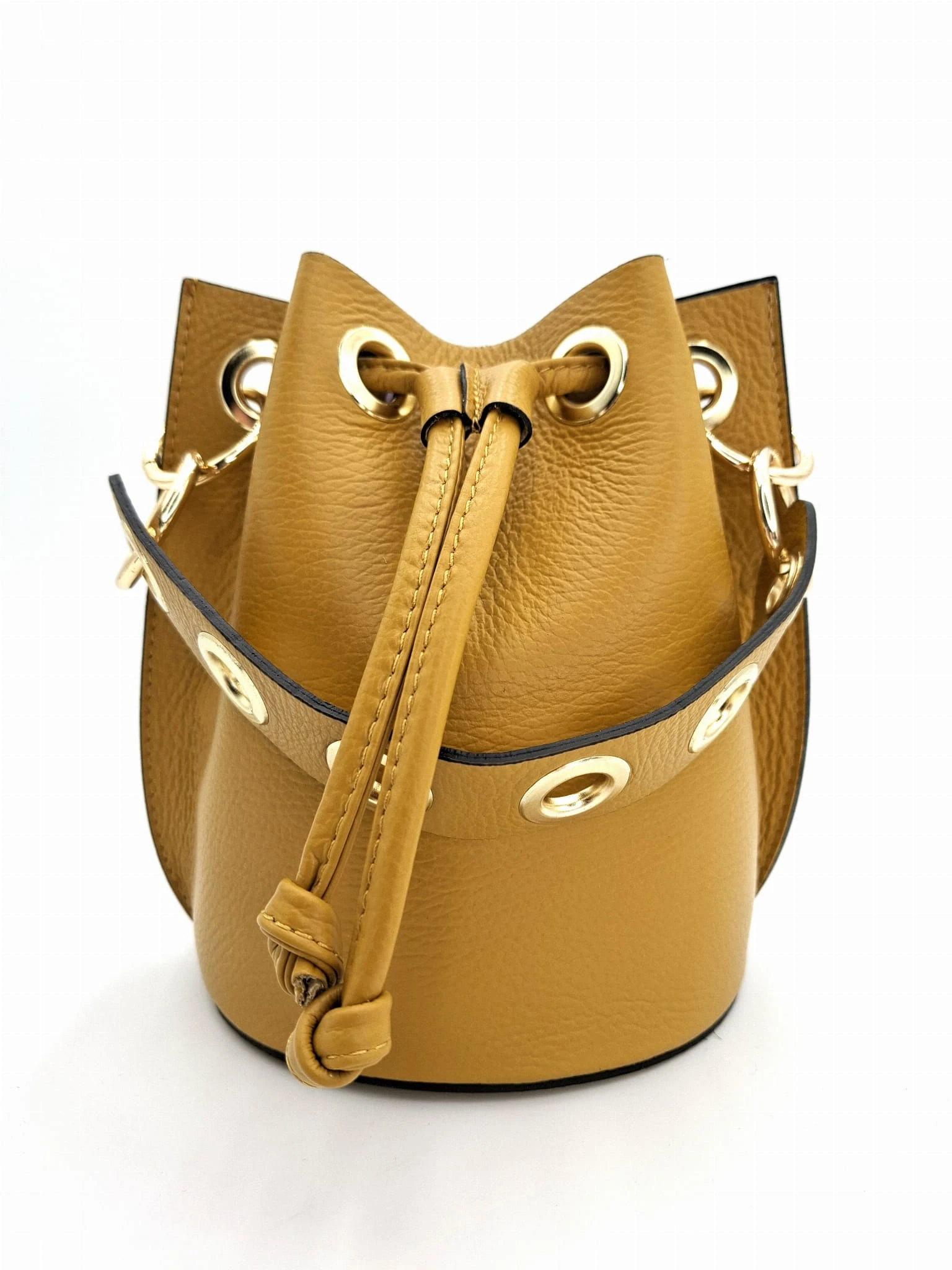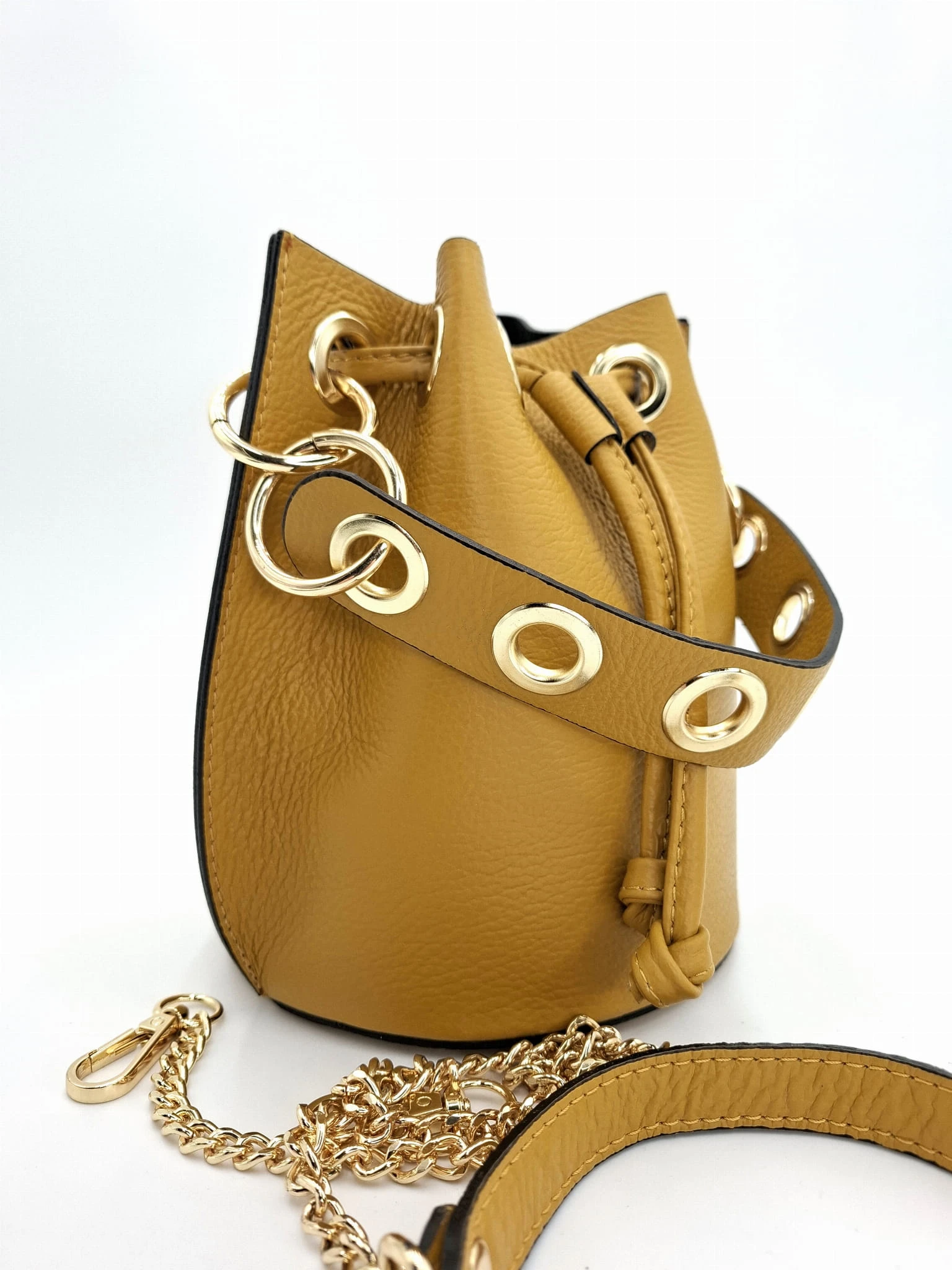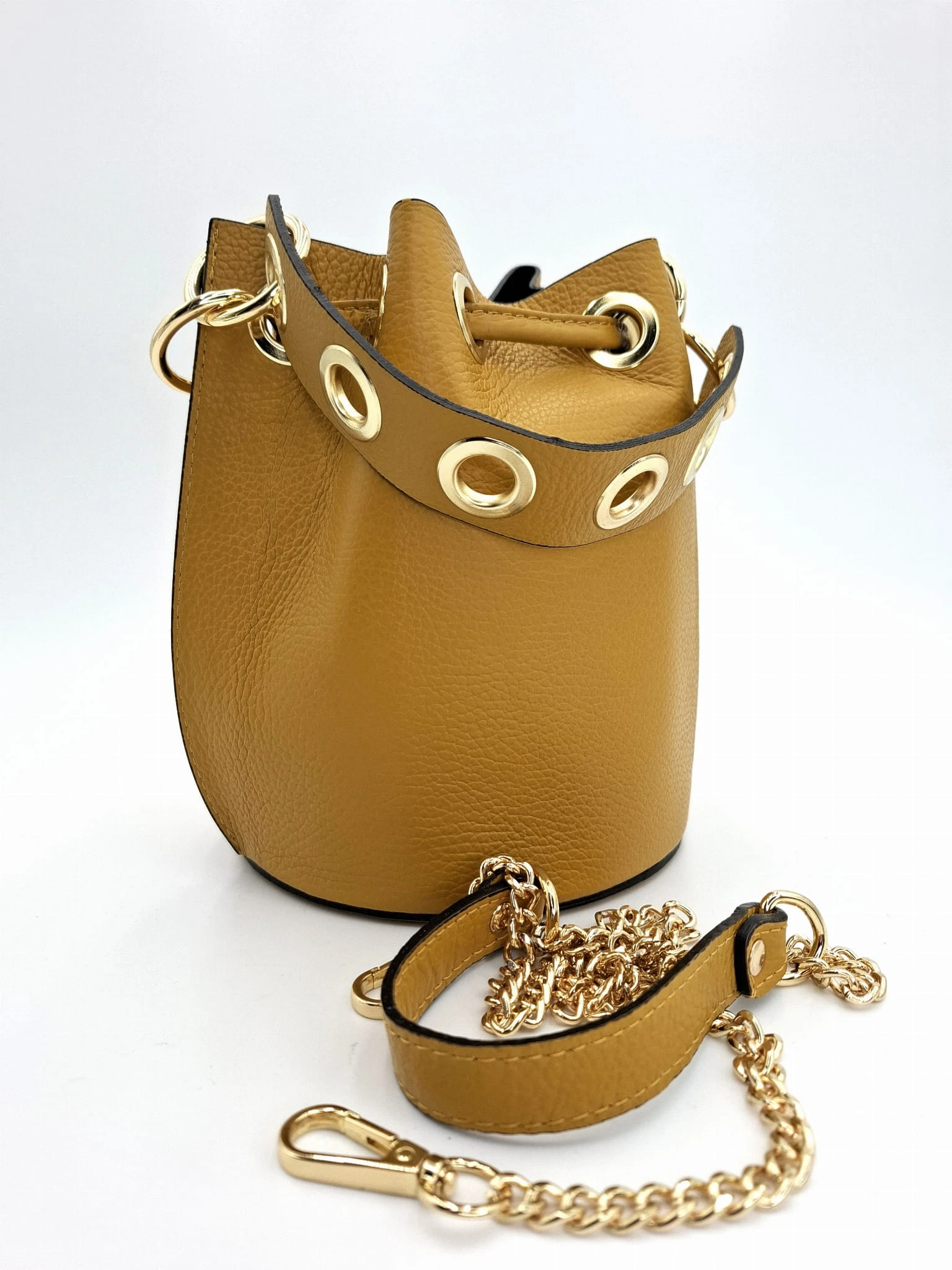 Borse In Pelle torebka worek skórzany żółty musztardowy Ti Amo