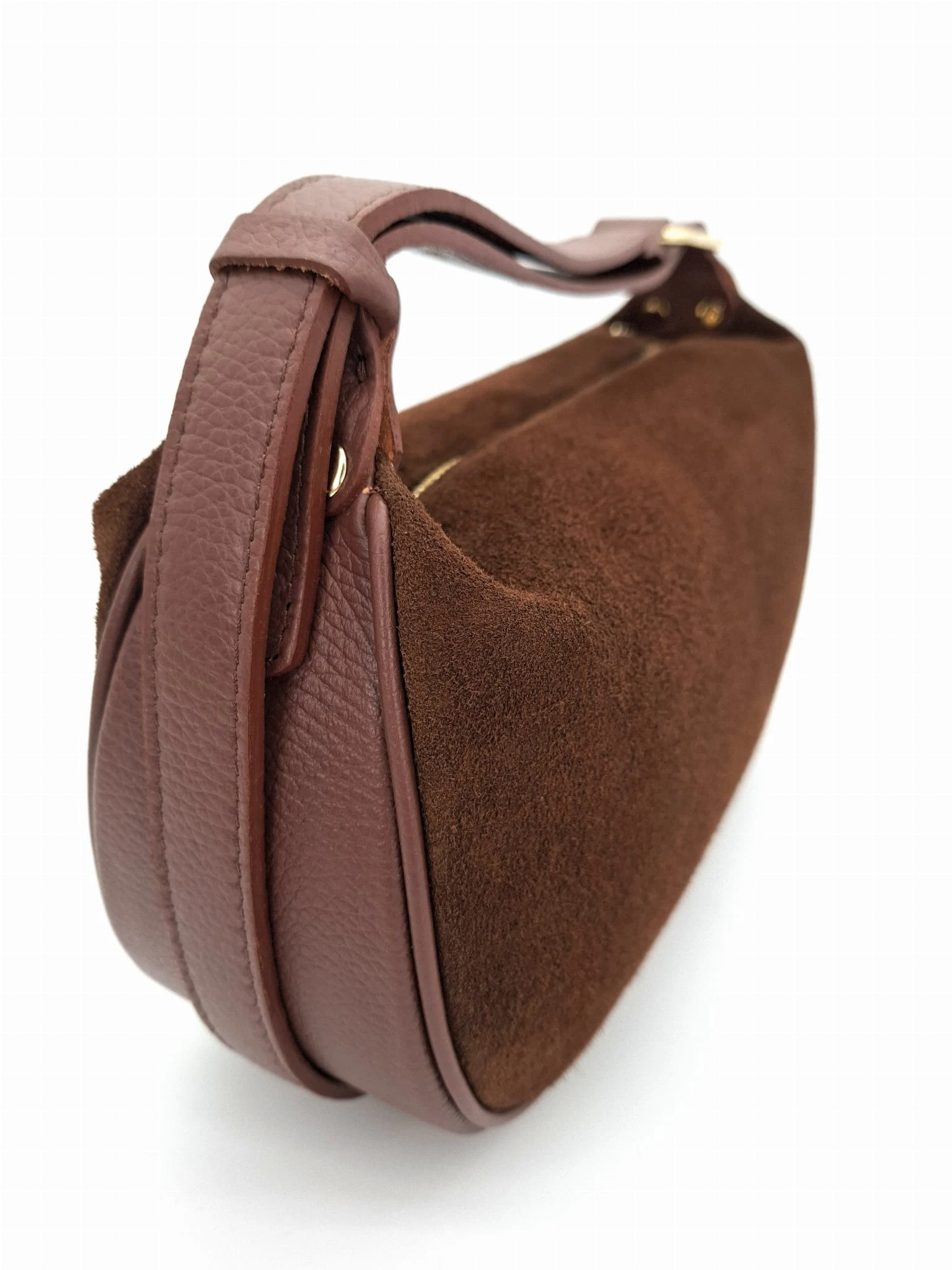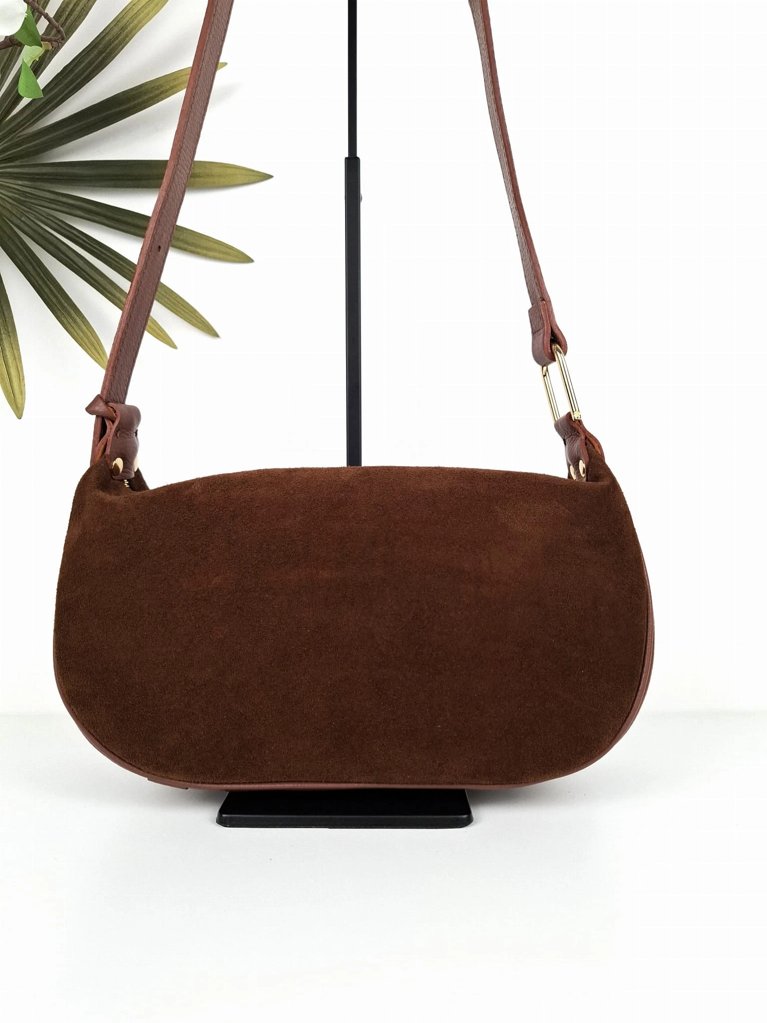 Zamszowa torebka damska w kolorze brązowym. Modna, poręczna i ponadczasowa – idealna na ramię i do ręki .
