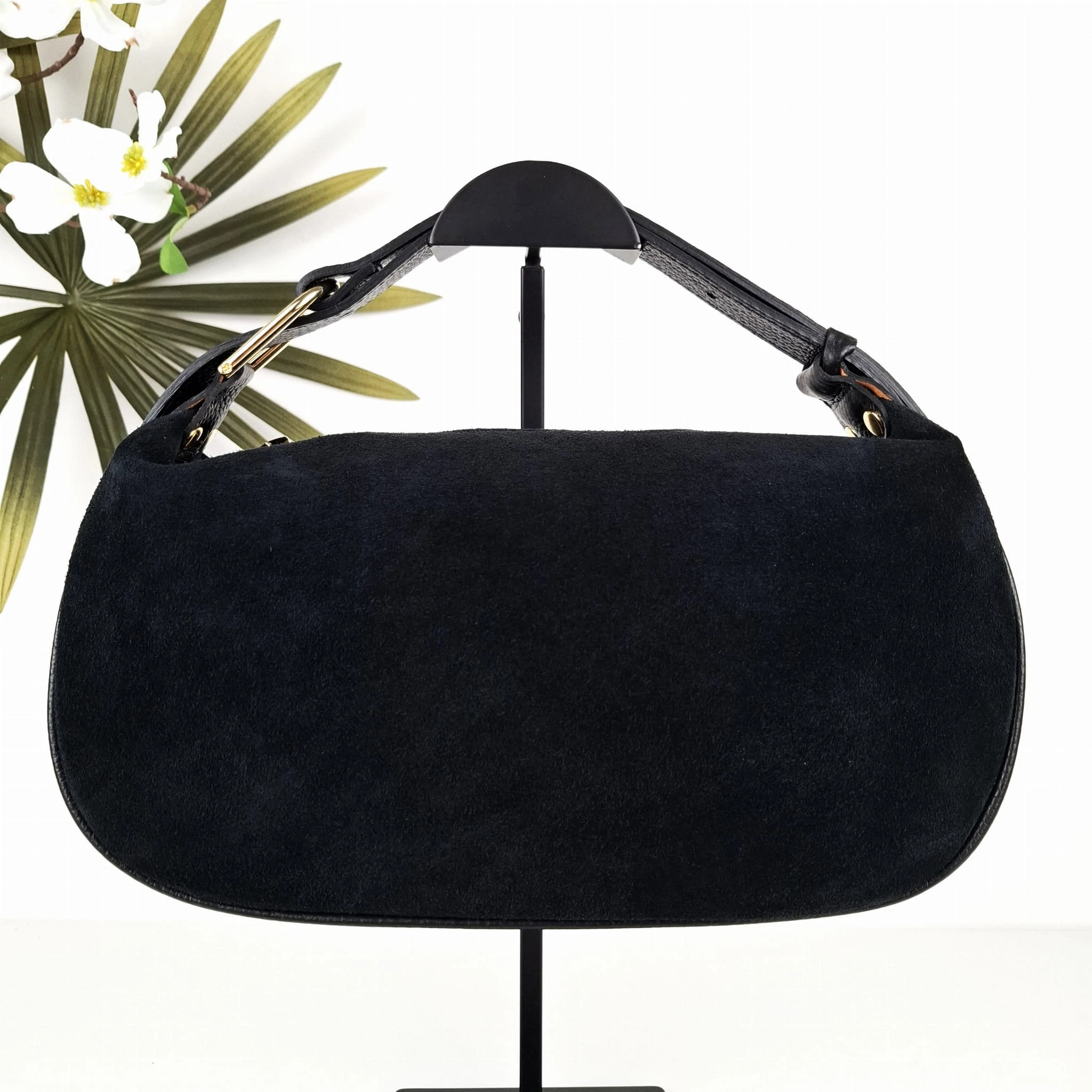 Zamszowa torebka damska w kolorze czarnym. Modna, poręczna i ponadczasowa – idealna na ramię i do ręki .