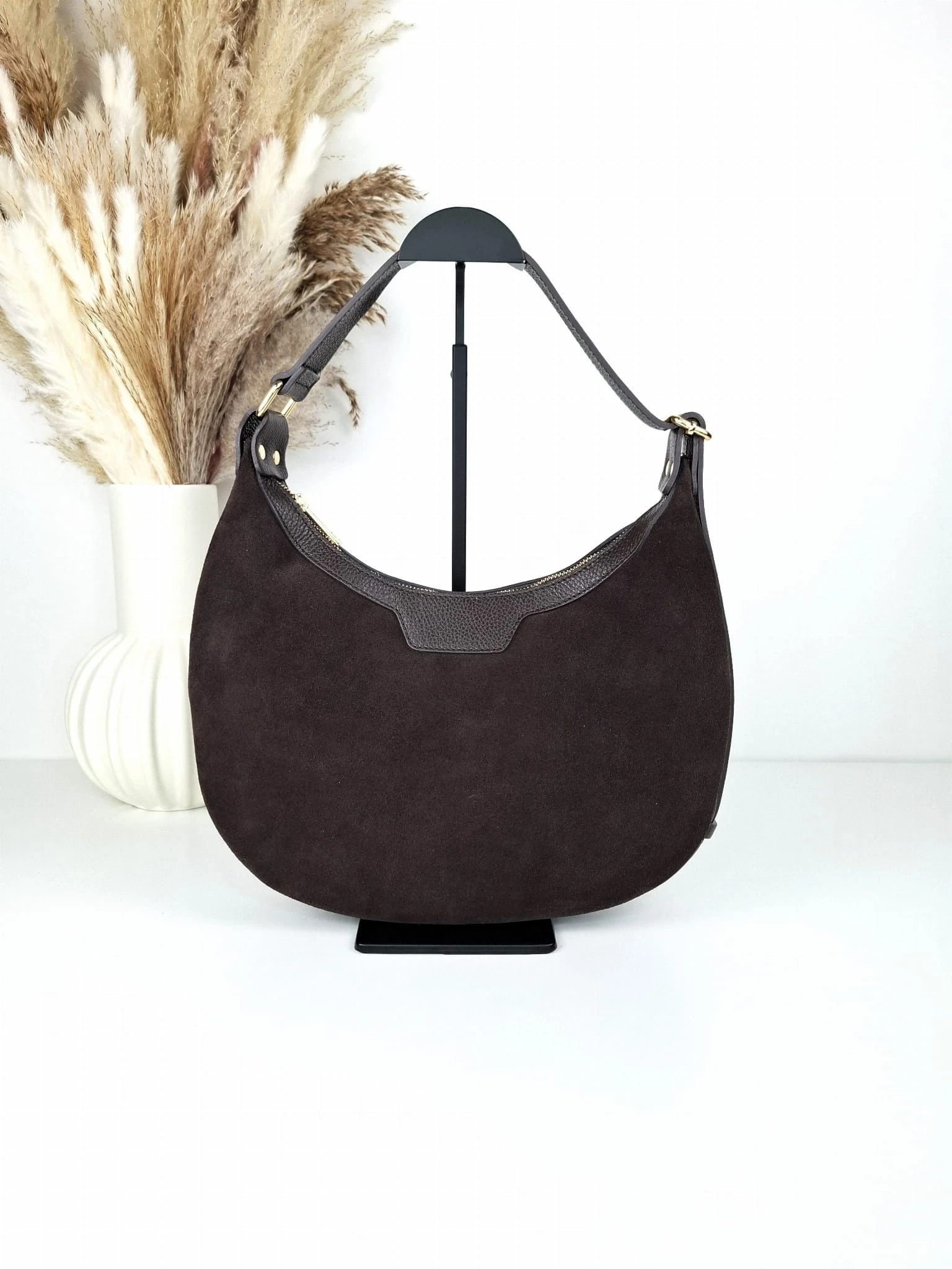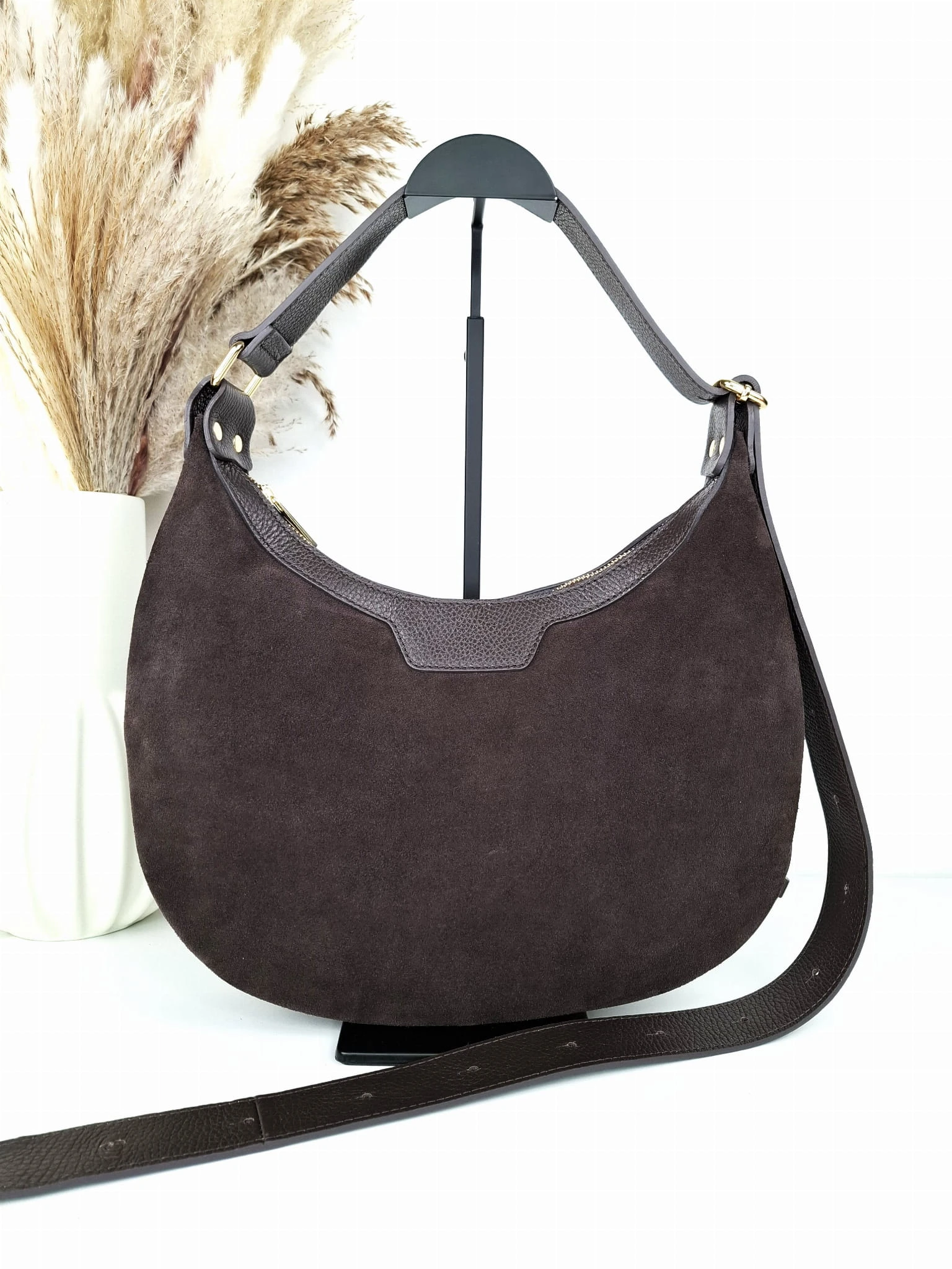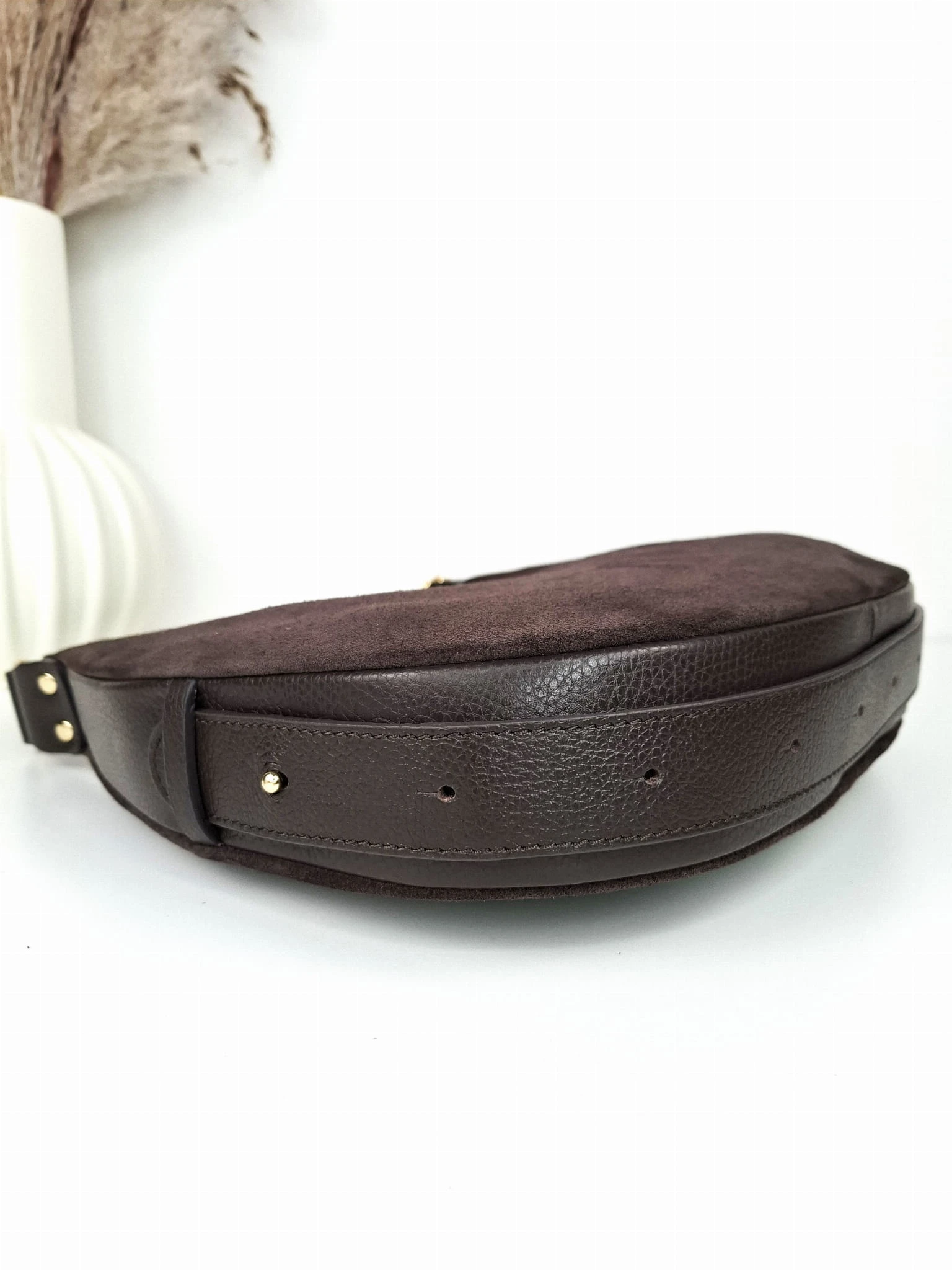 Laura Biaggi torebka zamszowa brązowa Duży Księżyc zamsz czekoladowy