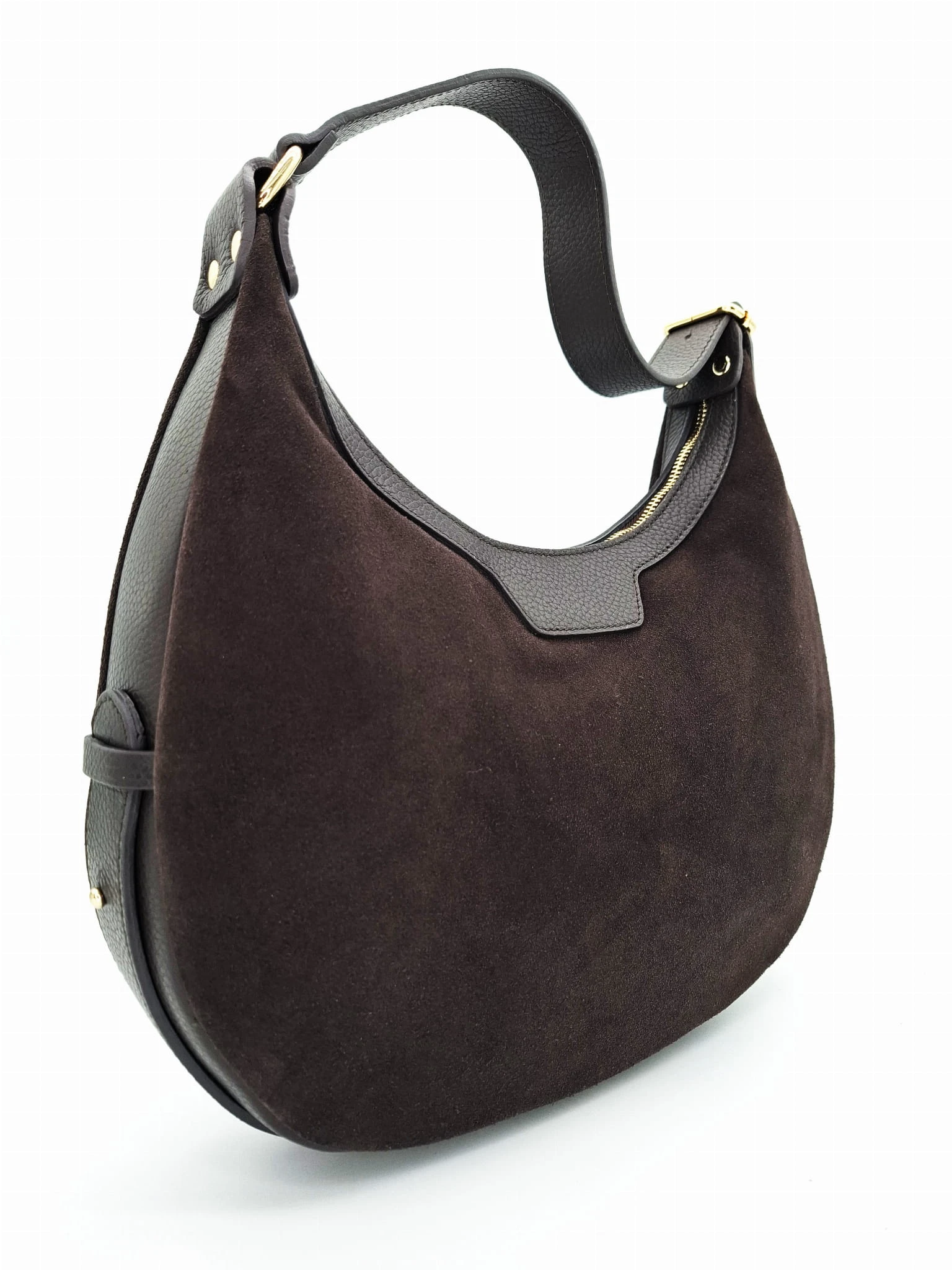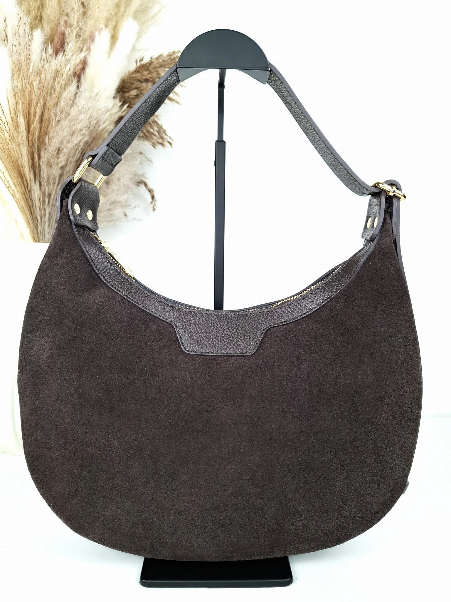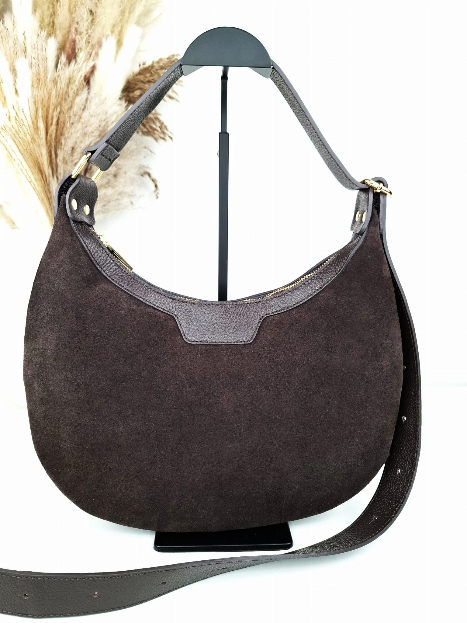 Laura Biaggi torebka zamszowa brązowa Duży Księżyc zamsz czekoladowy