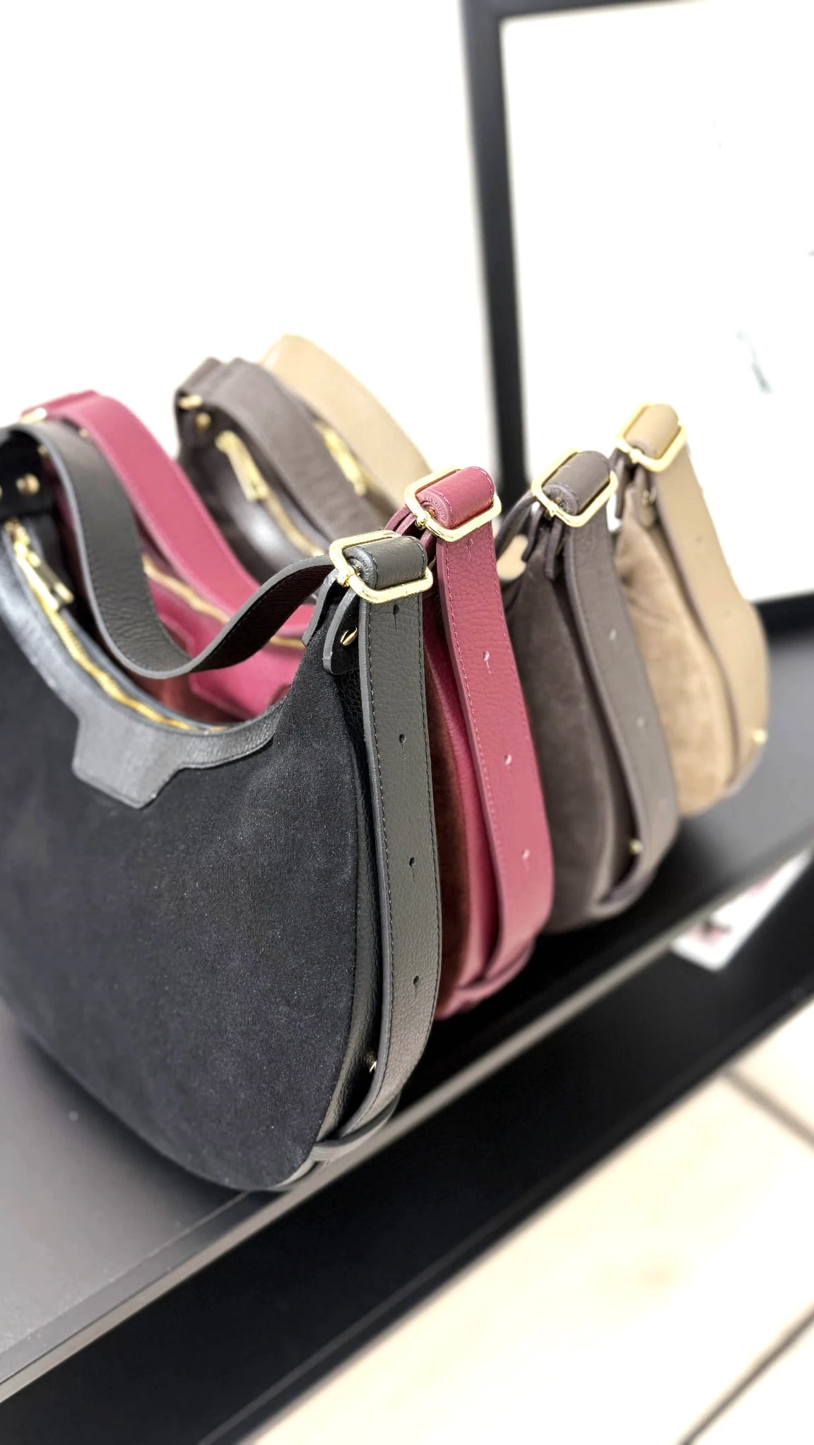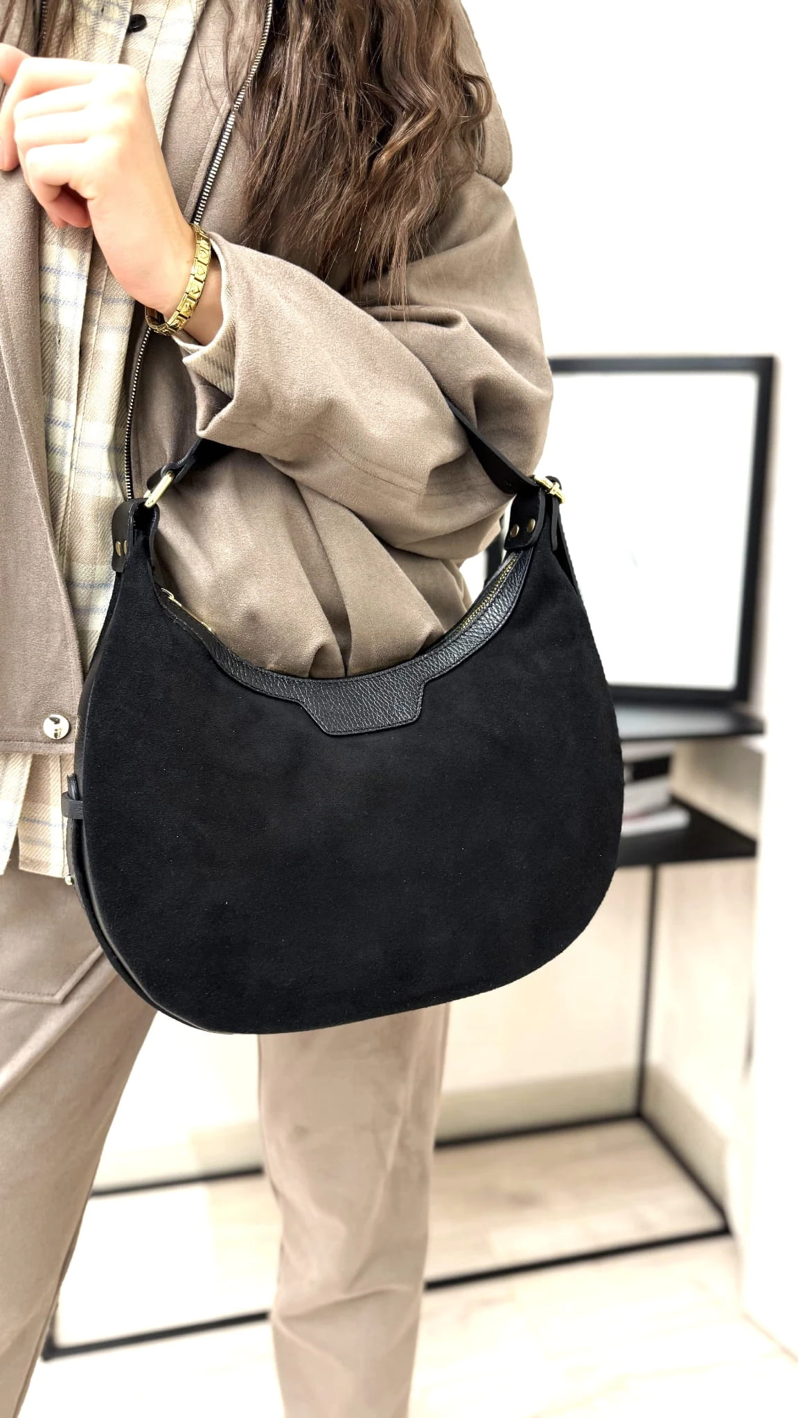 Viralowa zamszowo - skórzana torebka w kształcie księżyca