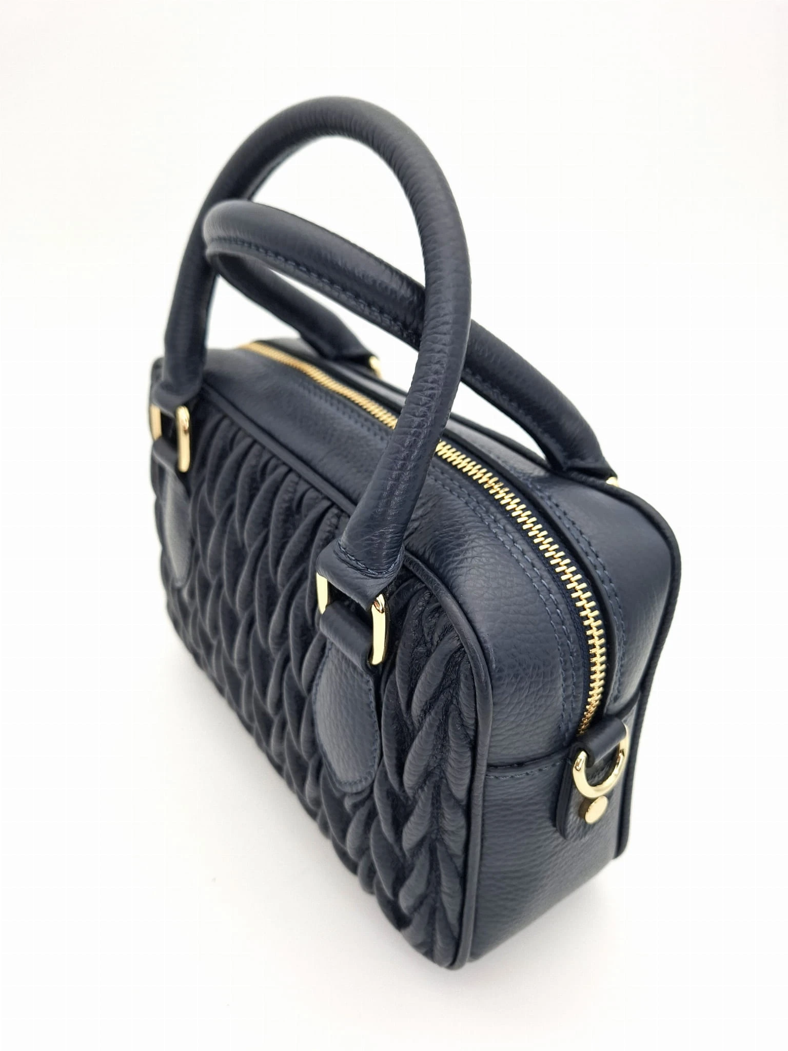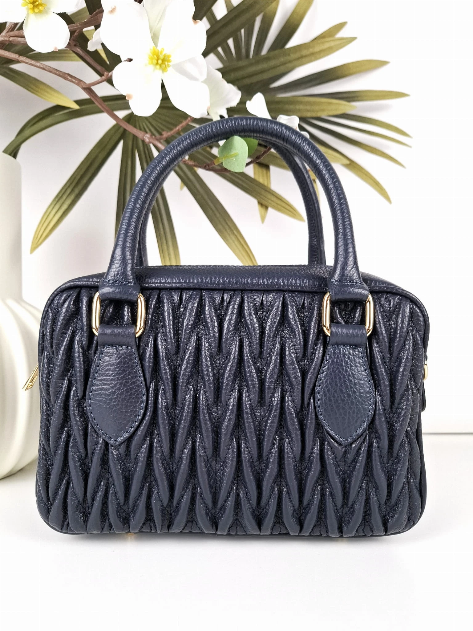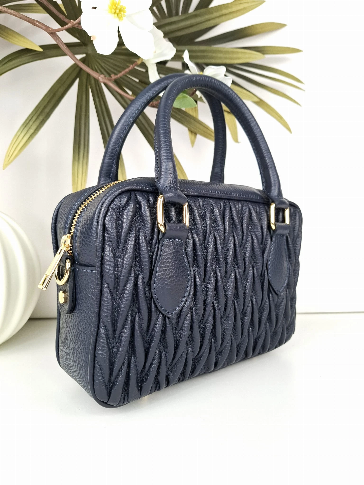 Mała torebka skórzana kuferek DOLORES granatowa pikowana