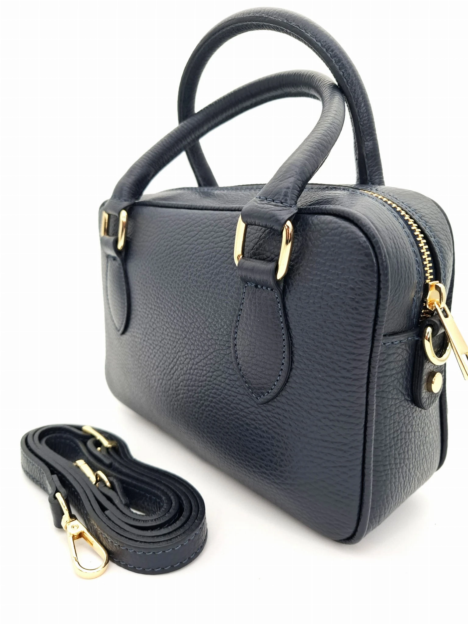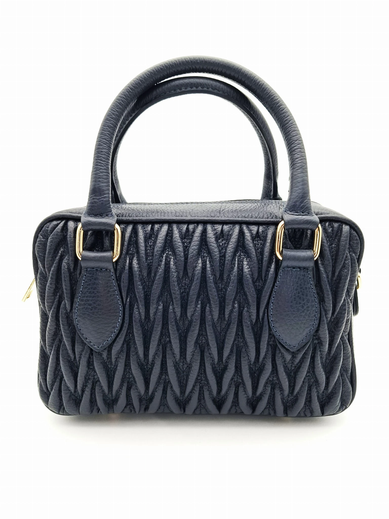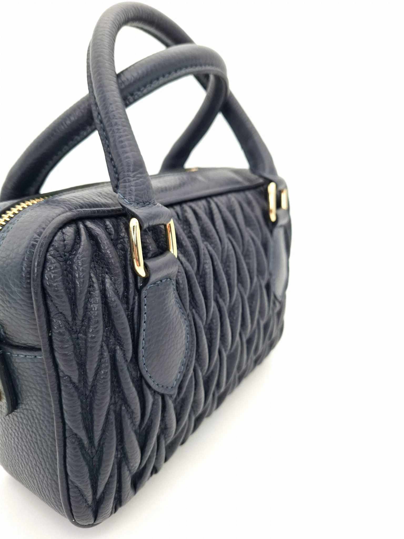 Mała torebka skórzana kuferek DOLORES granatowa pikowana