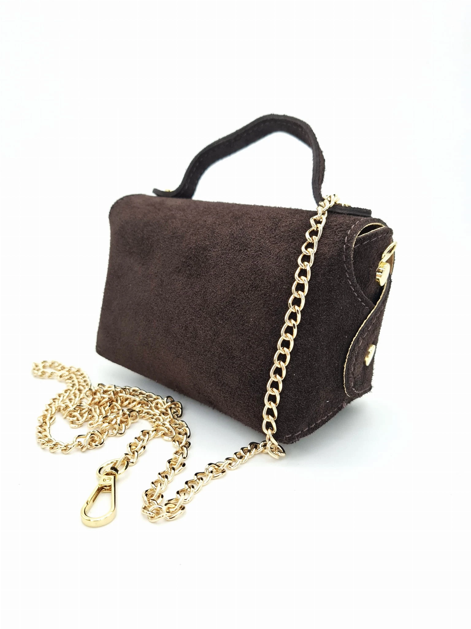 Mały format - dużo swobody. Torebka zamszowa Picco - malutka torebeczka na łańcuszku , idealna by czuć się swobodnie zabierając ze sobą niezbędne rzeczy typu klucze, telefon, karta. Sprawdź wymiary w opisie.