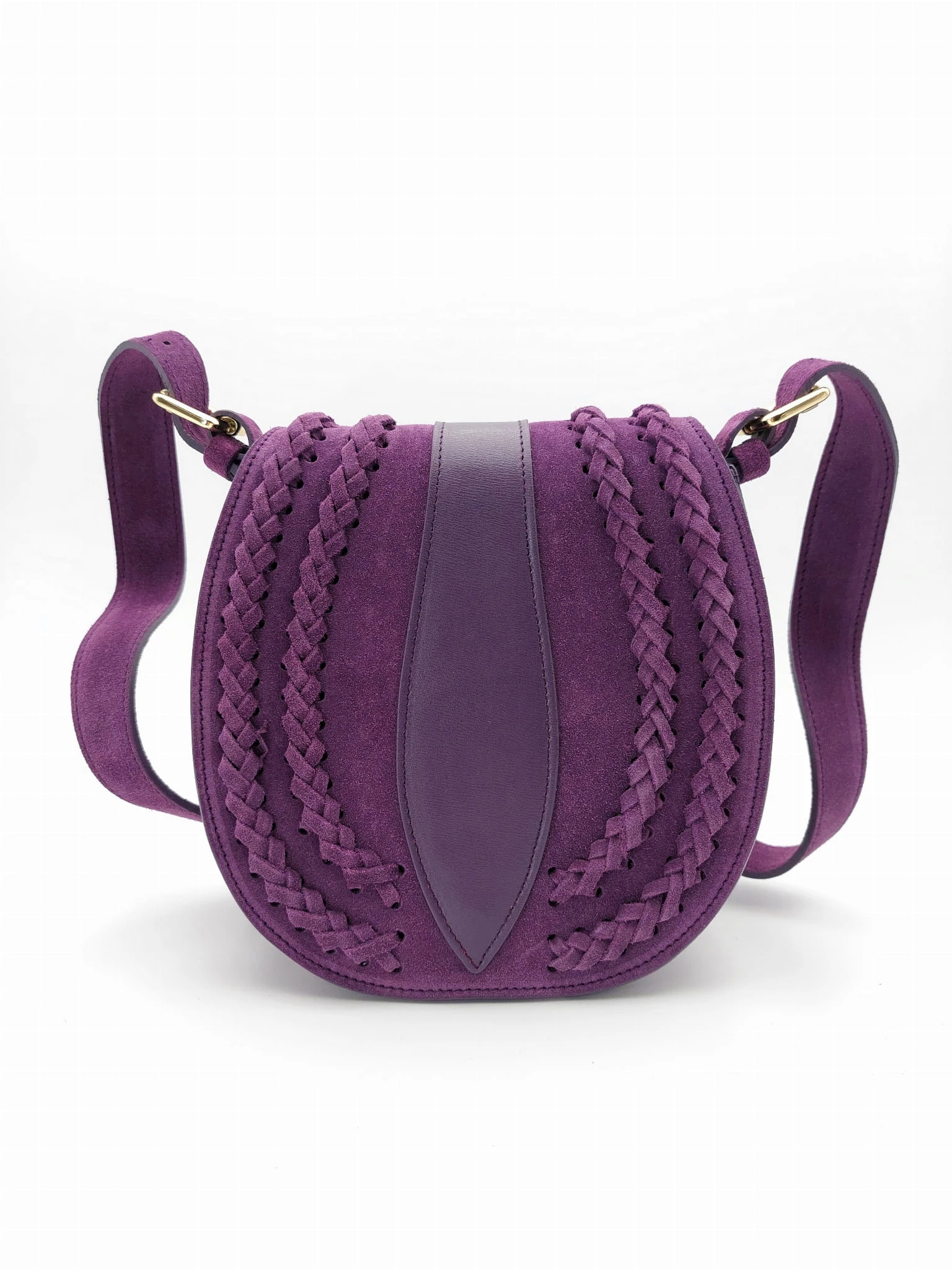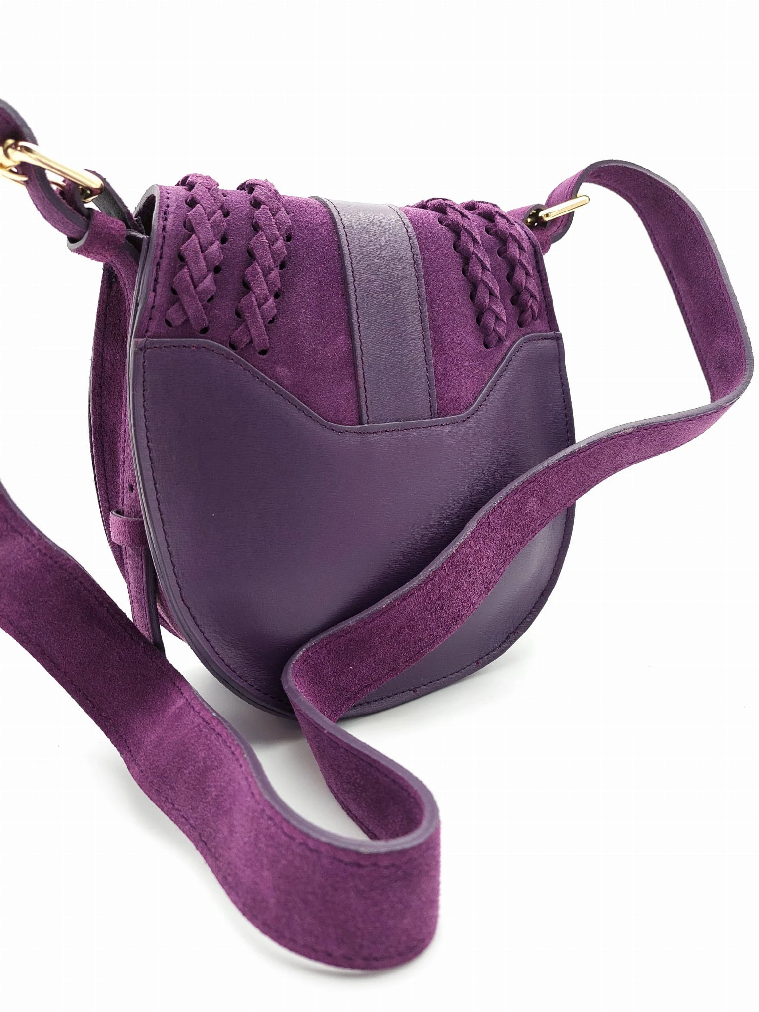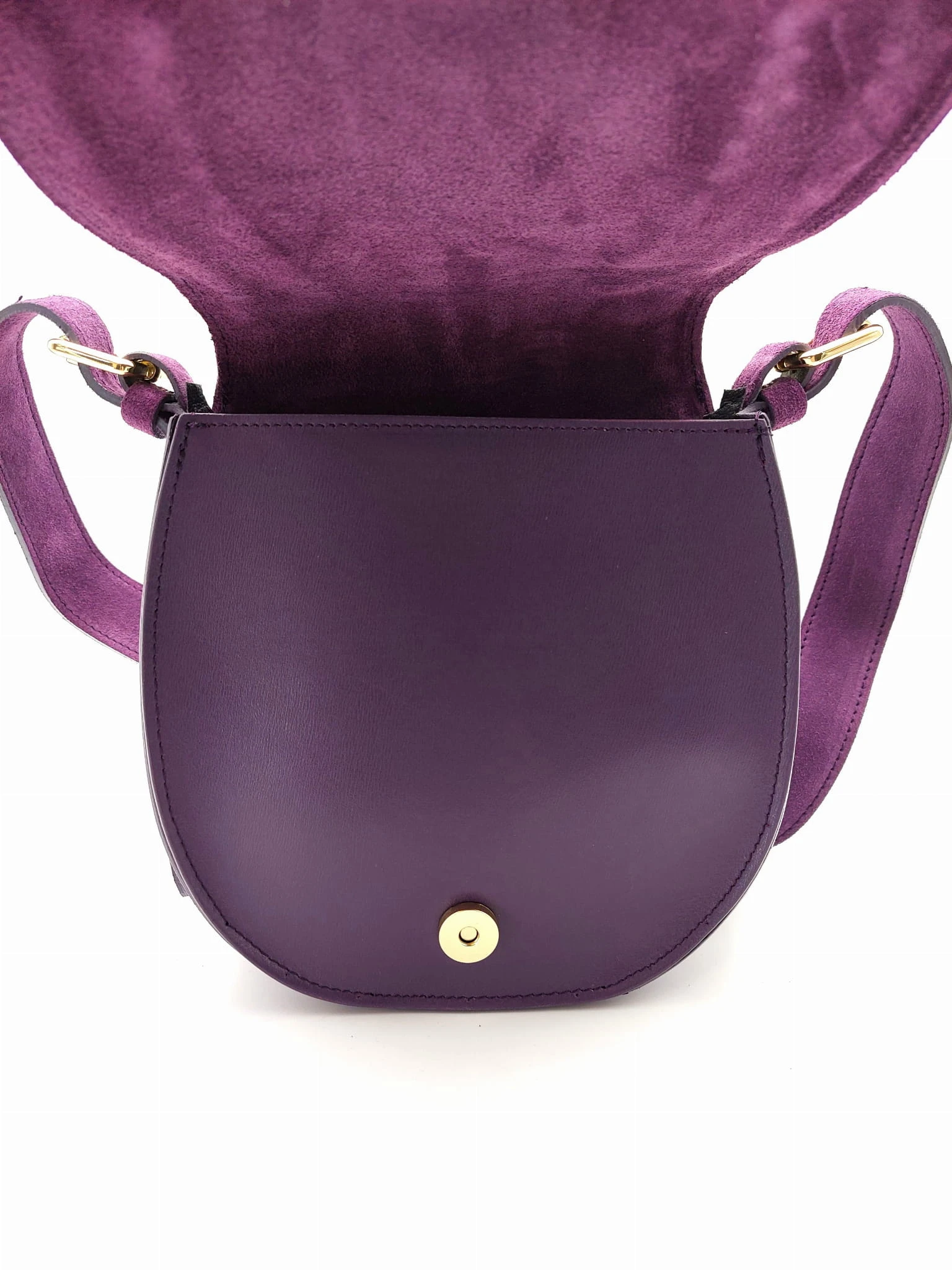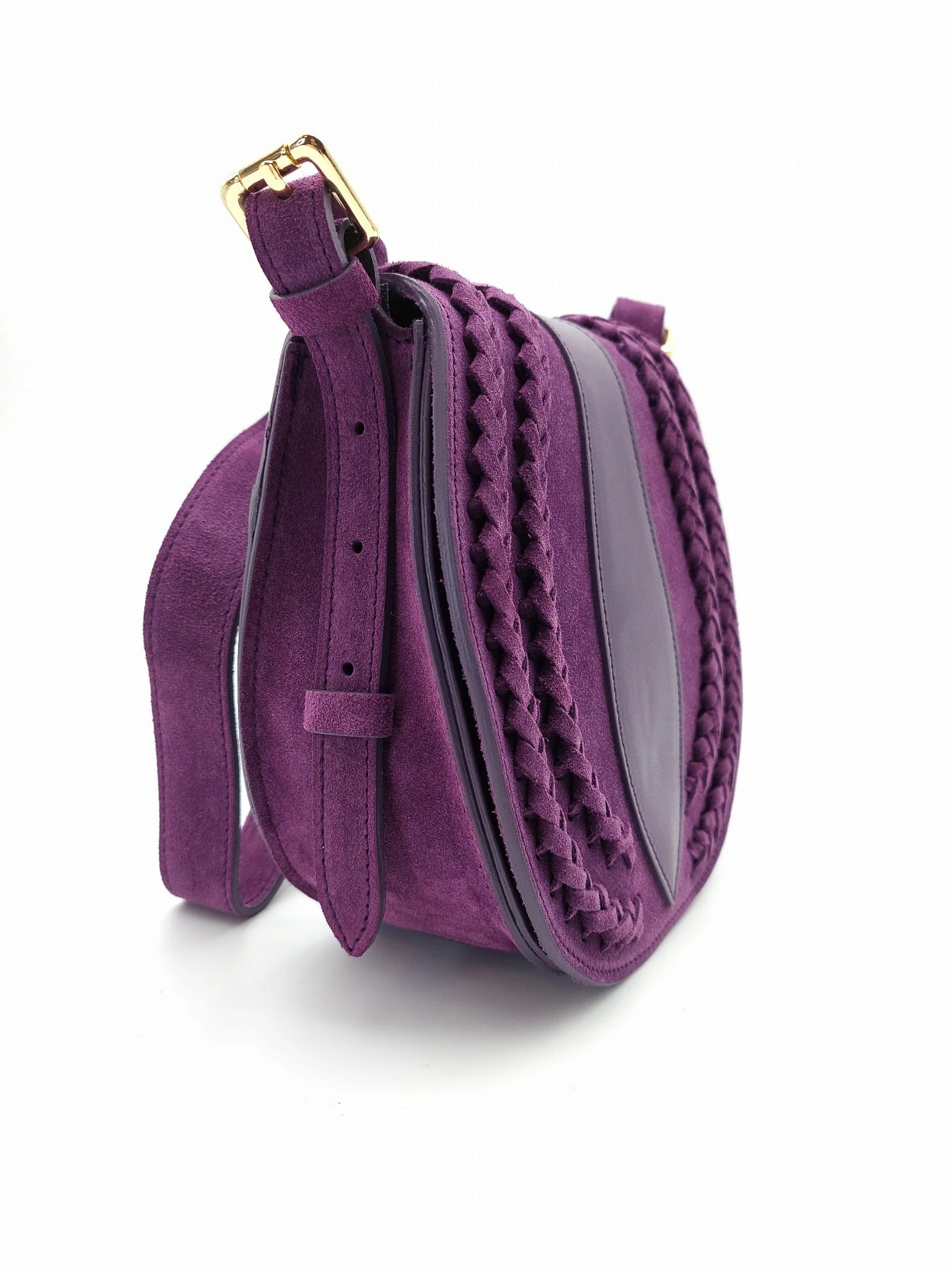 Półokrągła zamszowa fioletowa torebka na ramię VIOLA