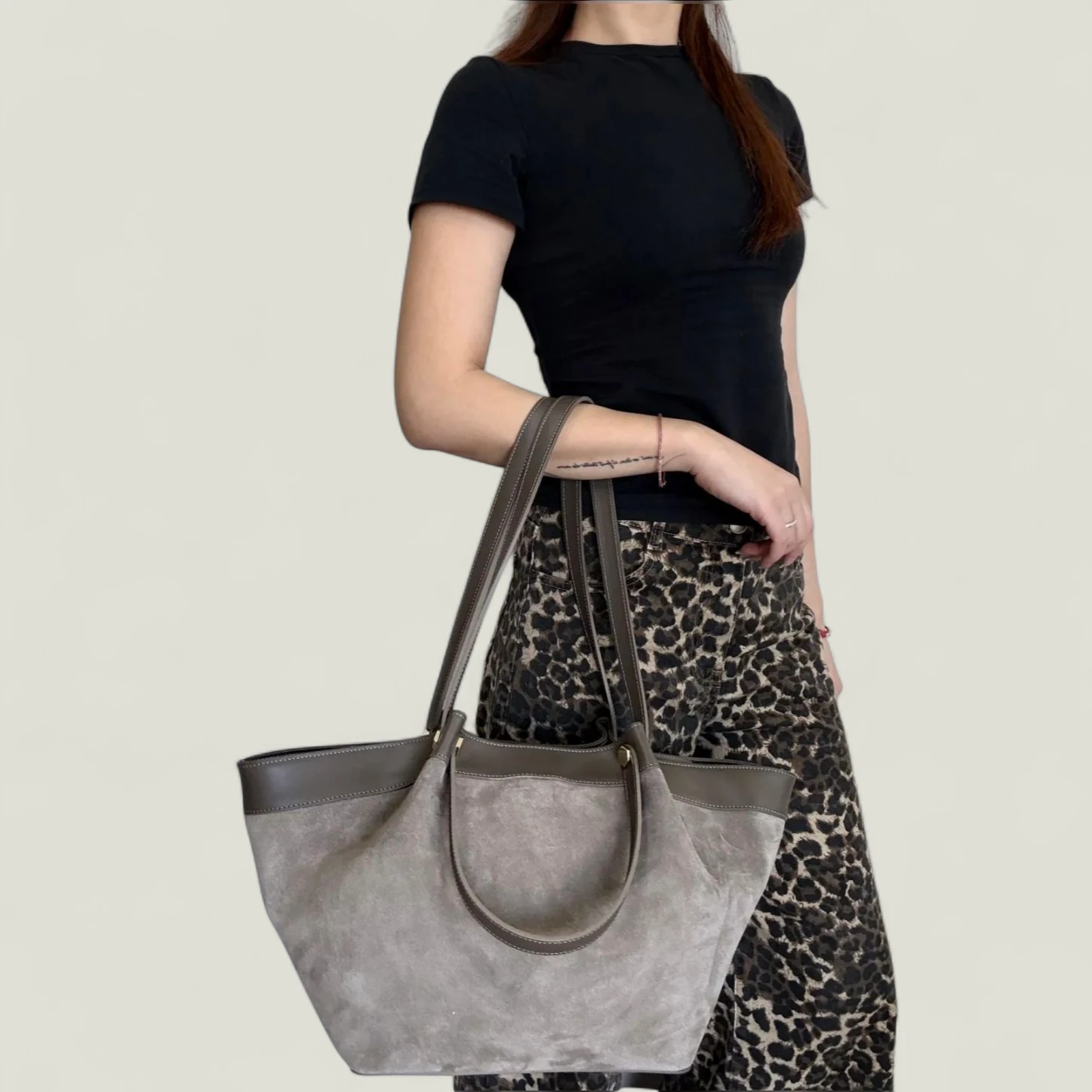 Ten pojemny model bez trudu mieści format A4, a wykończenie wnętrza podszewką zapewnia łatwe utrzymanie porządku. To idealny wybór na co dzień – do pracy, na uczelnię czy na spotkania, gdy potrzebujesz mieć przy sobie nieco więcej. Torebka zamszowa to inwestycja w jakość i ponadczasowy styl, która posłuży Ci przez wiele sezonów.