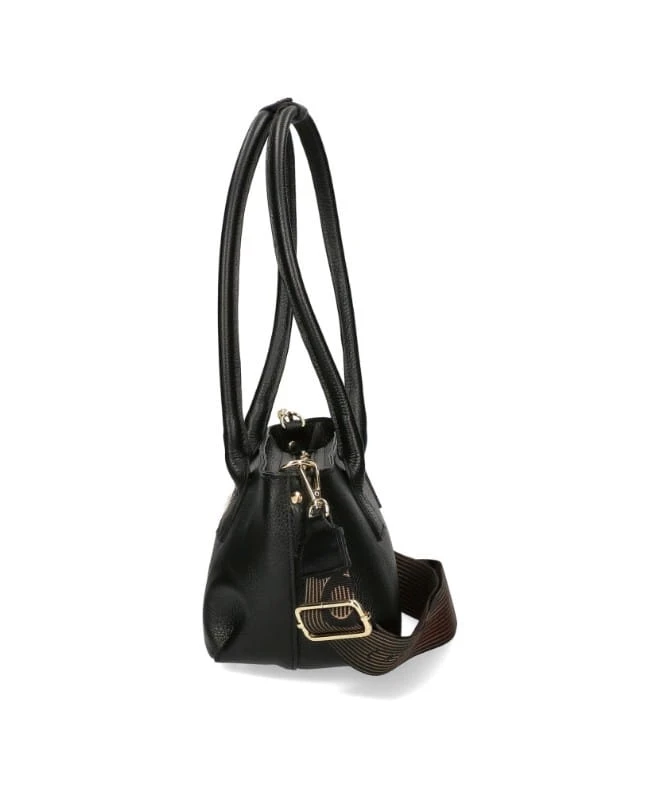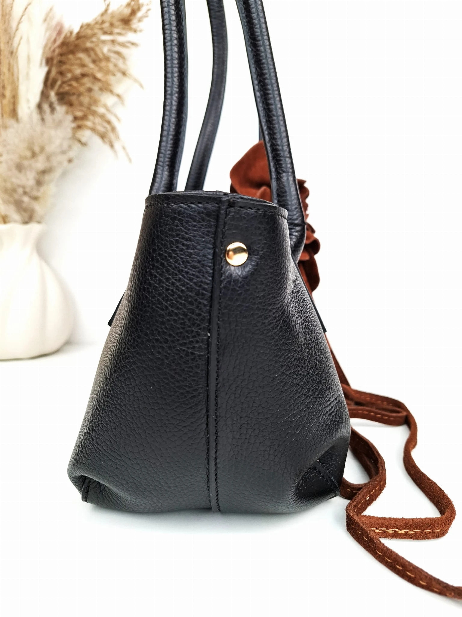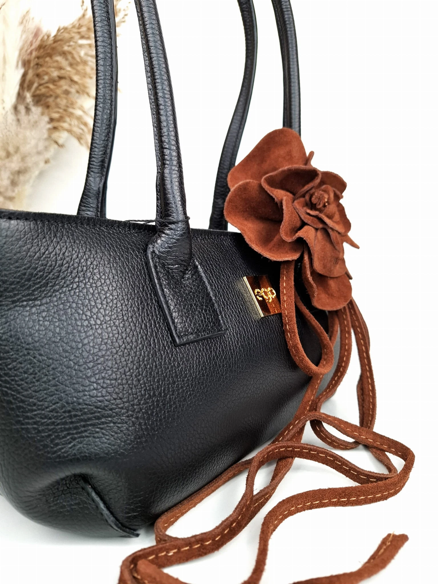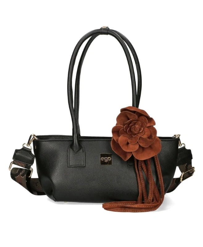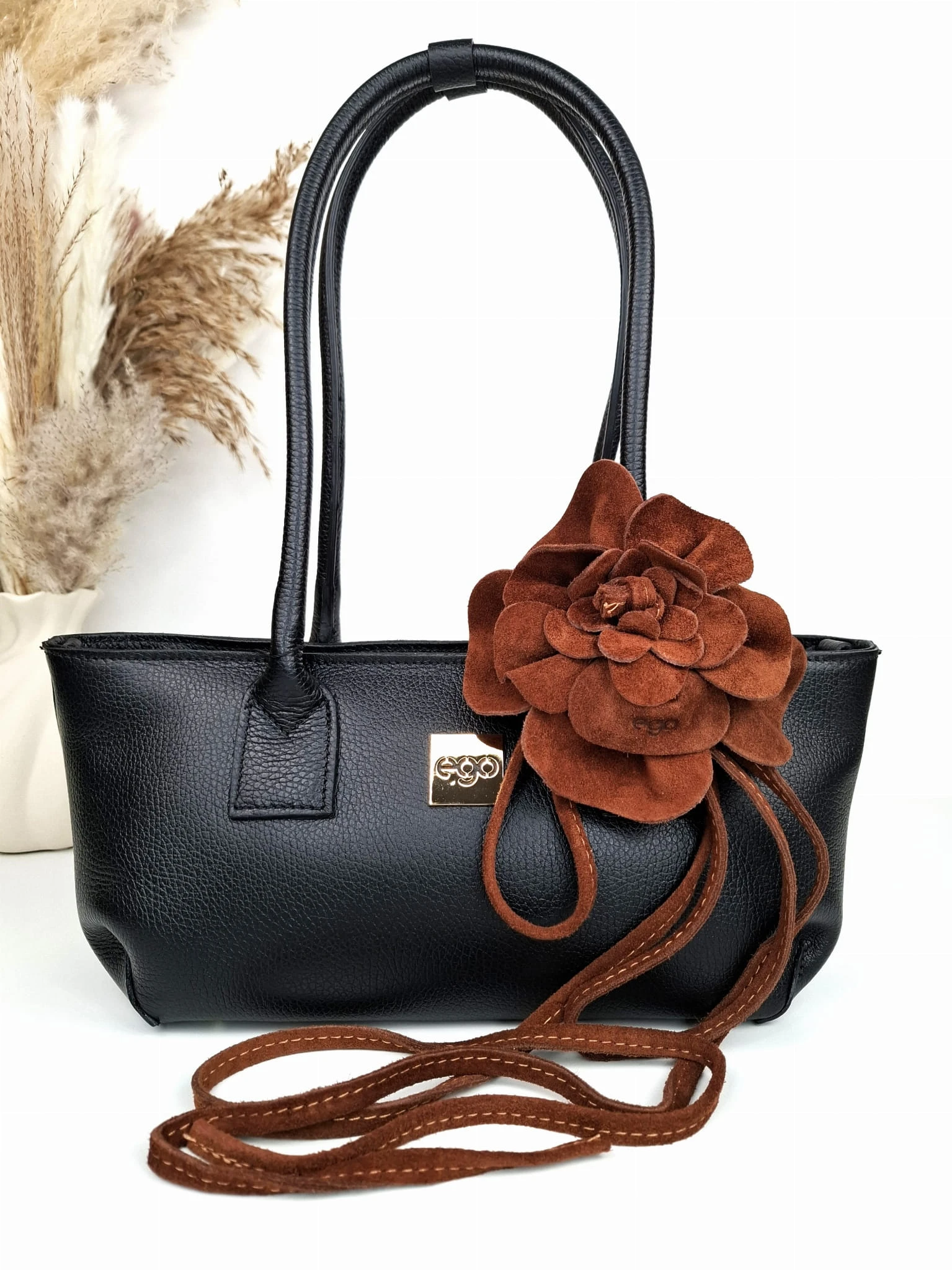 Torebka EGO podłużna czarna z zamszowym kwiatem jamnik