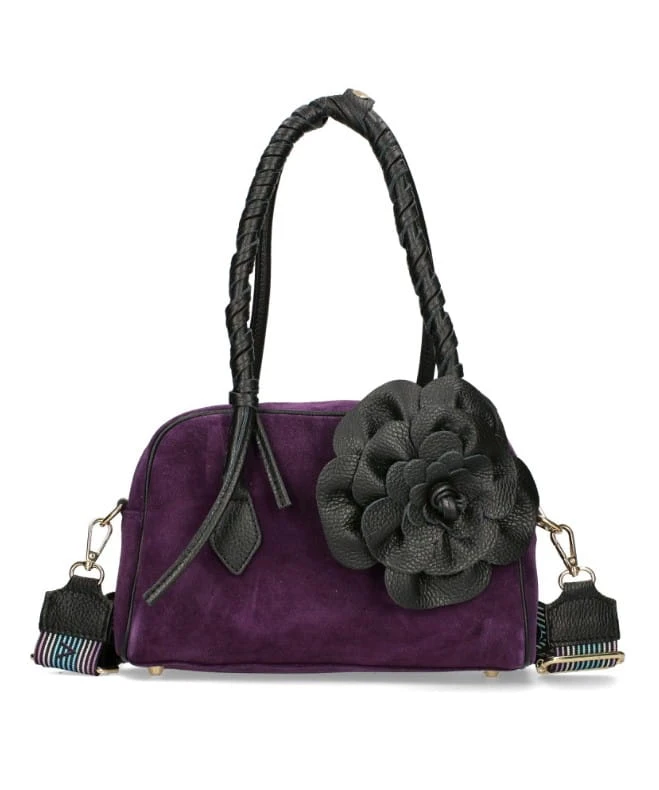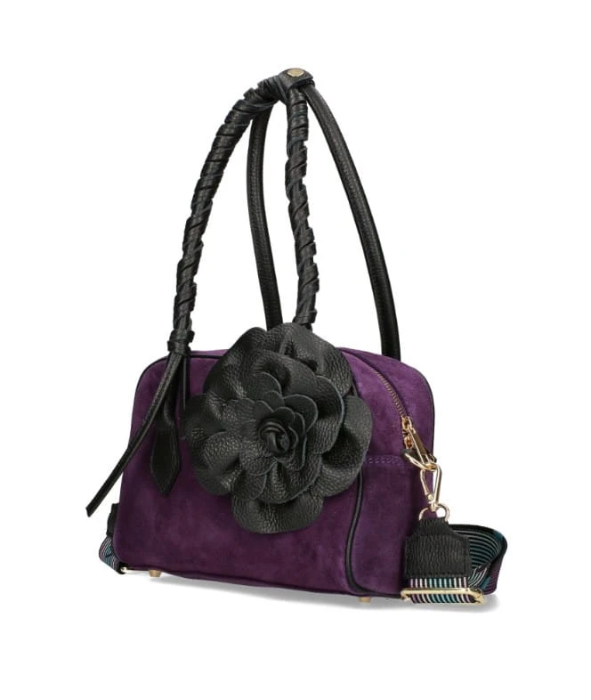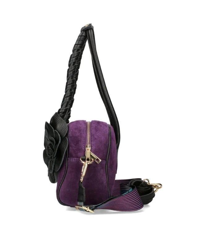 Torebka EGO zamszowa fioletowa z odpinanym kwiatem