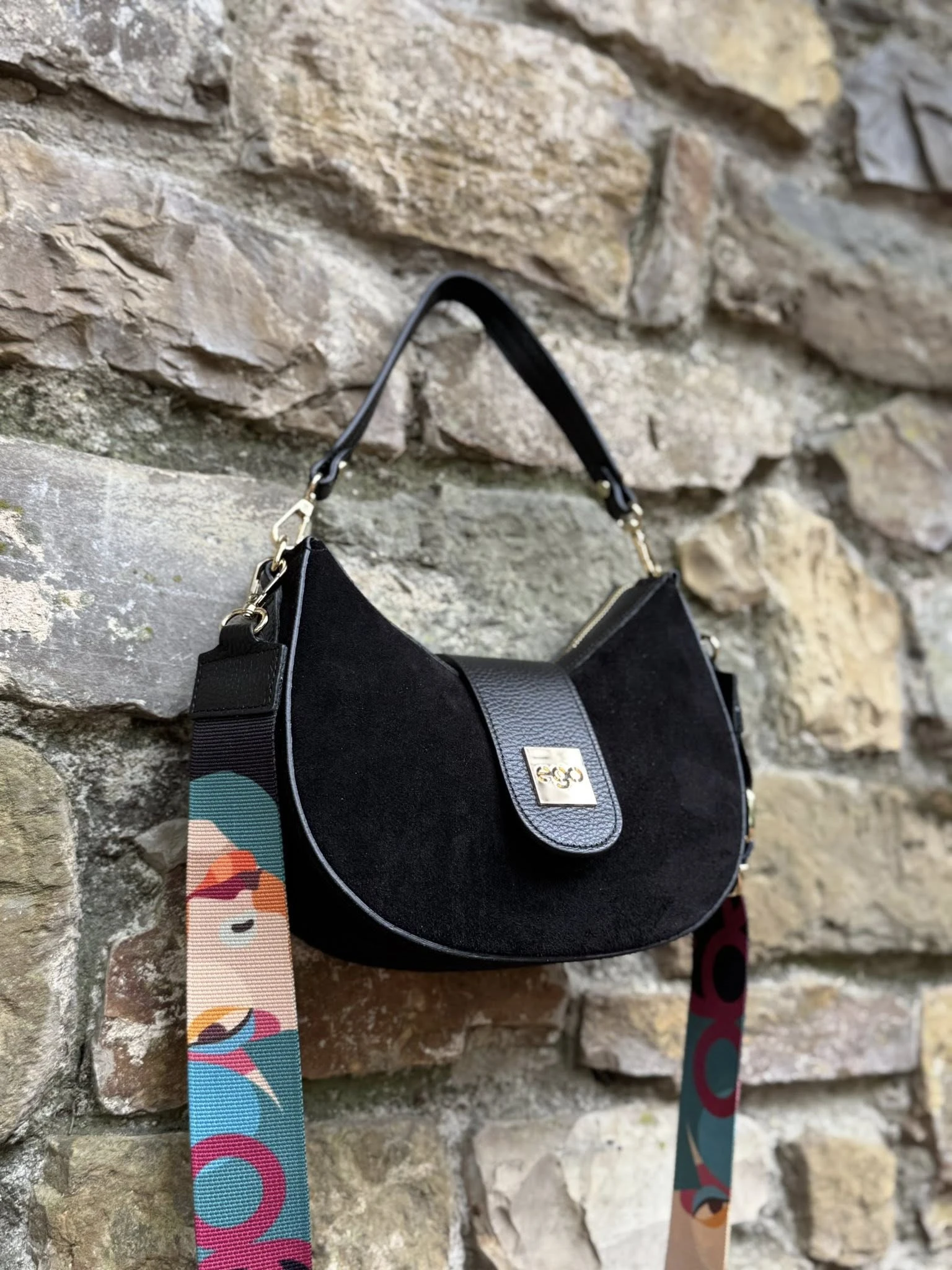 Torebka Ego Czarna zamszowa listonoszka Księżyc