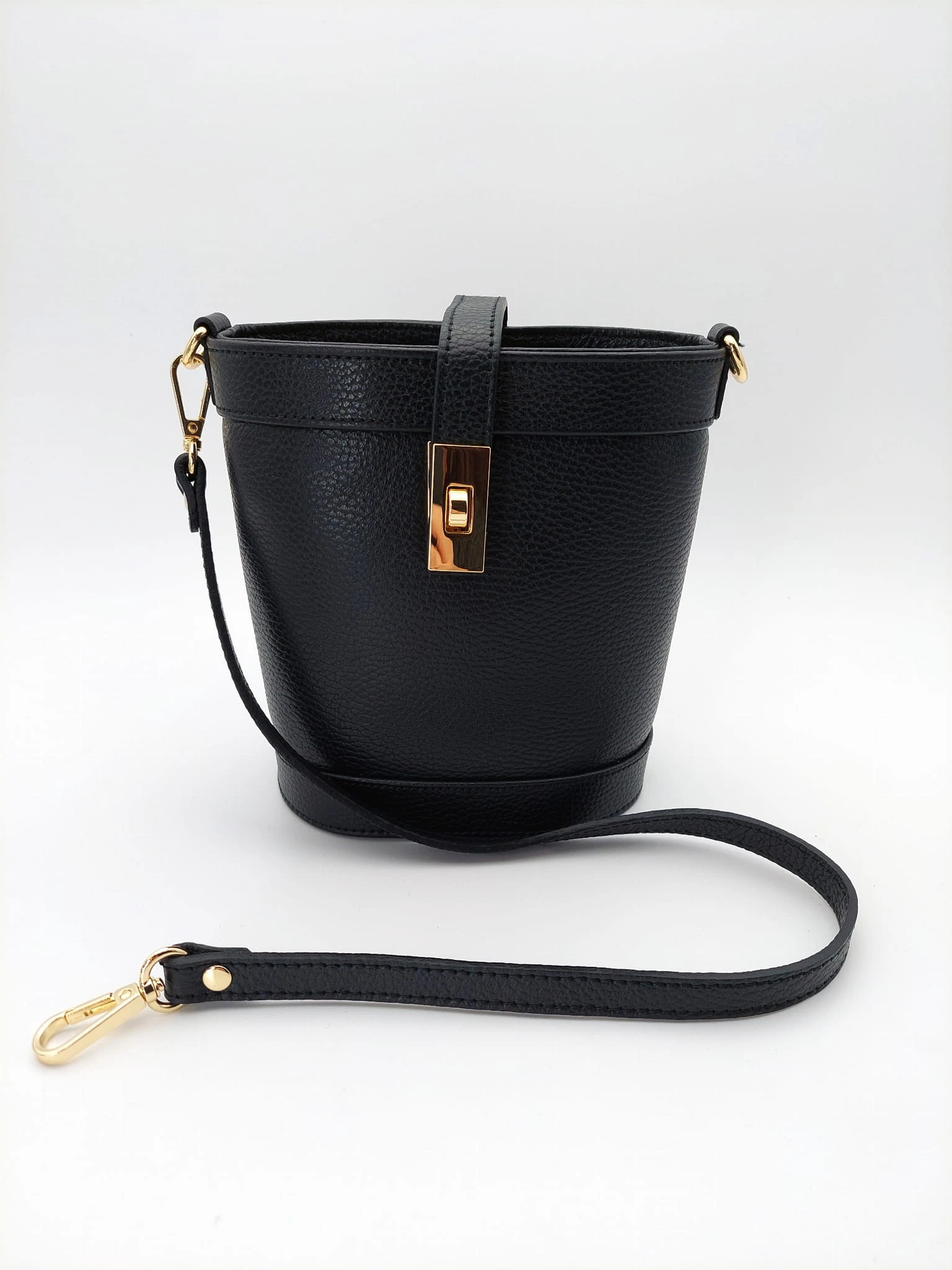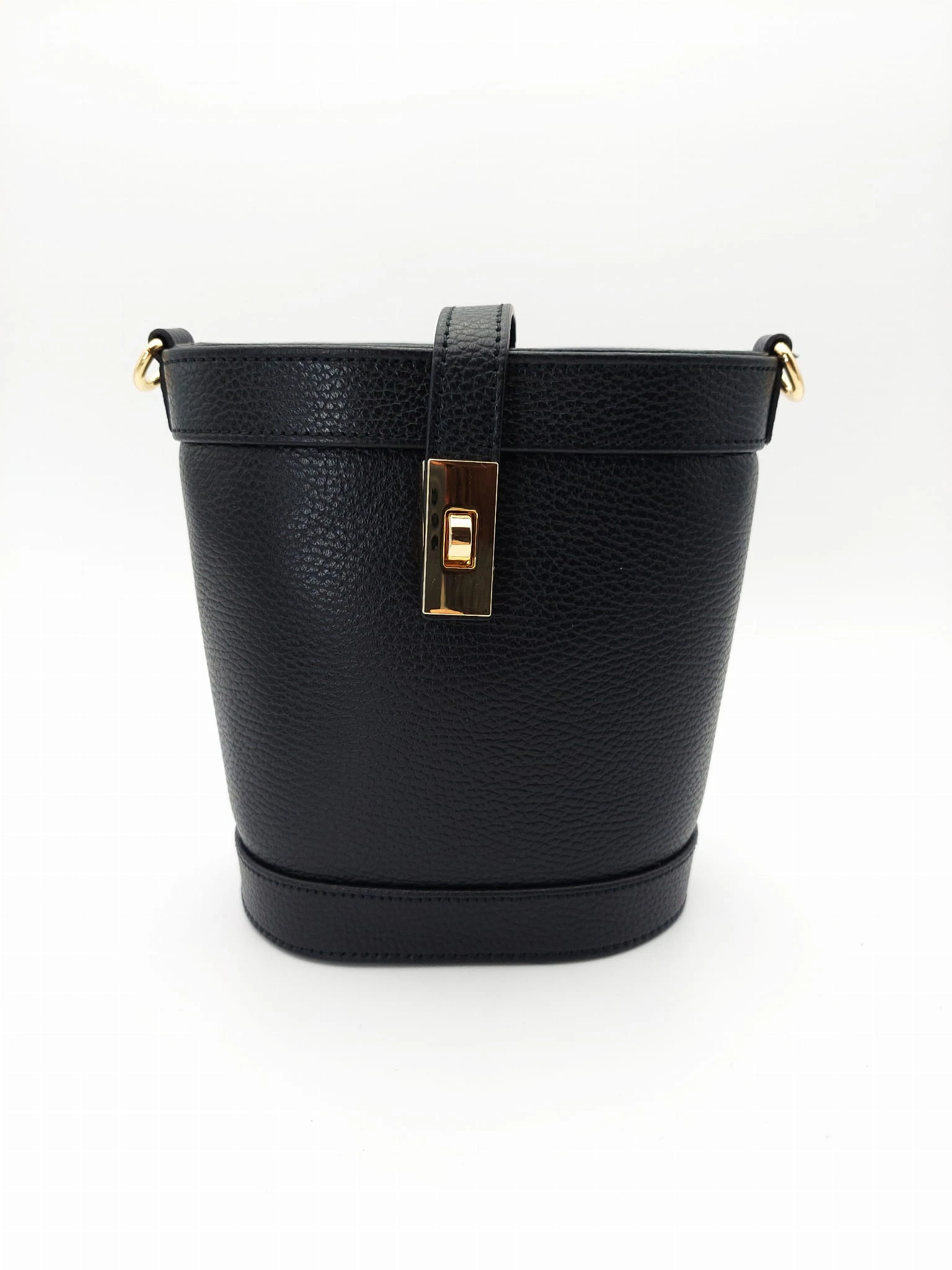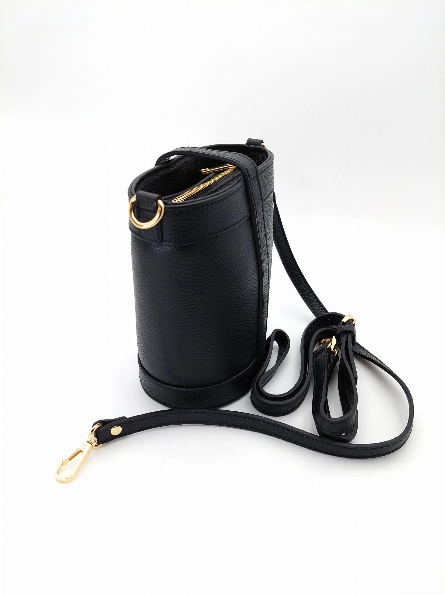 Torebka kubełkowa czarna skóra naturalna Vera Pelle