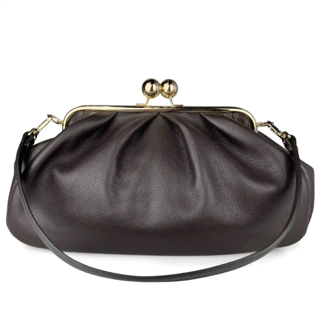 Torebka damska wykonana z naturalnej skóry , zamykana na bigiel - Maxi Clutch Bag ( Kisslock / Frame Bag ) . Stylowy fason z nuta retro , pięknie uzupełni każdą kreację.