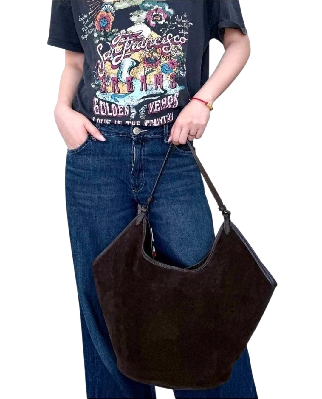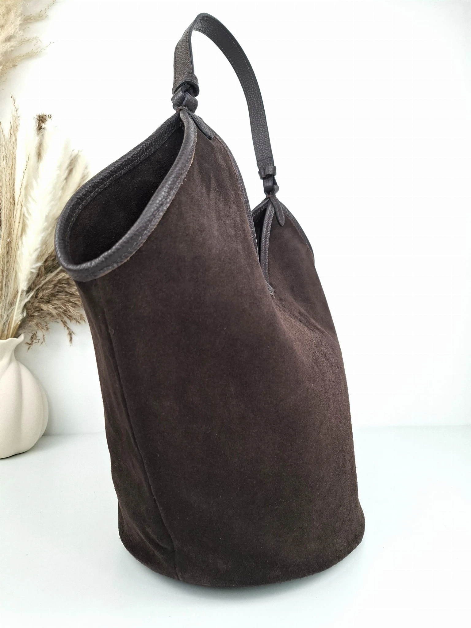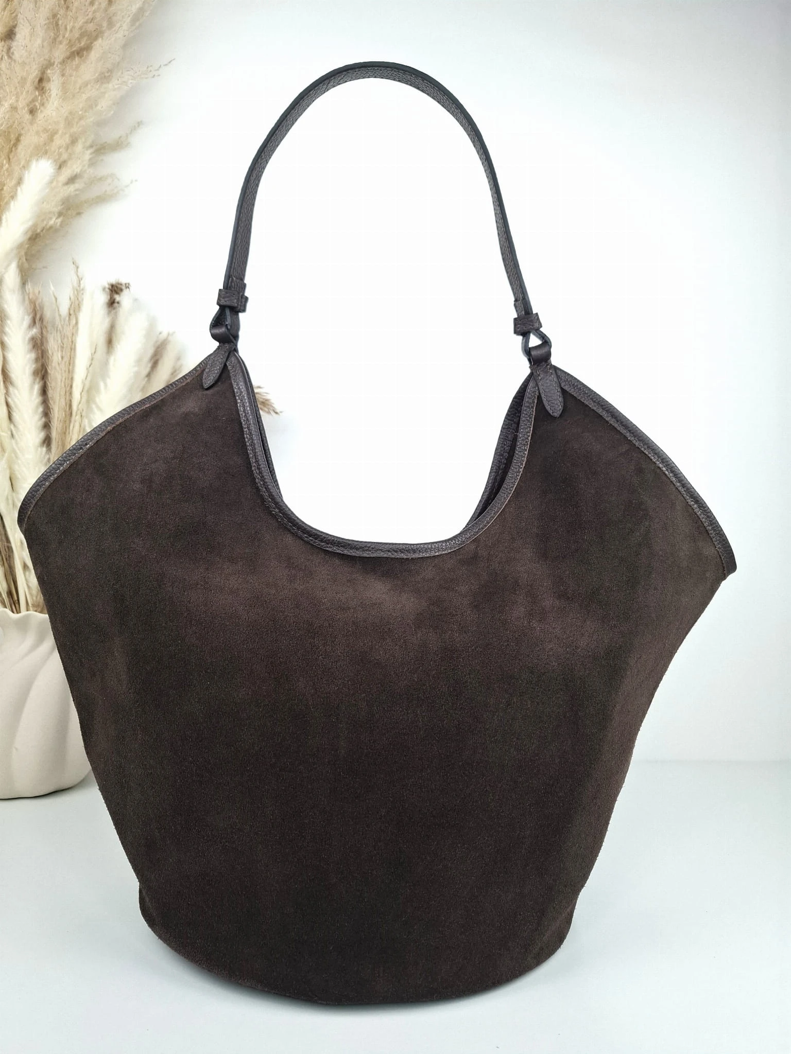 INEZ włoska zamszowa torebka shopper na ramię w kolorze ciemnego brązu - czekoladowa