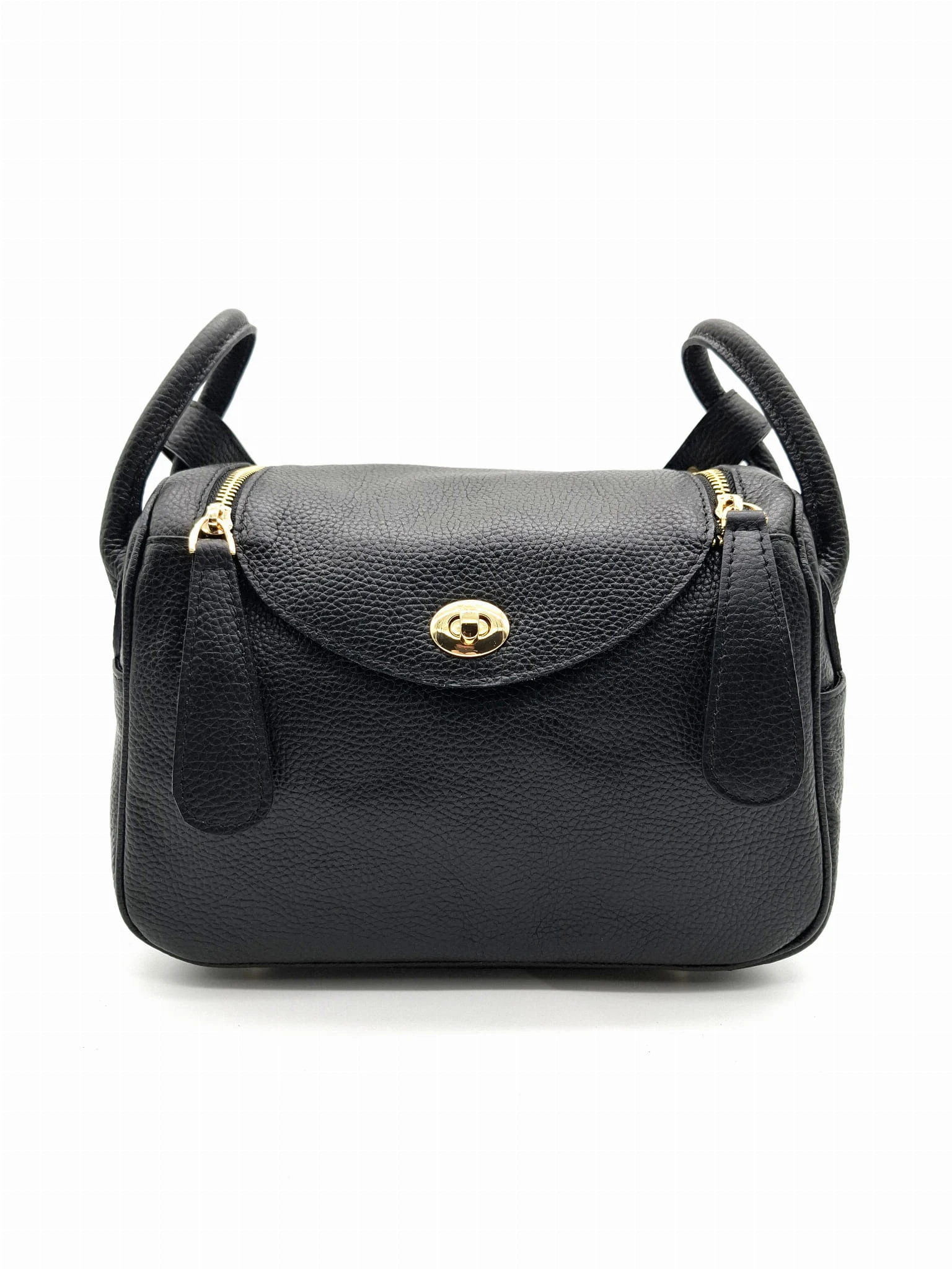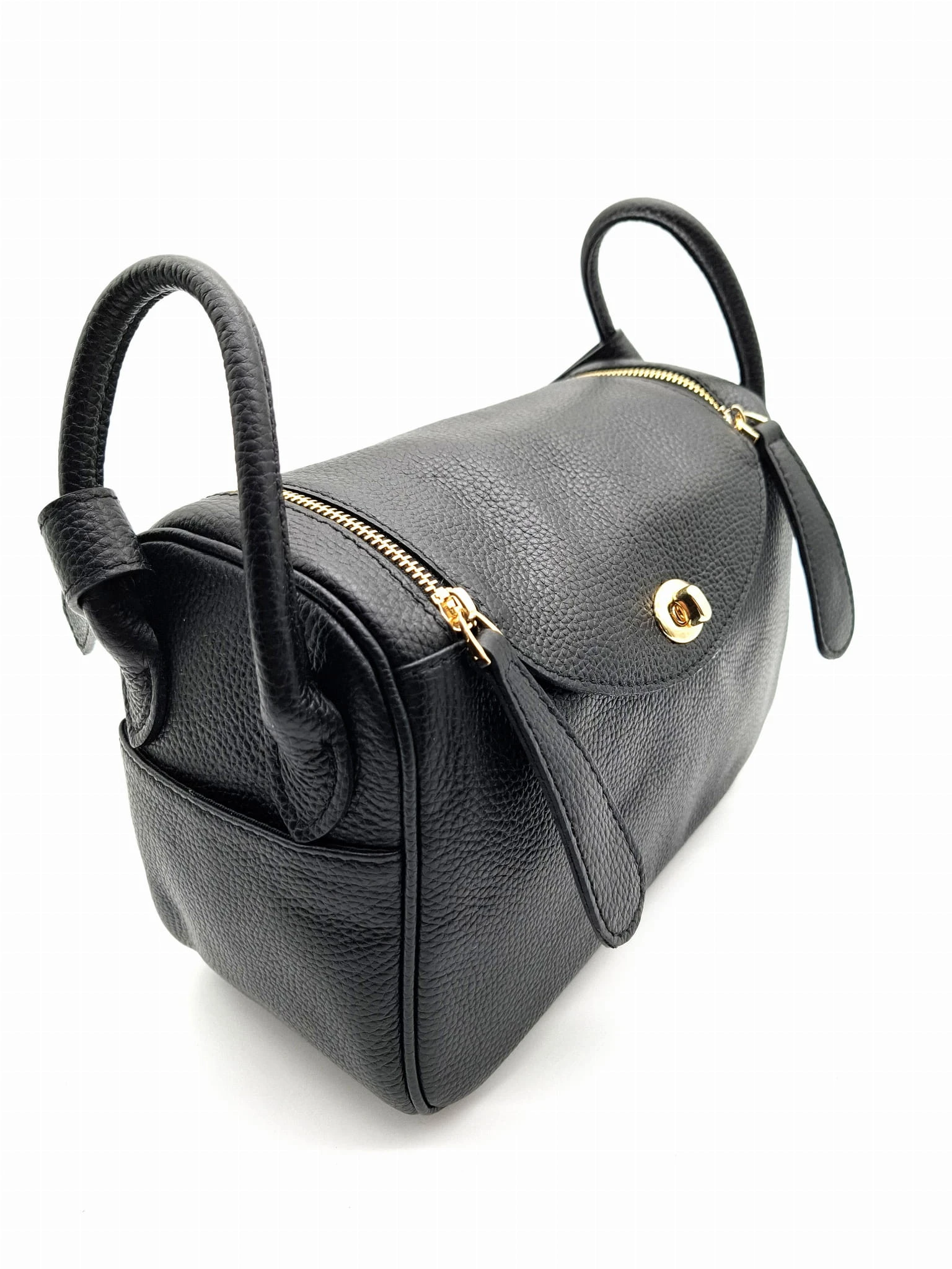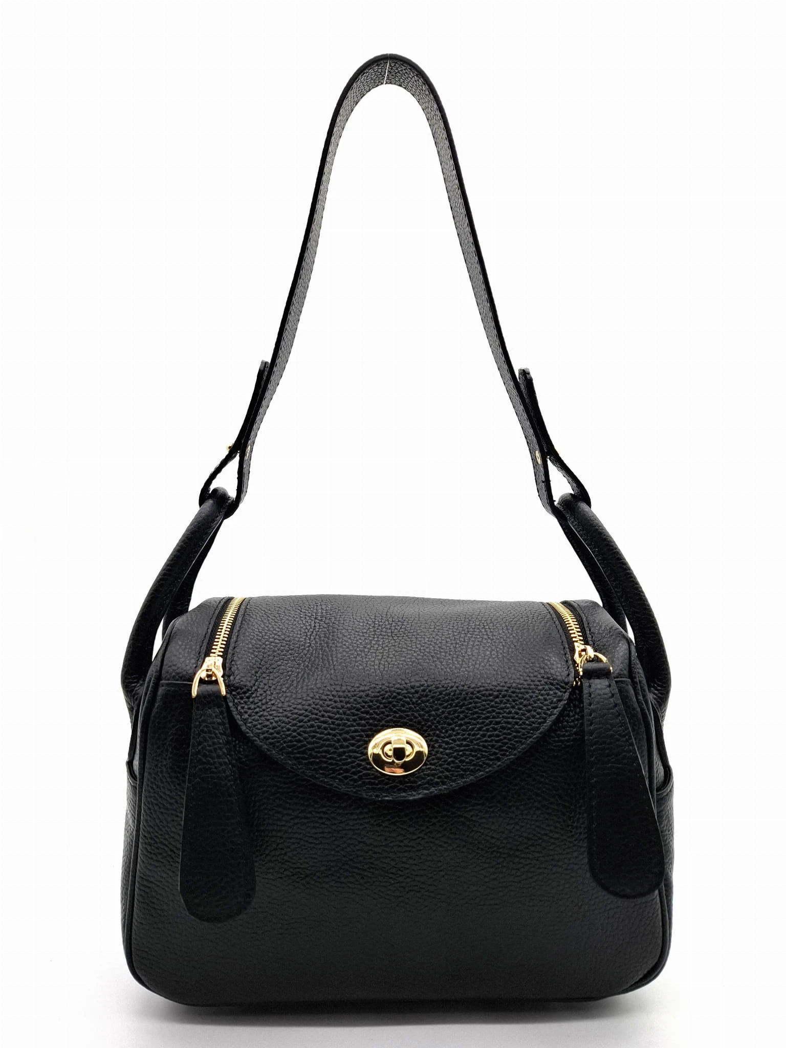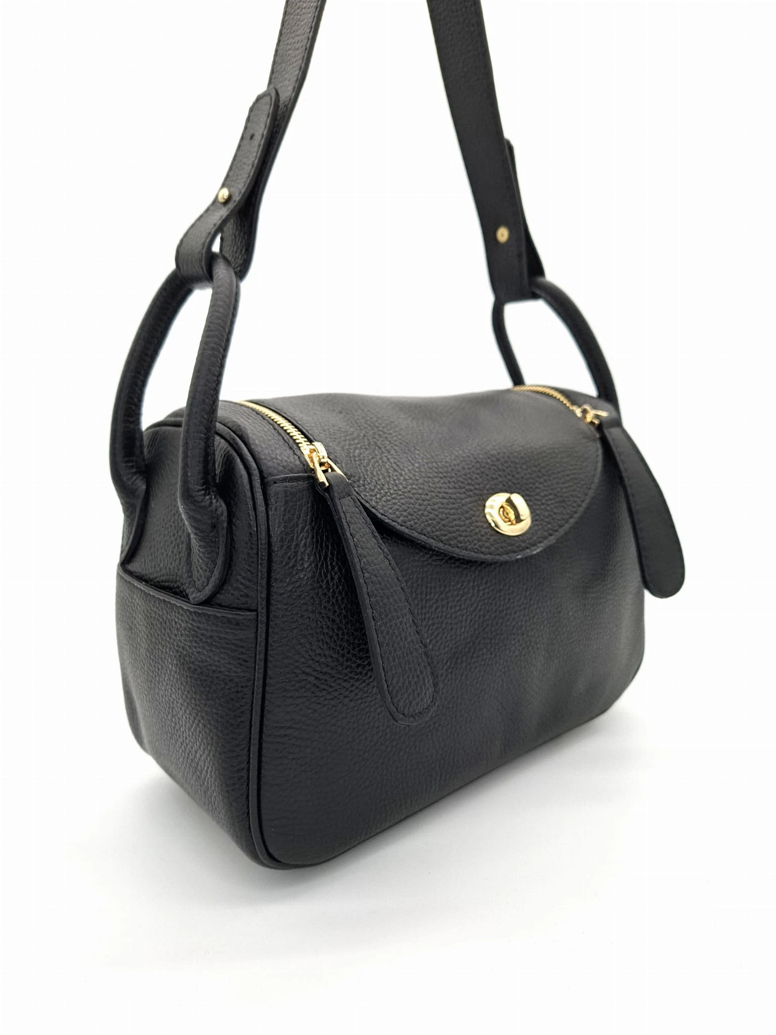 Torebka skórzana na ramię ALBERE z klapką na zamek czarna