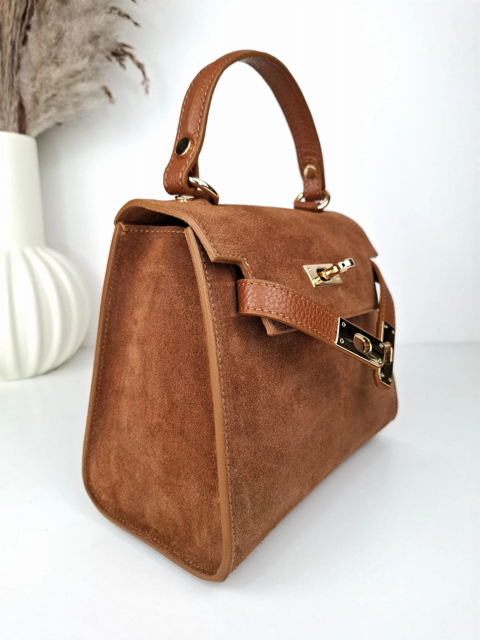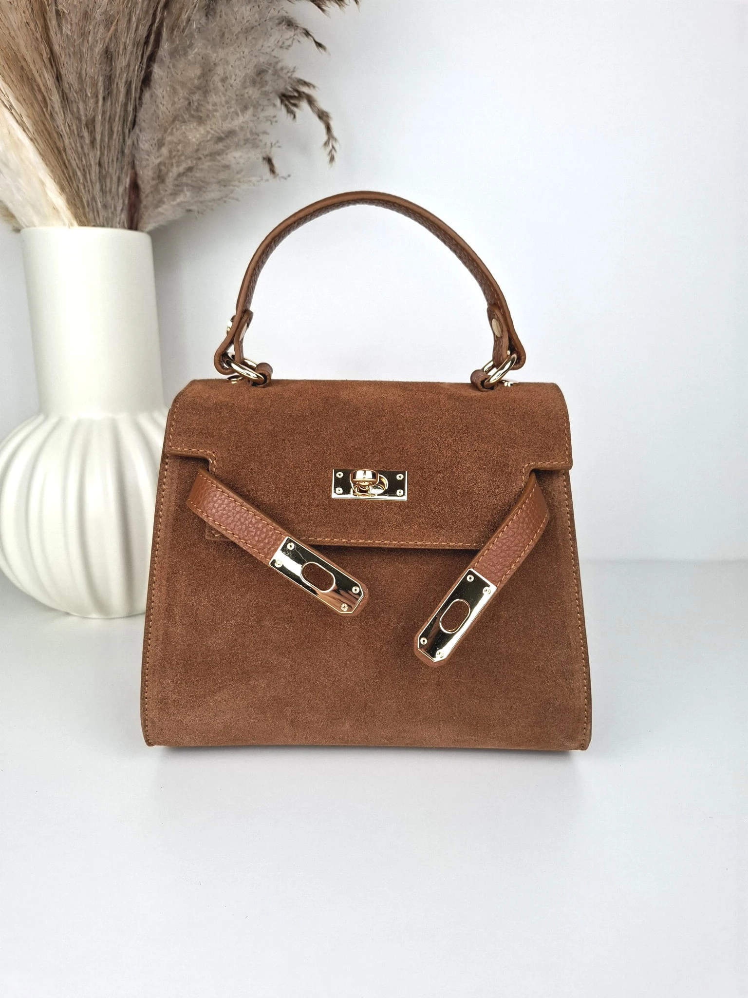 Uniwersalna, zamszowa torebka - idealna na imprezy okolicznościowe oraz spotkania z przyjaciółmi.