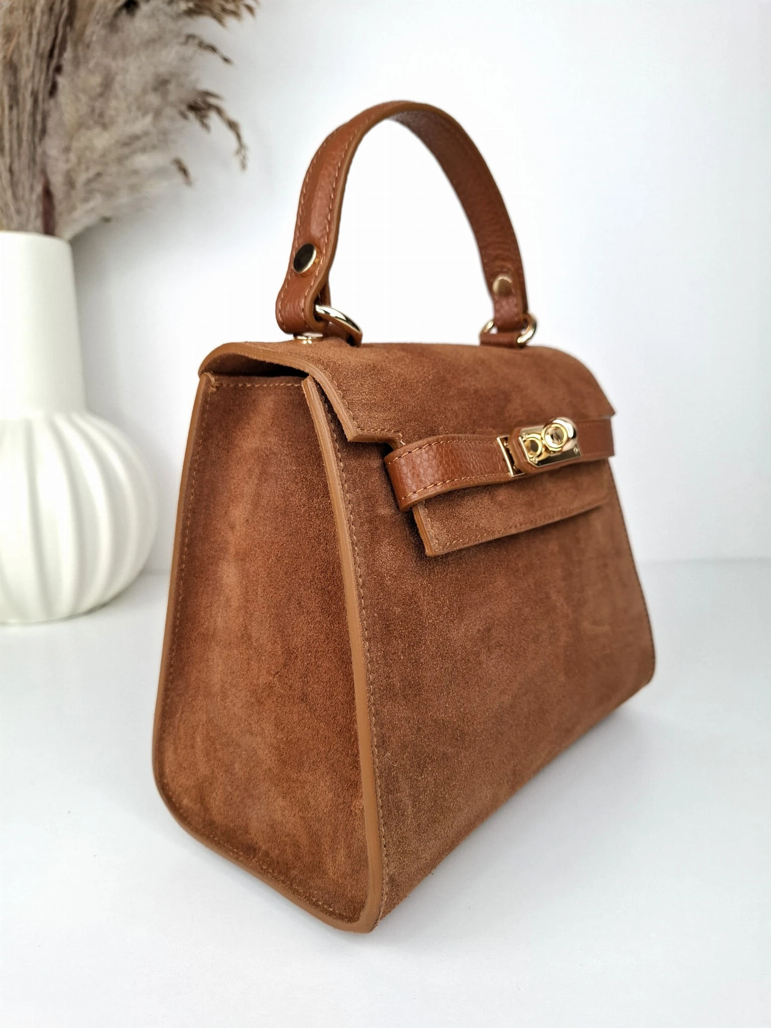 Torebka zamszowa camel kuferek ELISSA brąz cuoio