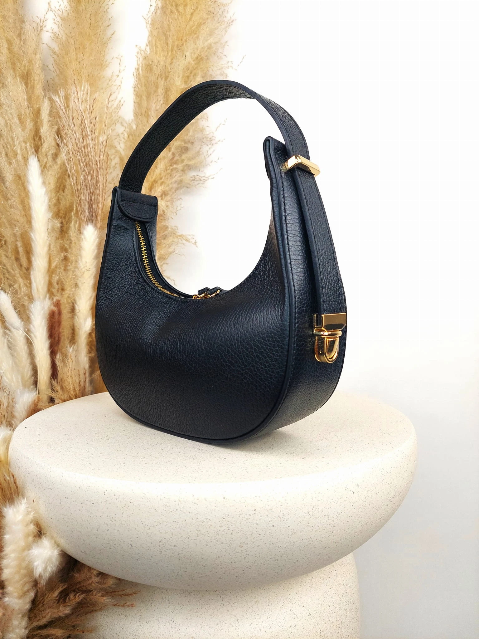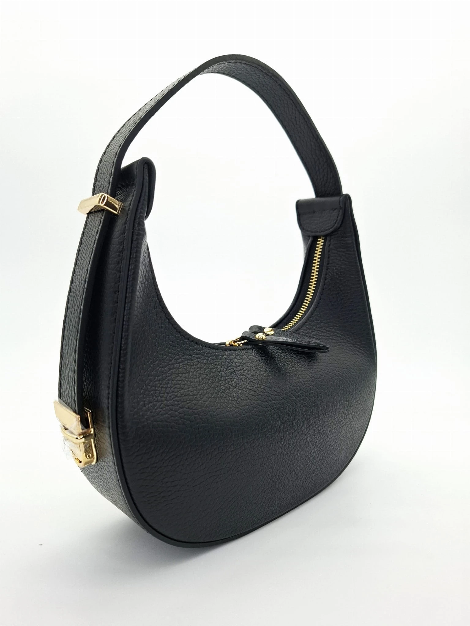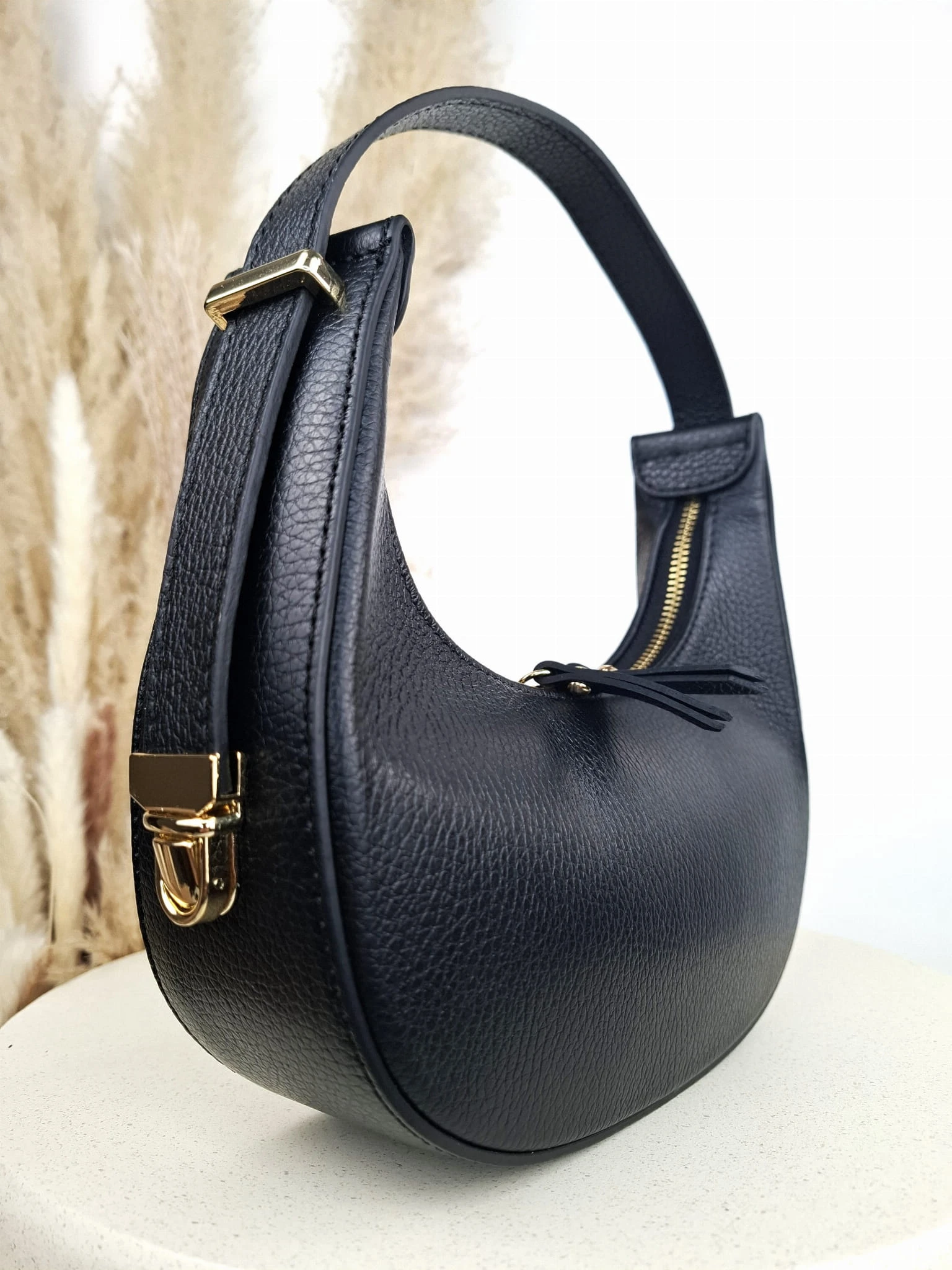 VERA PELLE Mała czarna torebka skórzana SALLY