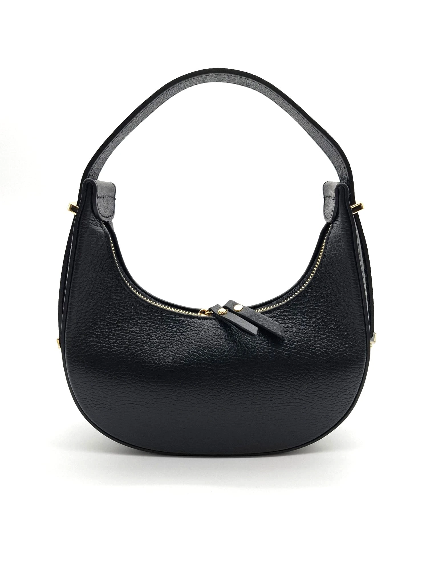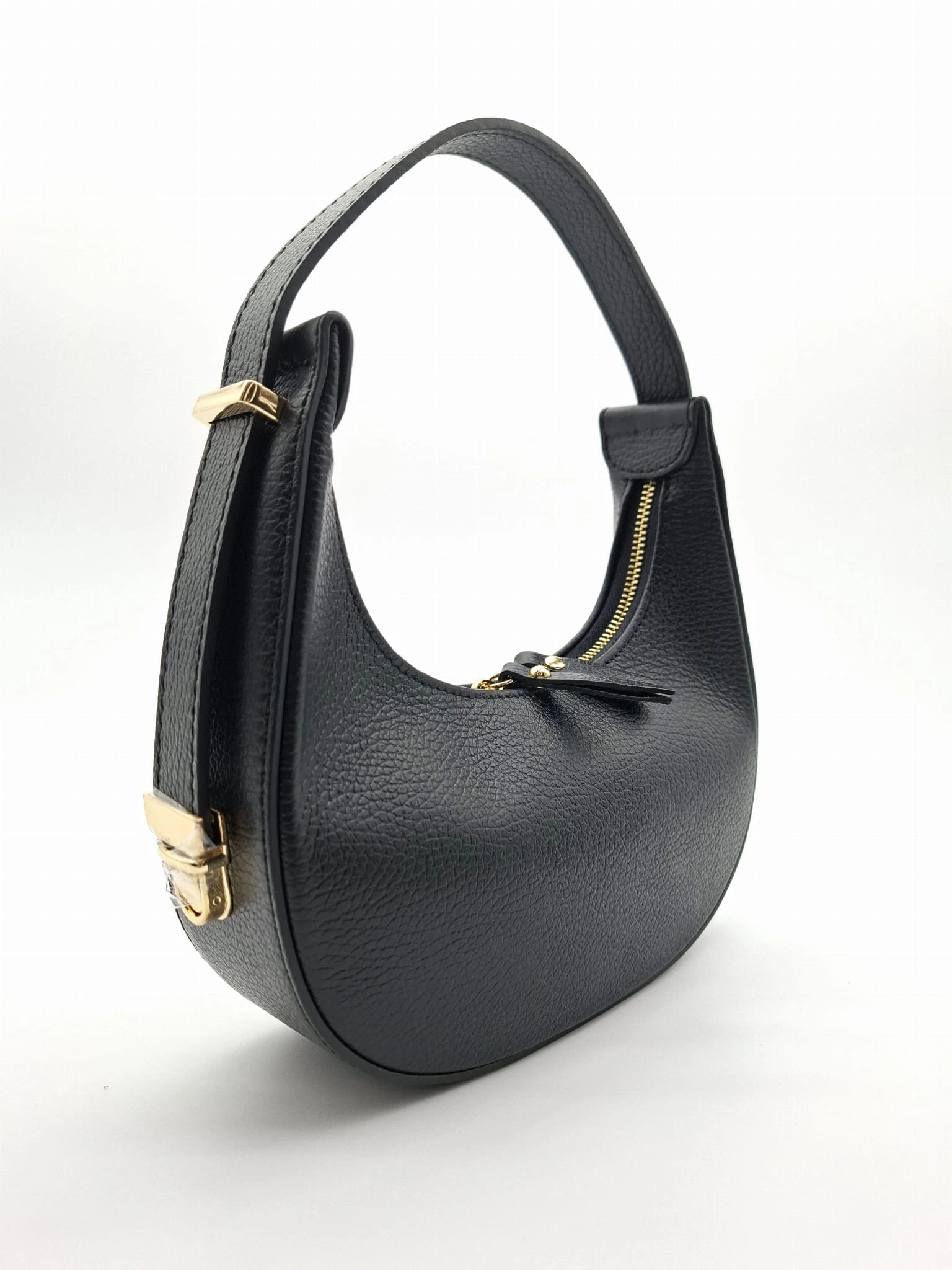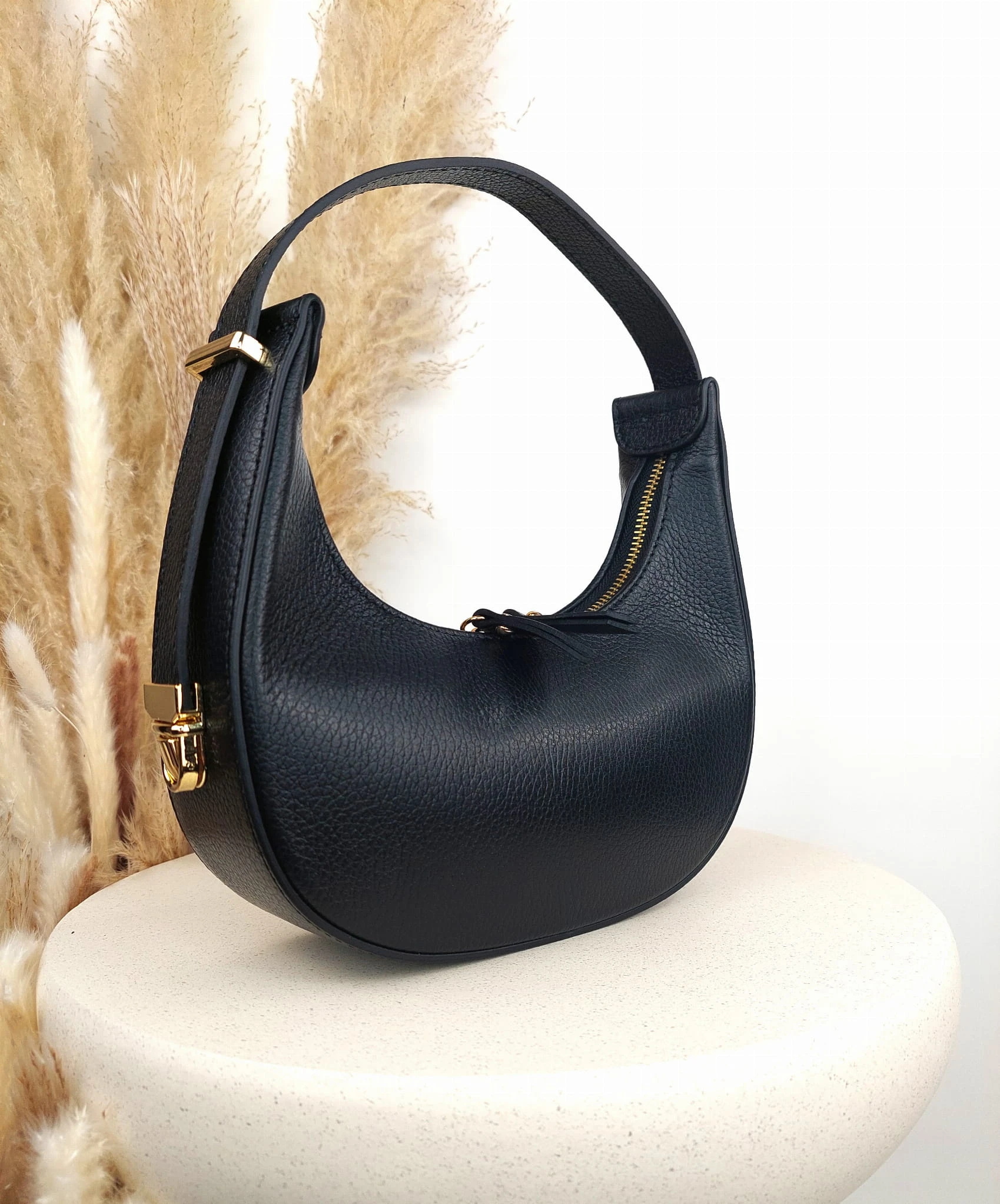 VERA PELLE Mała czarna torebka skórzana SALLY