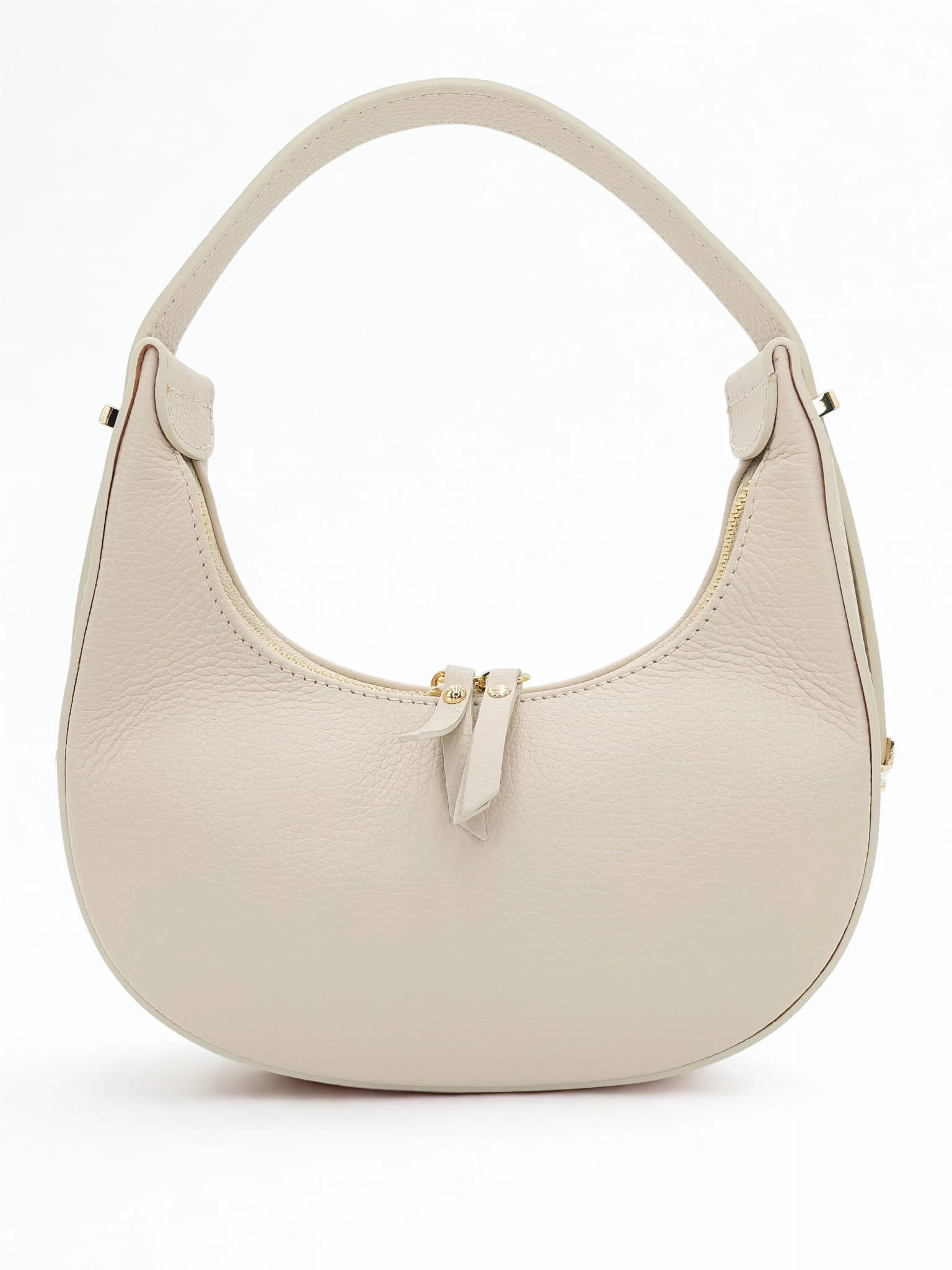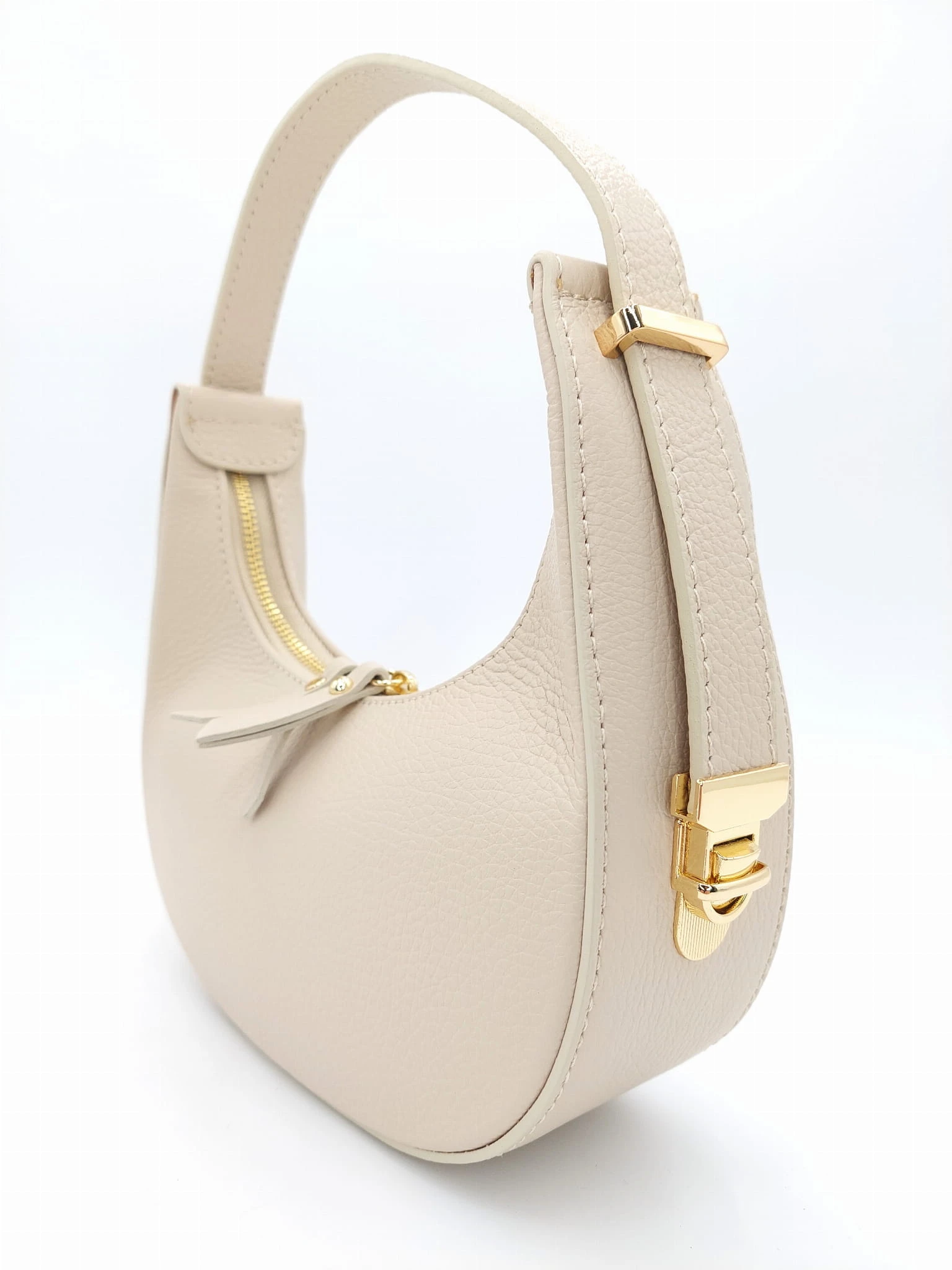 VERA PELLE Mała elegancka beżowa ecru torebka SALLY skóra