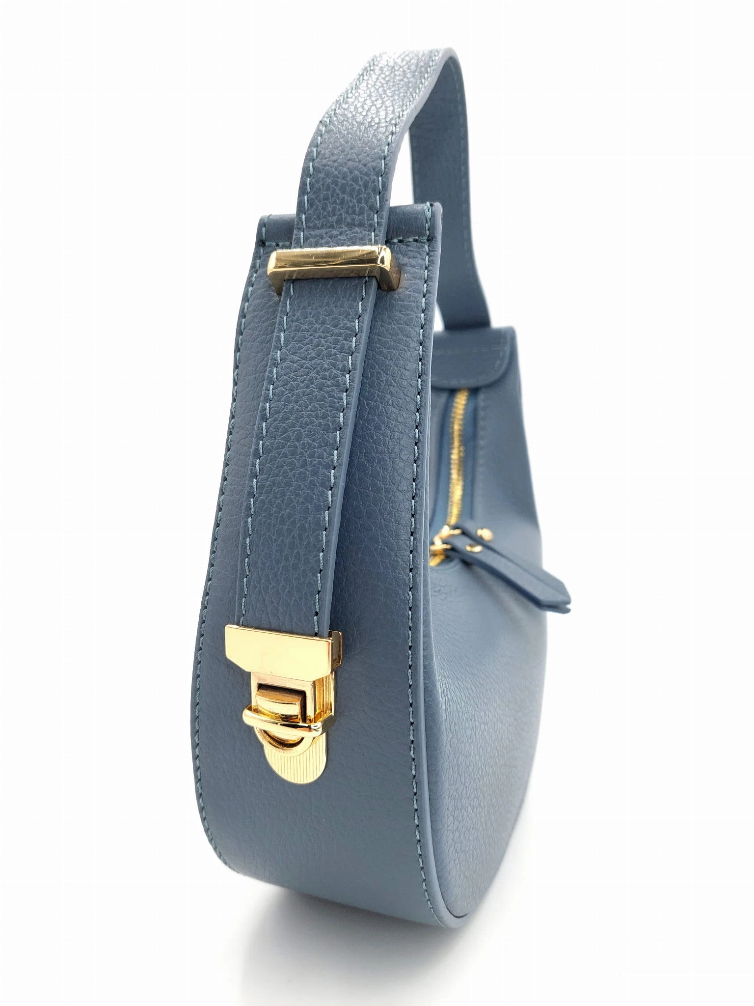 VERA PELLE Mała włoska torebka niebieska jeans SALLY