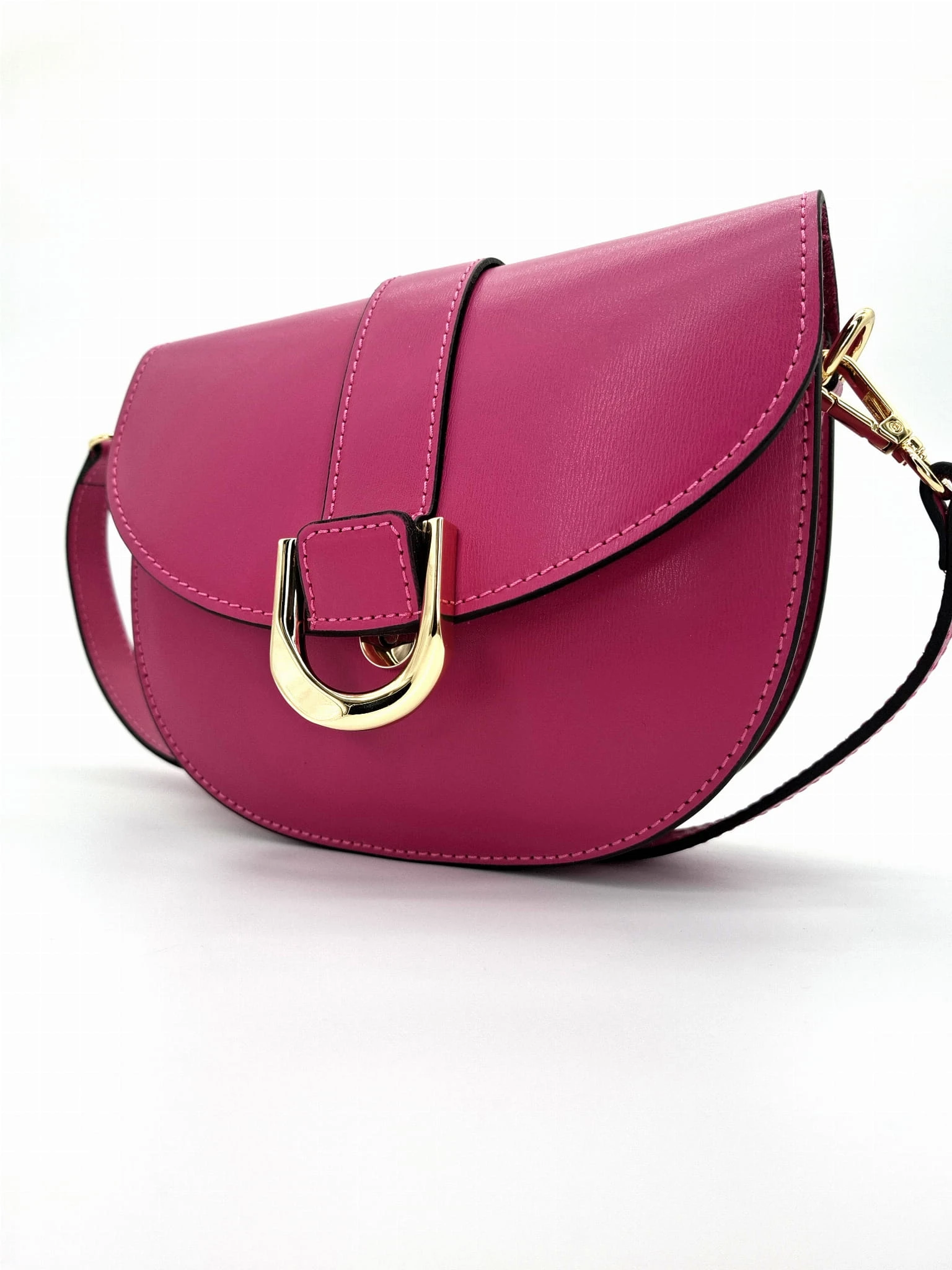 Niewielka , usztywniana skórzana torebka damska w odcieniach fuksji. Idealna do wiosennych i letnich stylizacji.