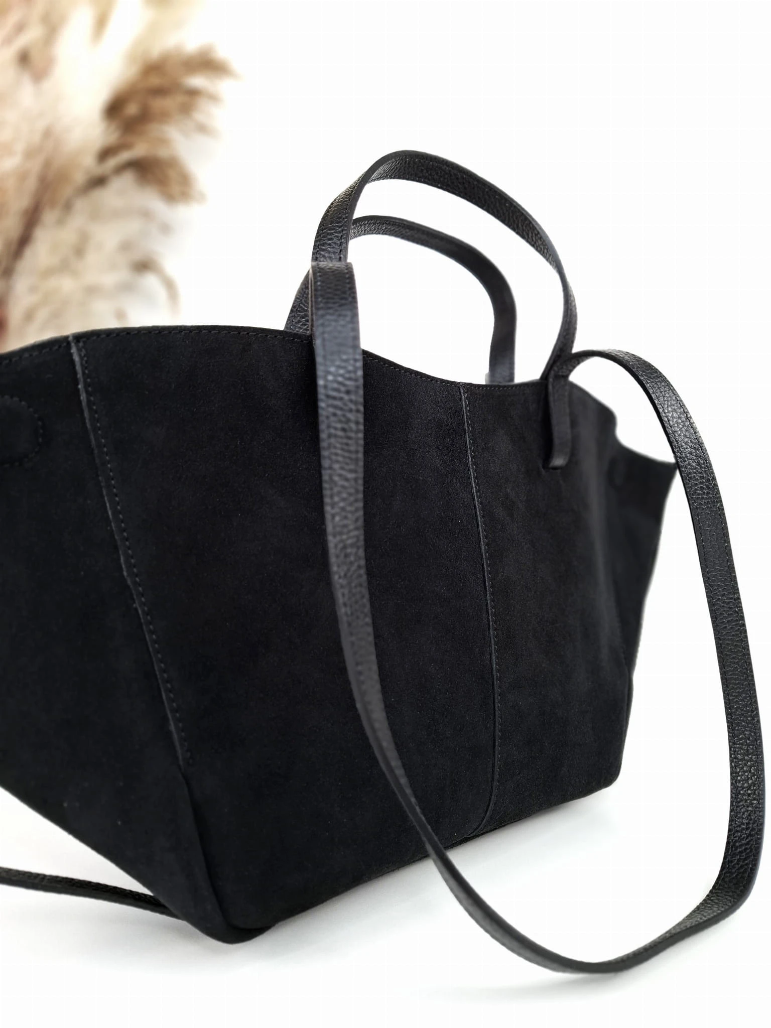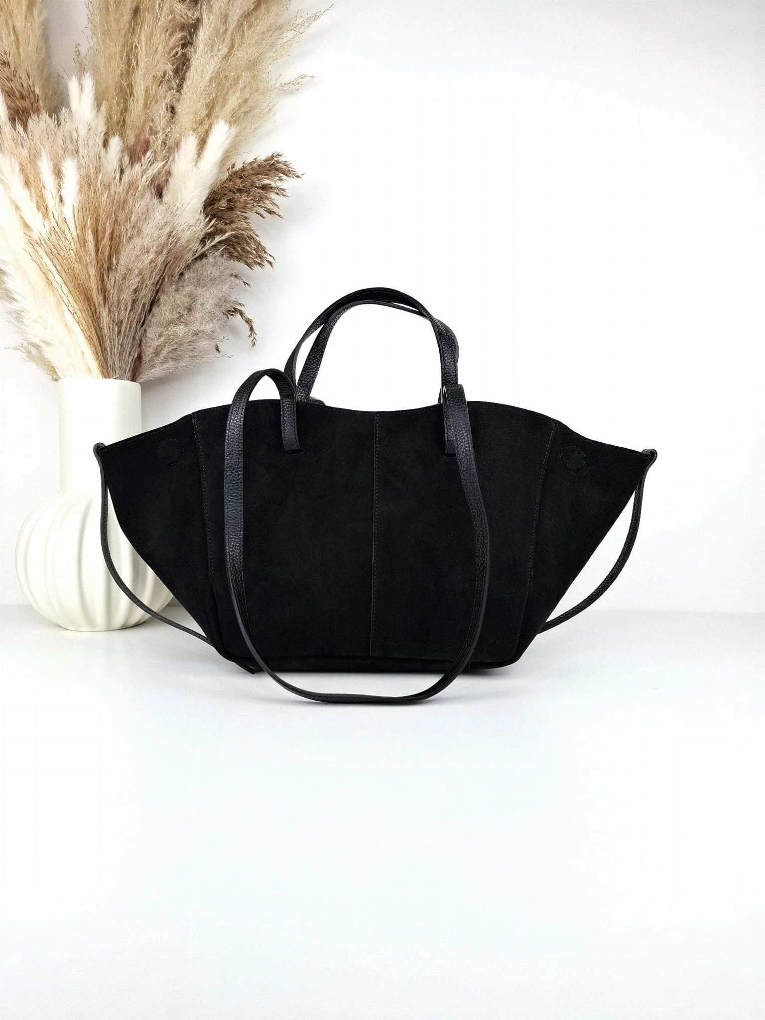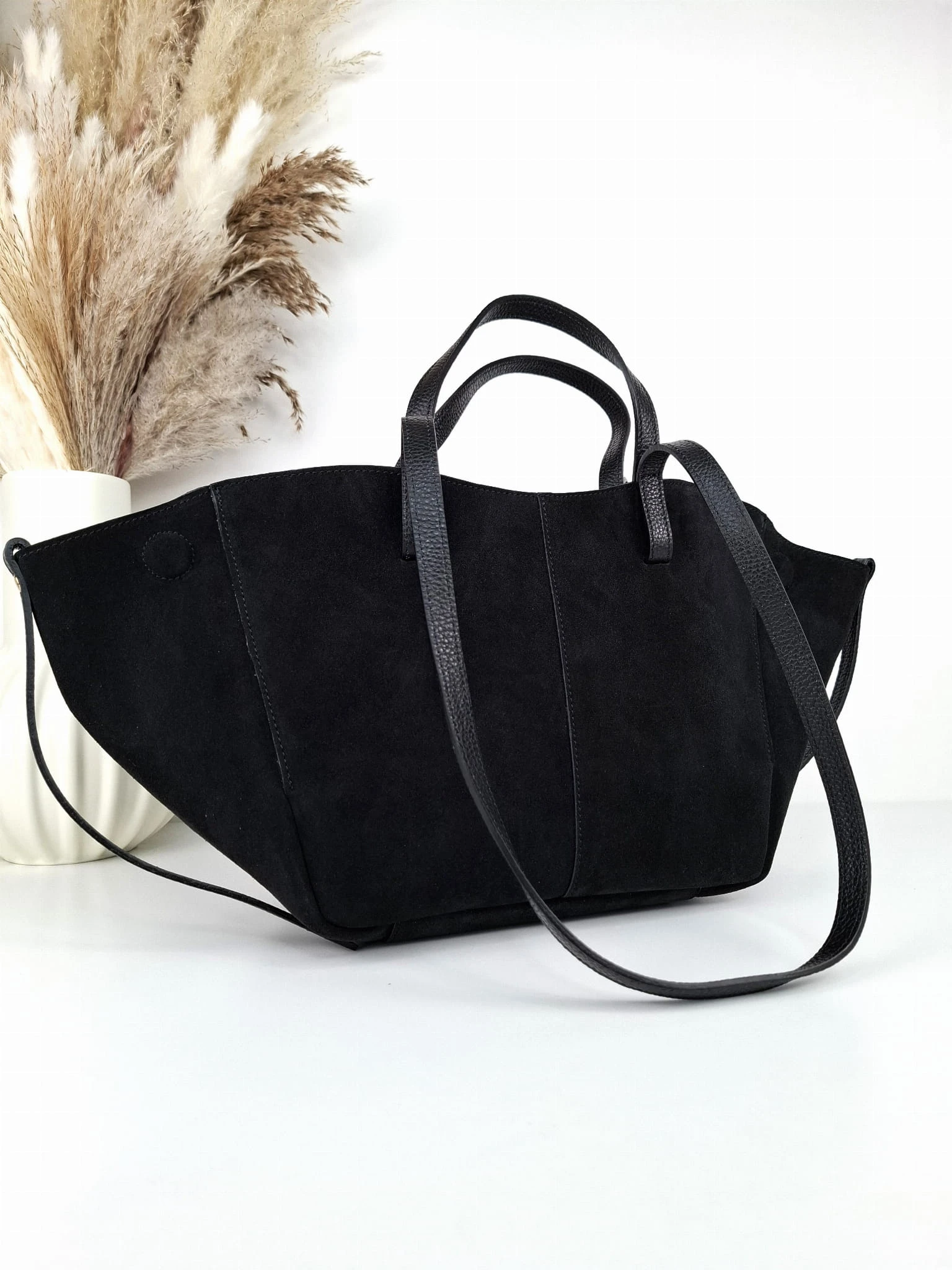 Vera Pelle Torebka zamszowa czarna shopper łódka JULIA ( średnia )