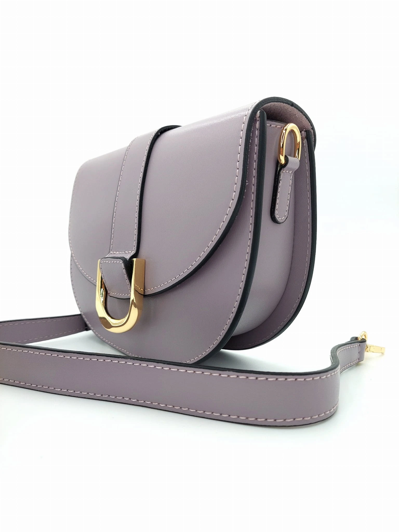 Niewielka , usztywniana skórzana torebka damska w odcieniach lawendy. Idealna do wiosennych i letnich stylizacji.