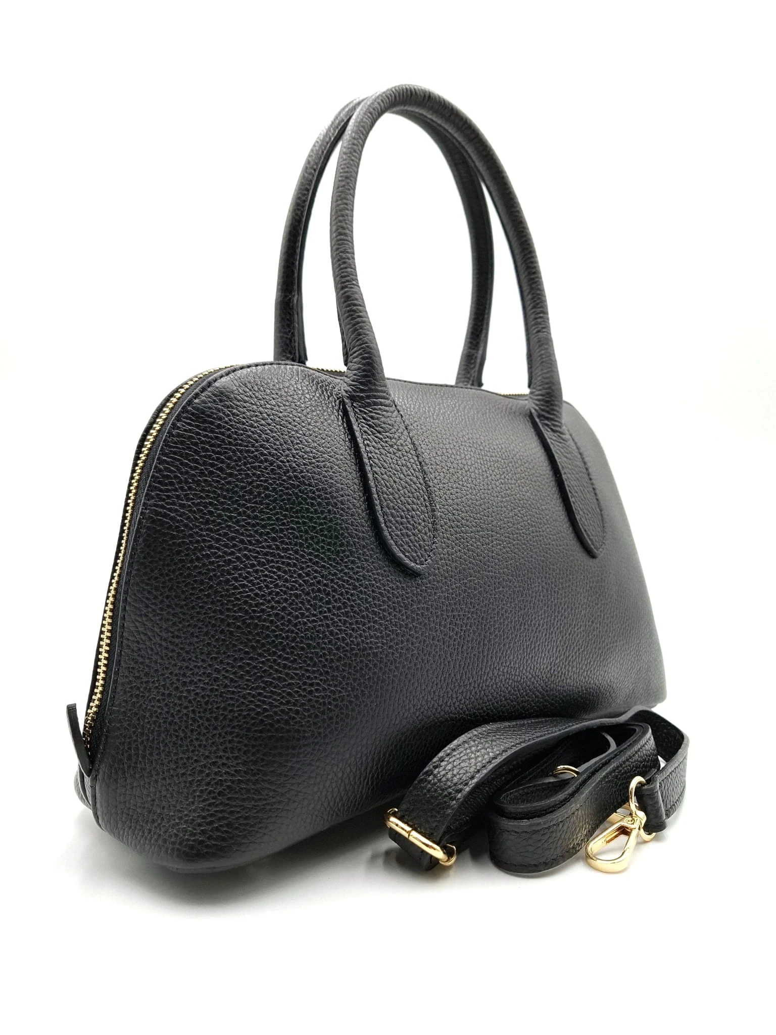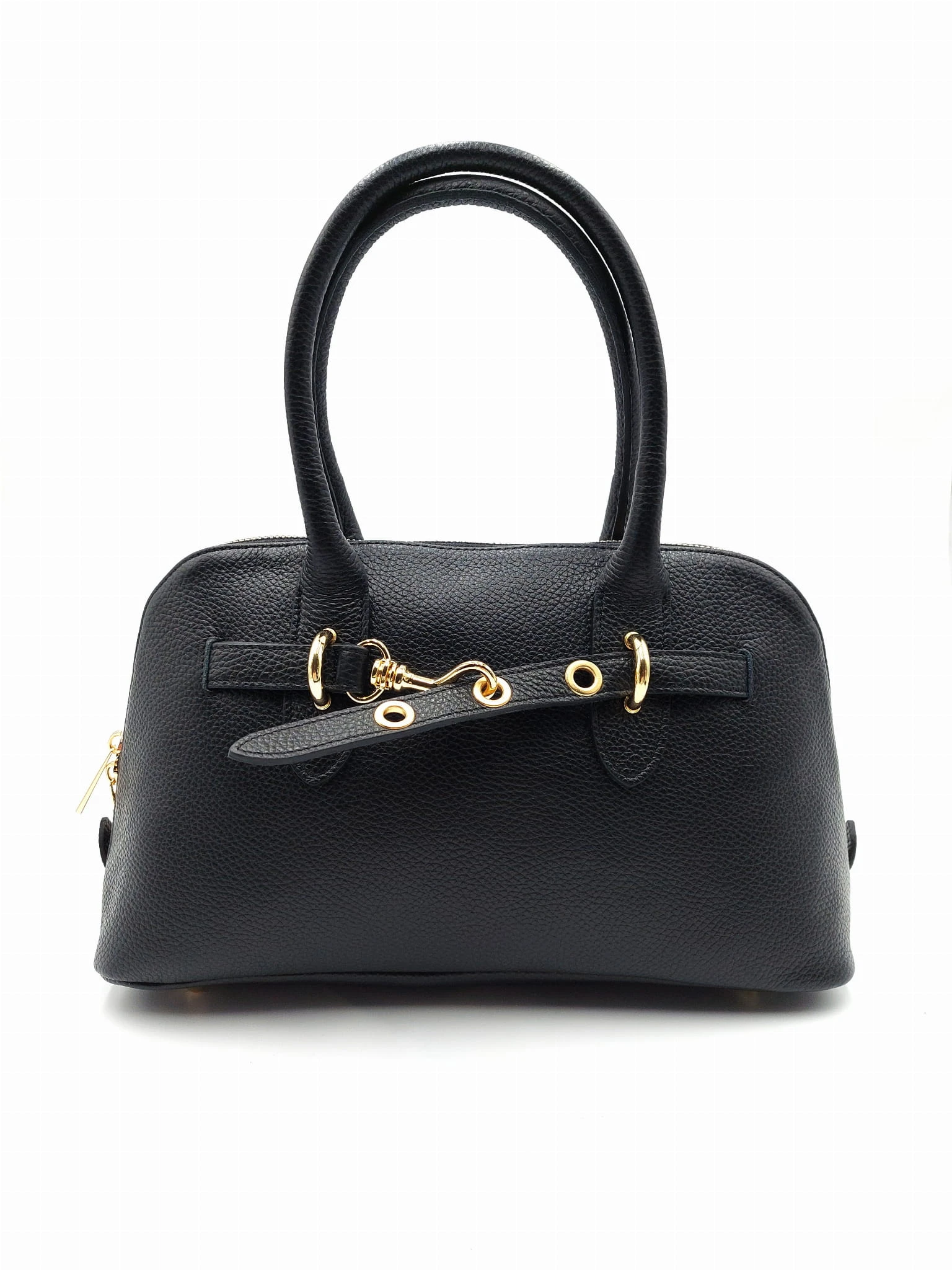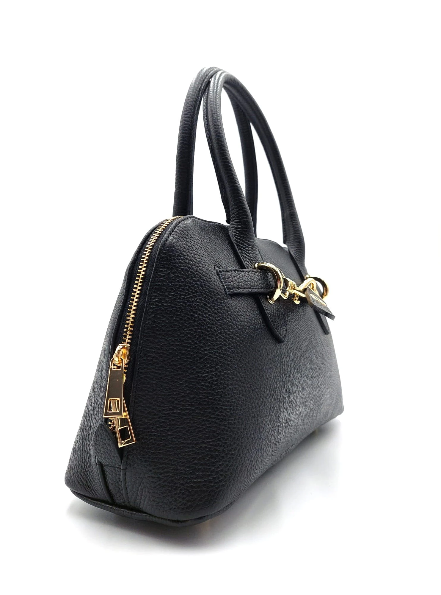 Vera Pelle kuferek damski z ozdobnym zapięciem skórzany czarny INGRID