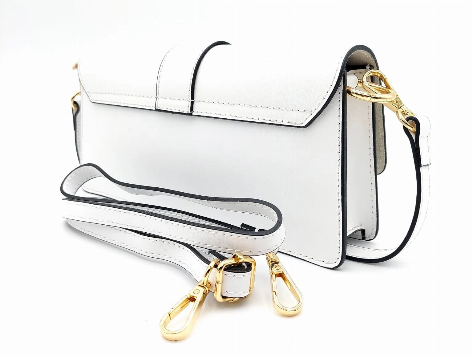 - Wykończenie : złote okucia, pod klapką skóra wykończona w zamszu