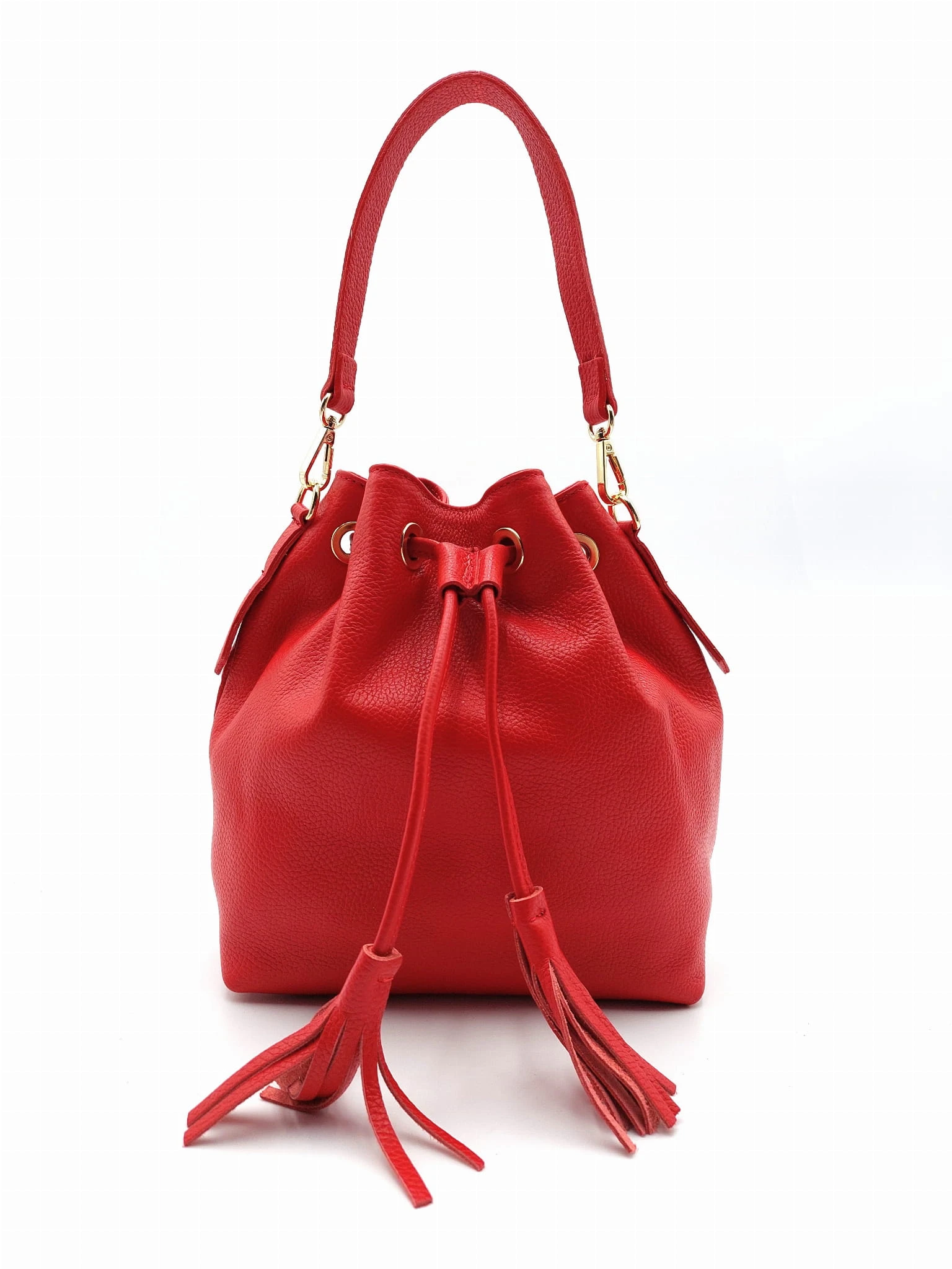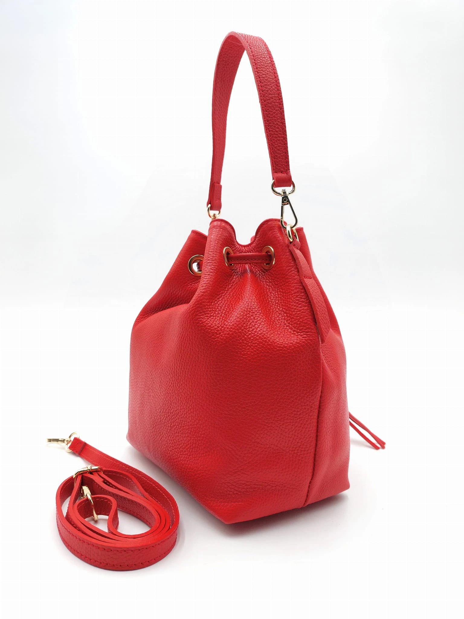 Vera Pelle torebka worek skórzany czerwony Tinka