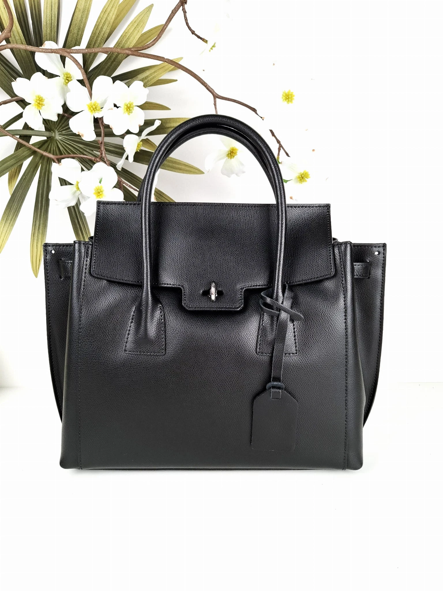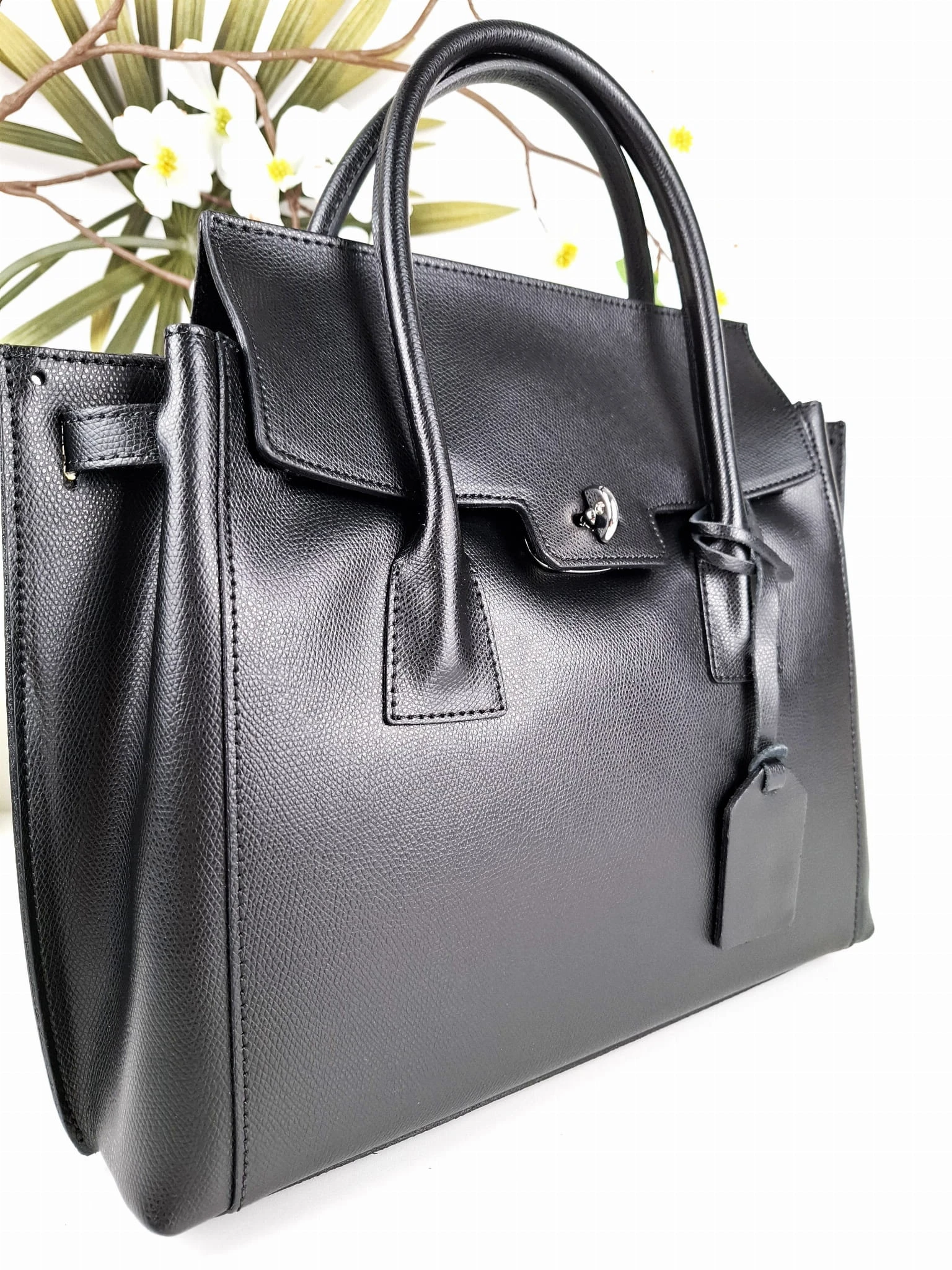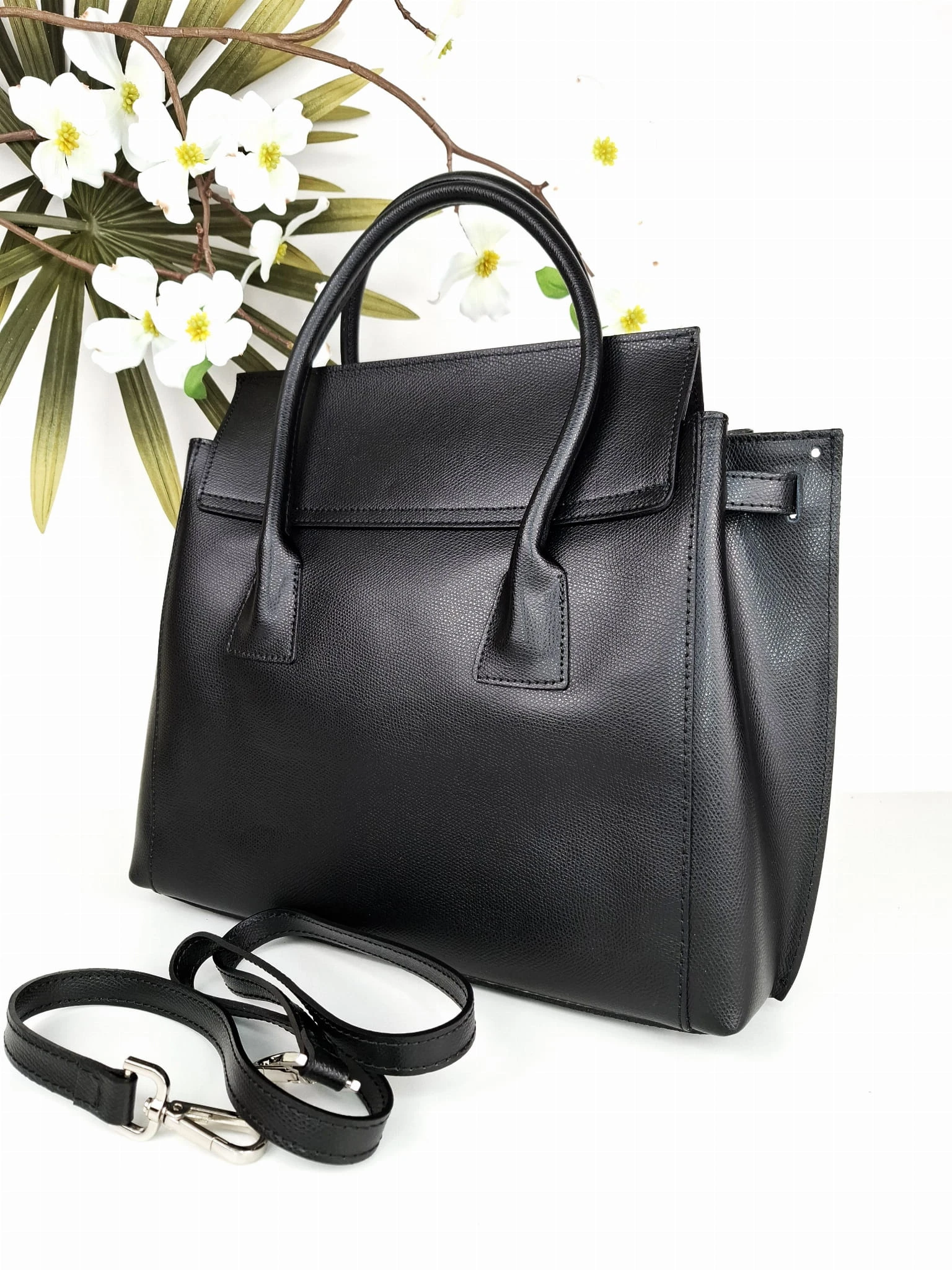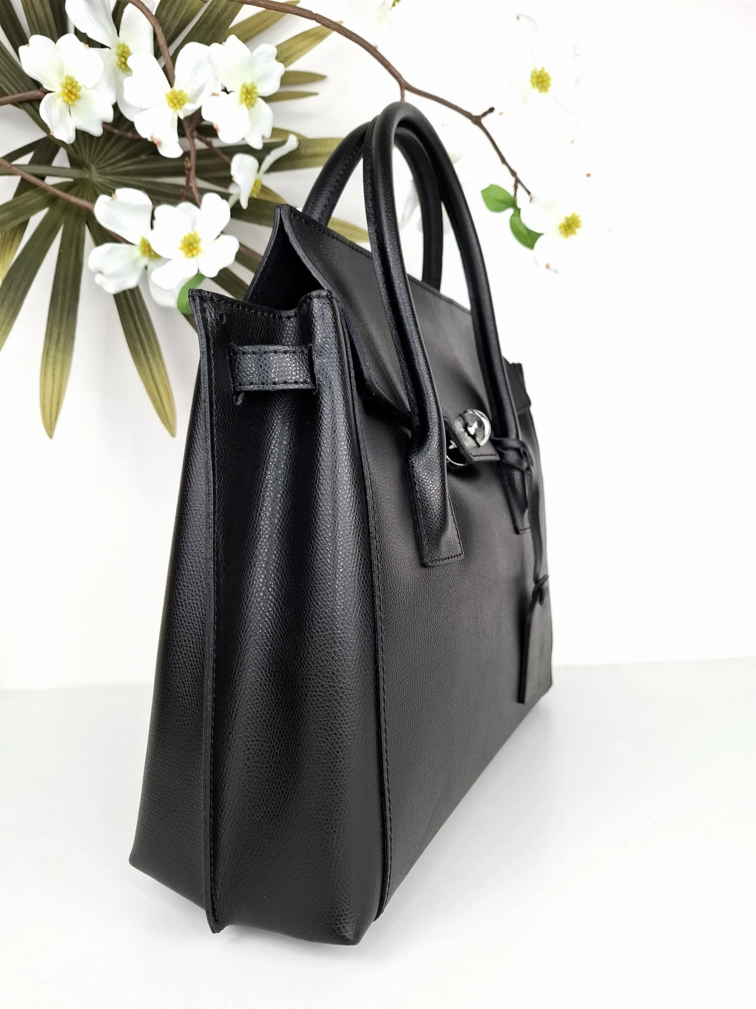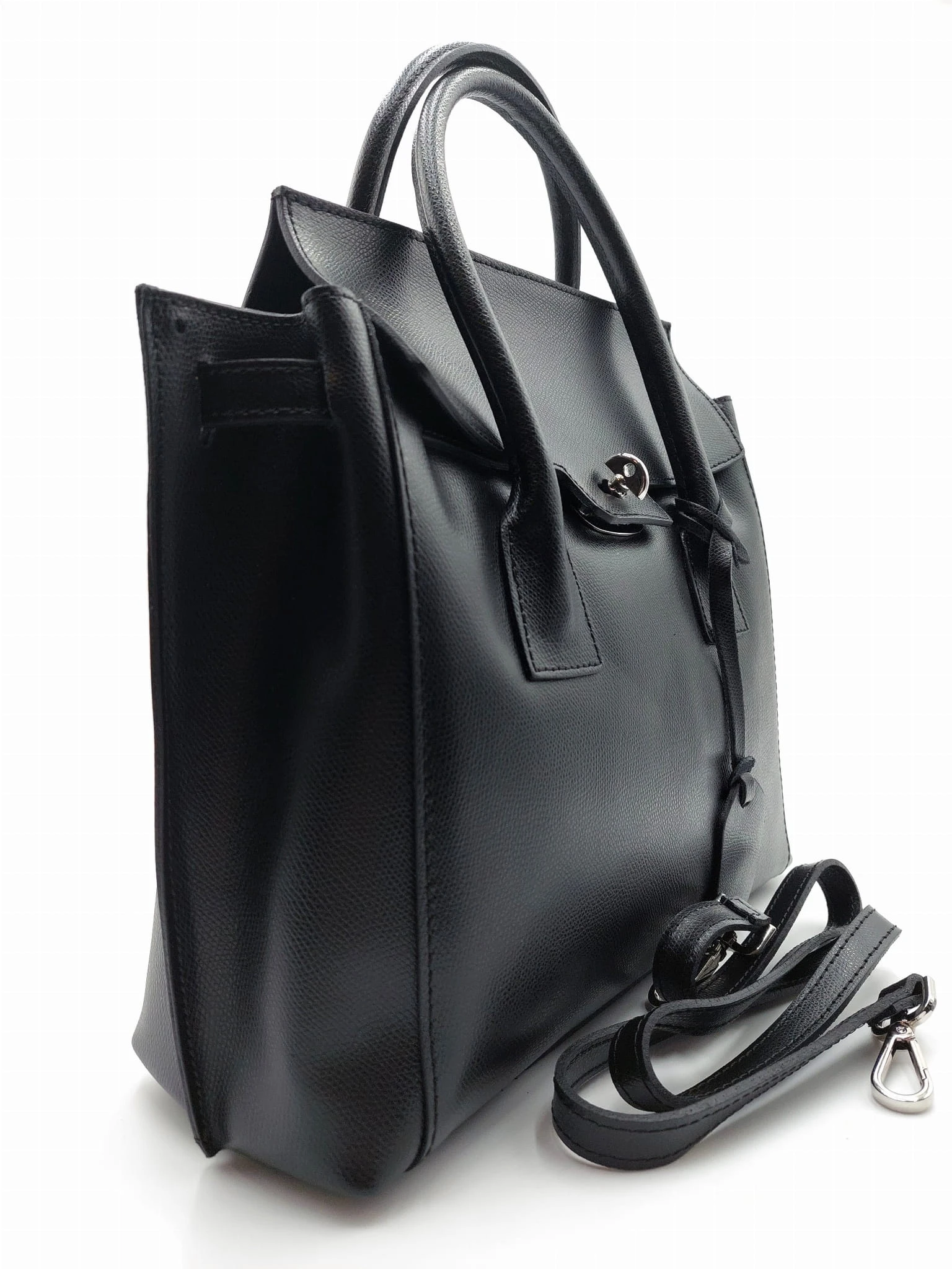 Wysokiej jakości, elegancka czarna torebka typu kuferek - poręczny format , włoskie rzemiosło.