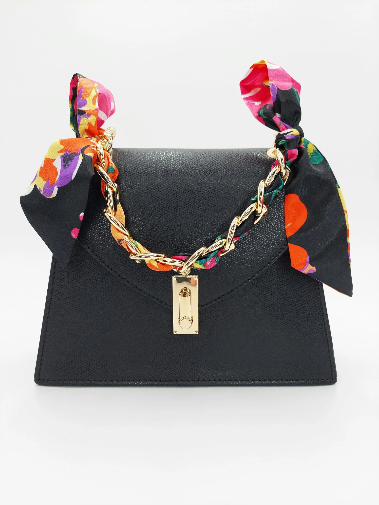 Prawdziwa perełka z kolorowym twistem - klasyczna , elegancka torebka skórzana z apaszką.