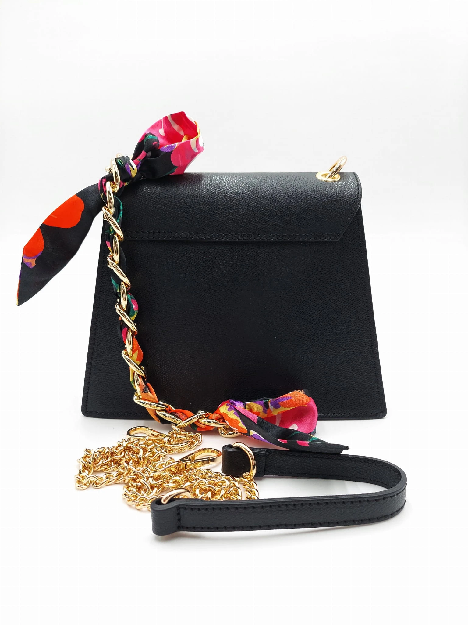 Włoska czarna elegancka torebka kuferek z apaszką skóra