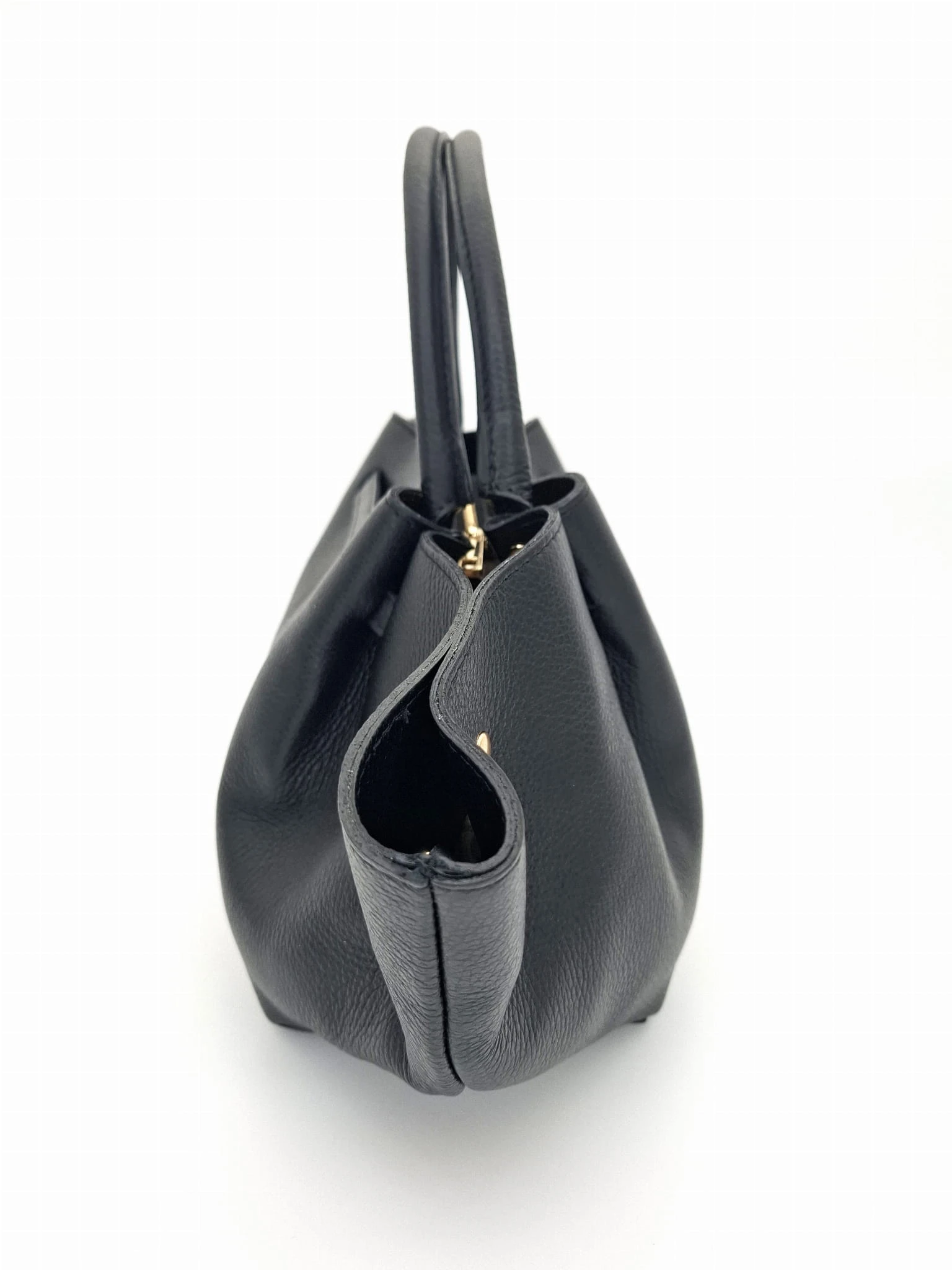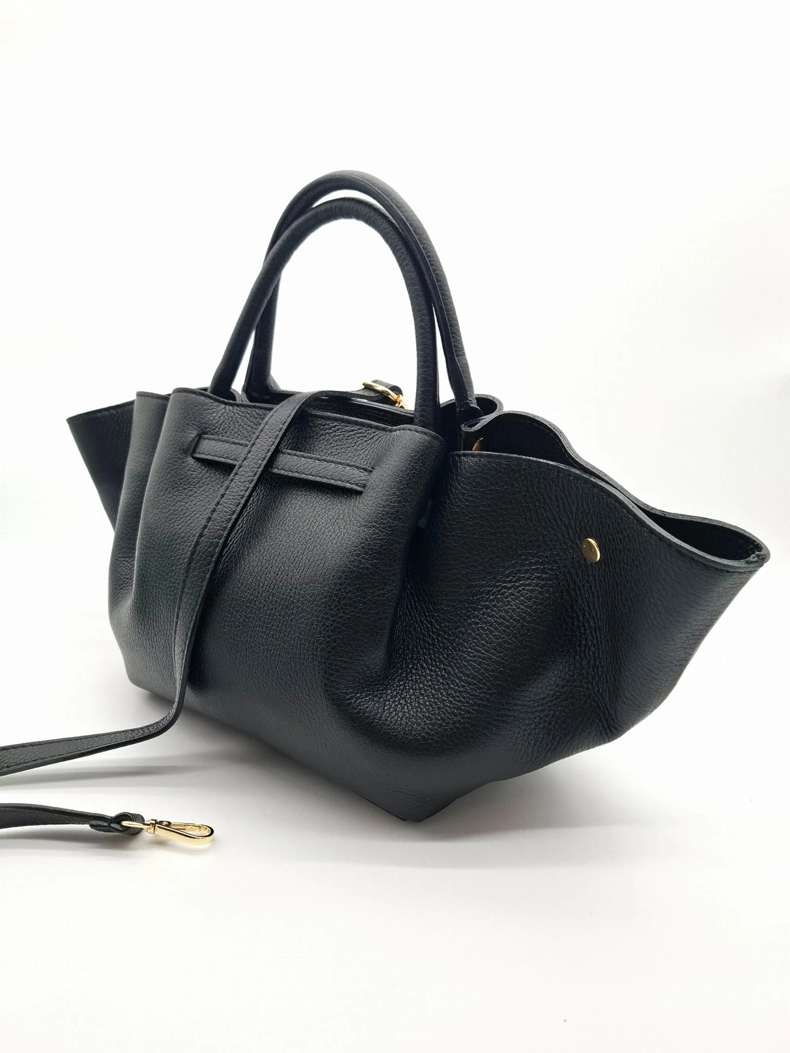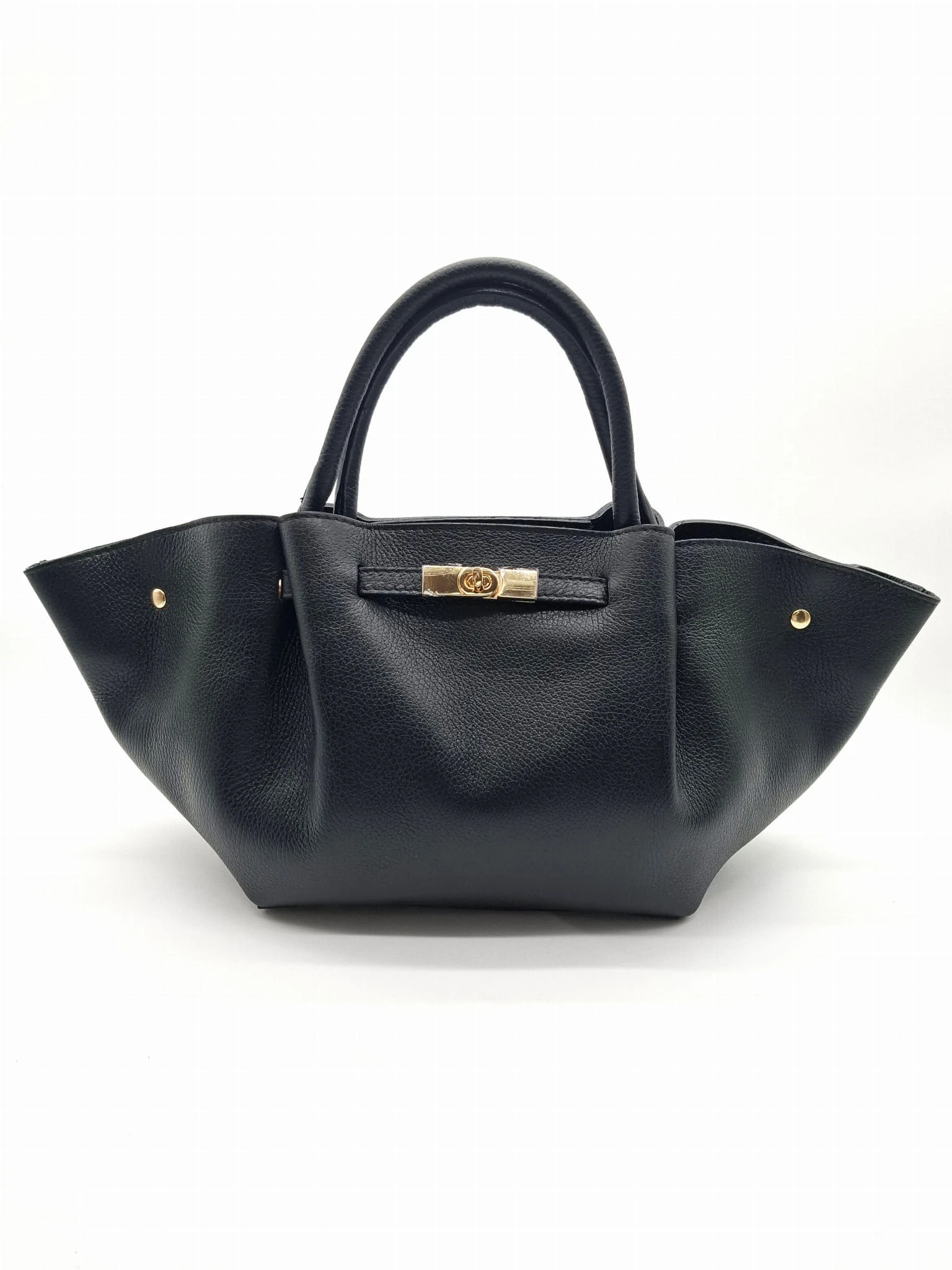 Włoska czarna torebka skórzana shopper nietoperzyk Tessa