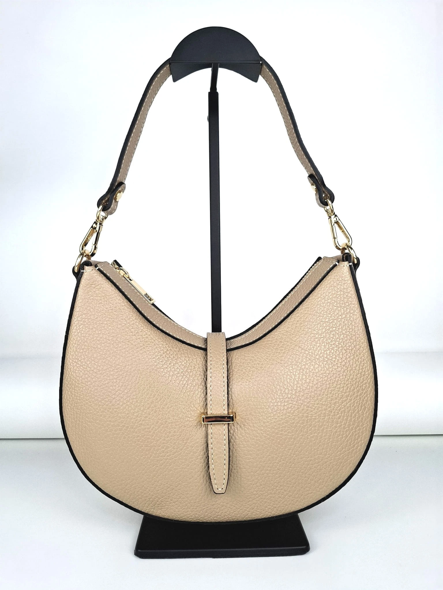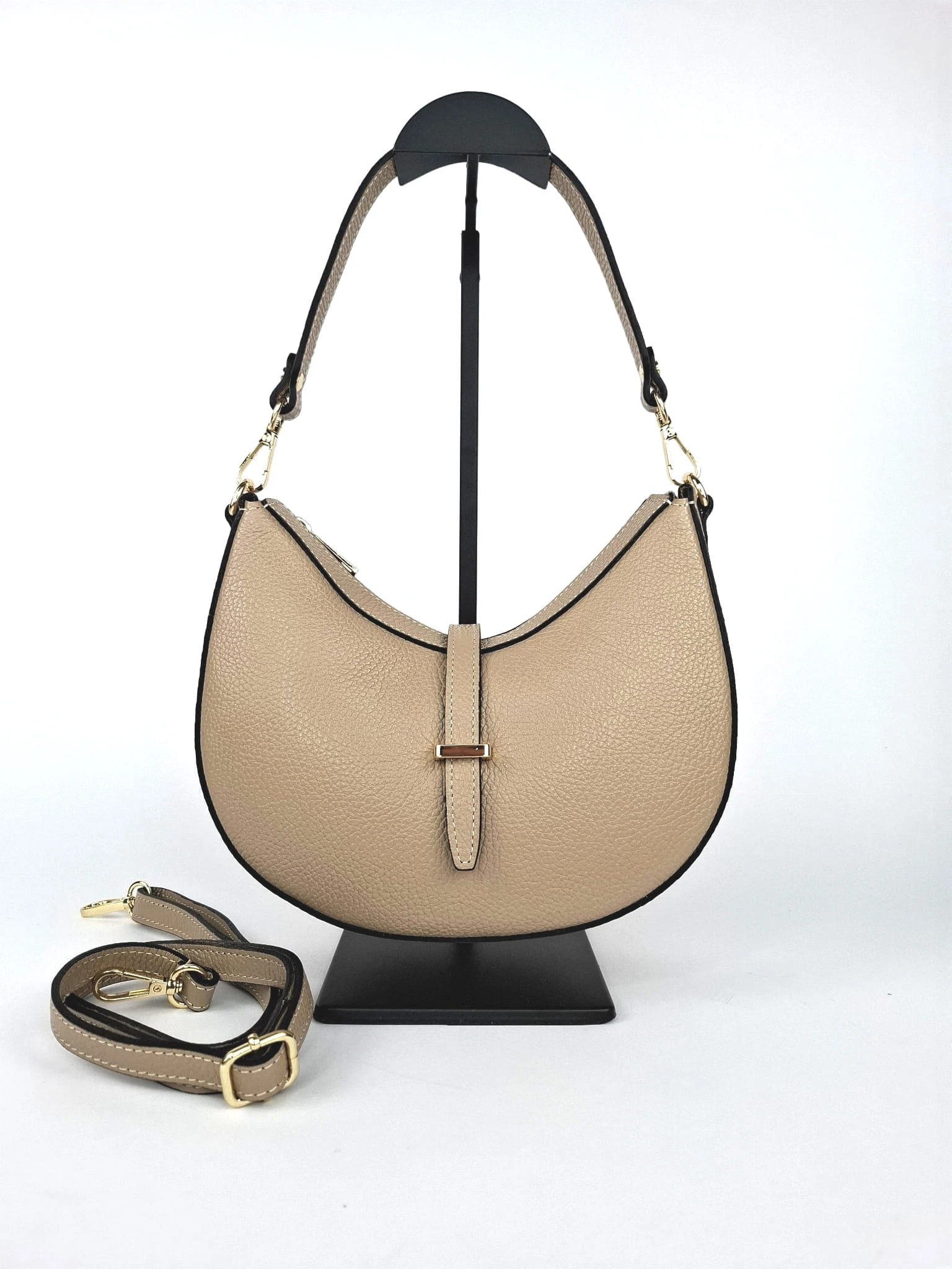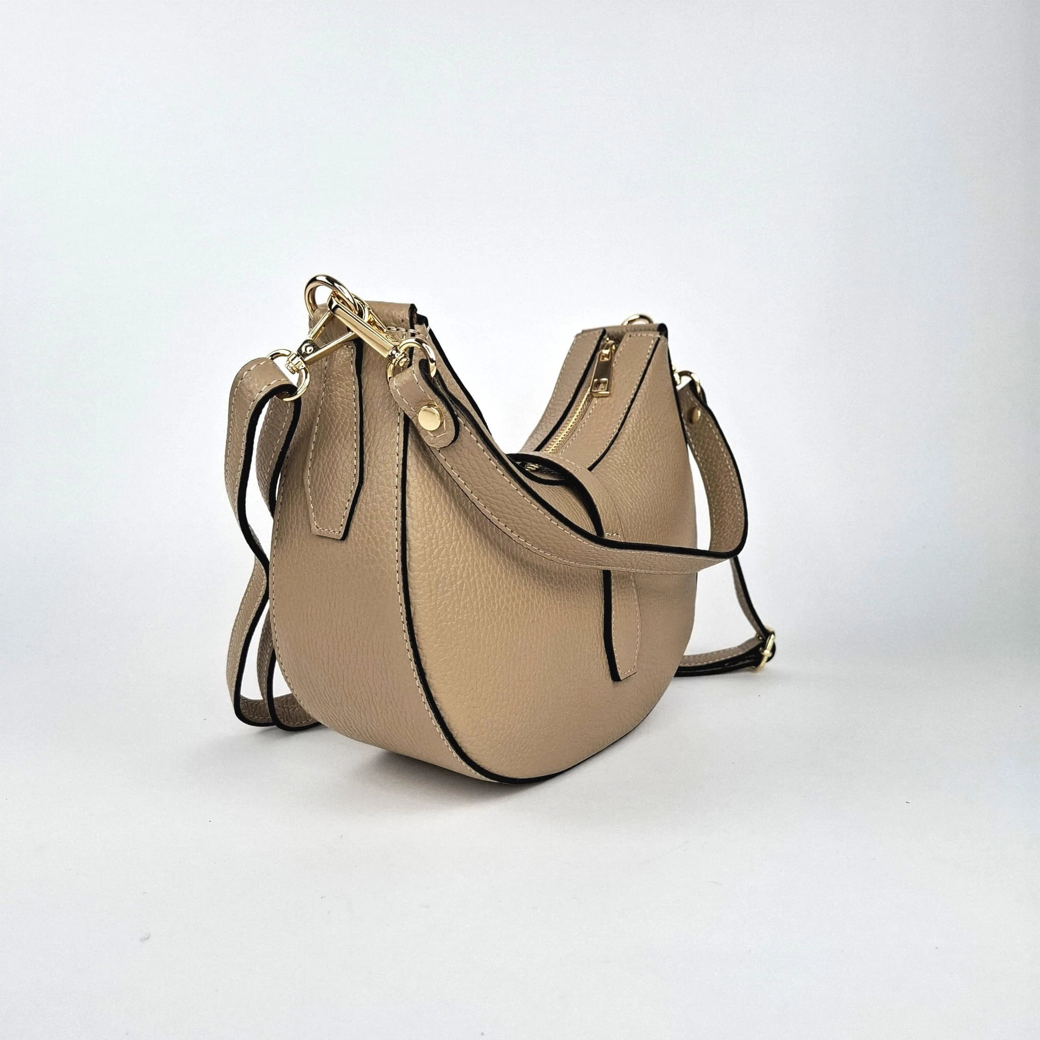 Mała włoska beżowa torebka skórzana na dwóch paskach - model Emma